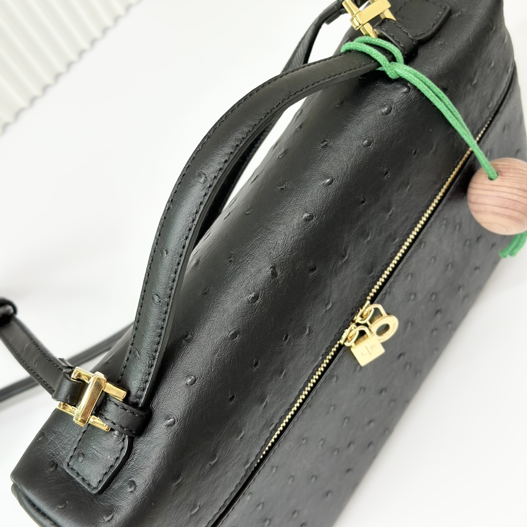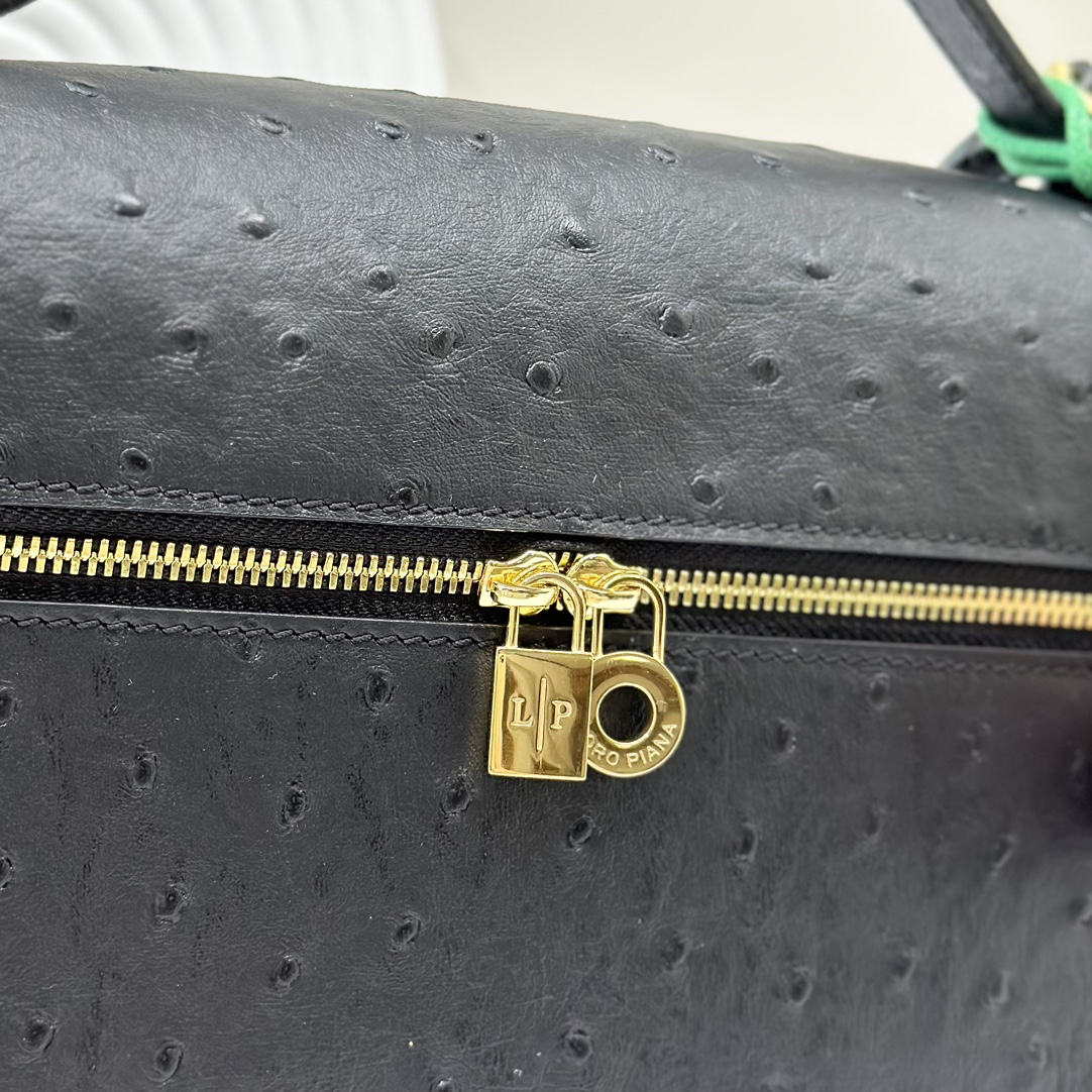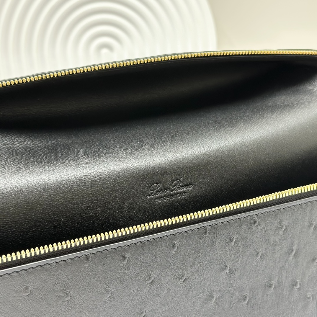 Loro Piana Extra Pocket L19 Shiny Ostrich Pouch | black