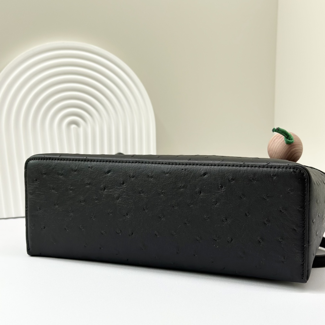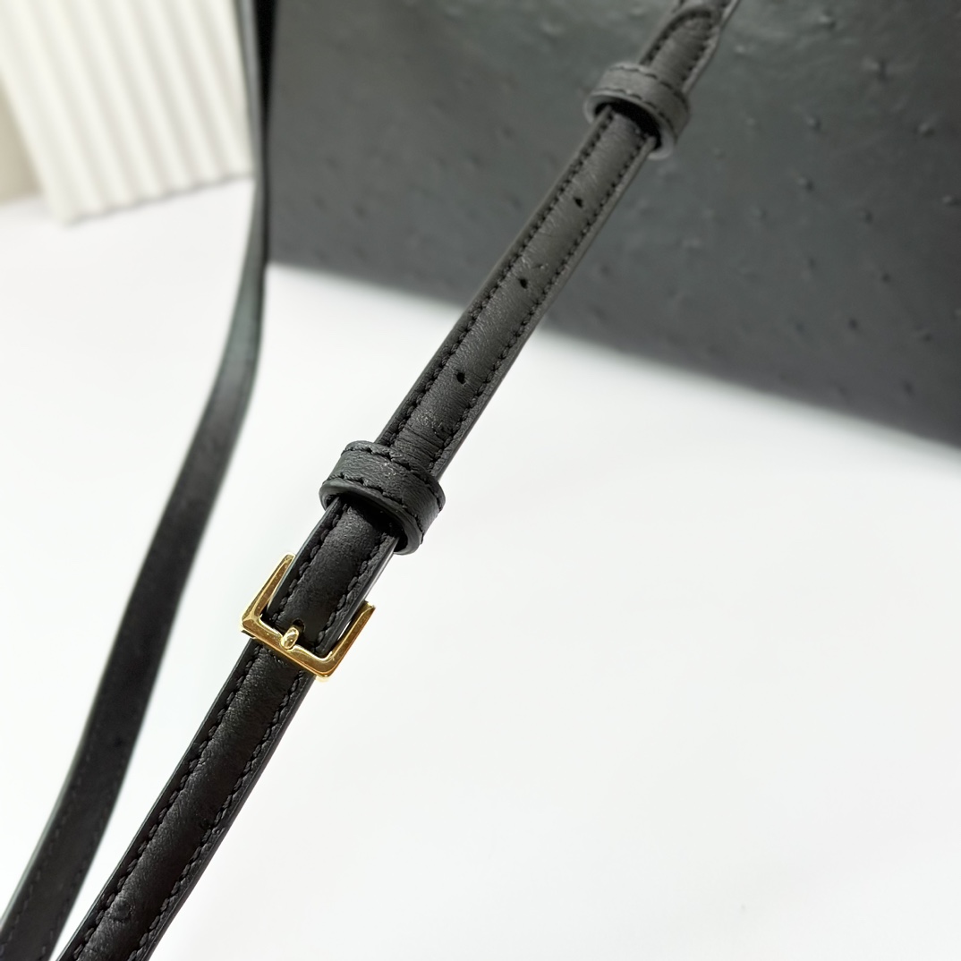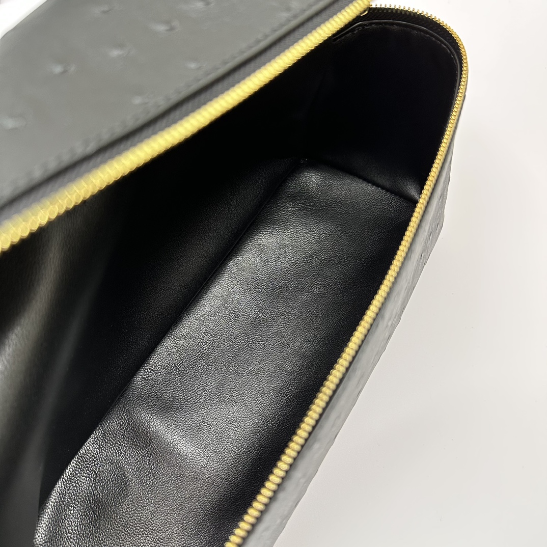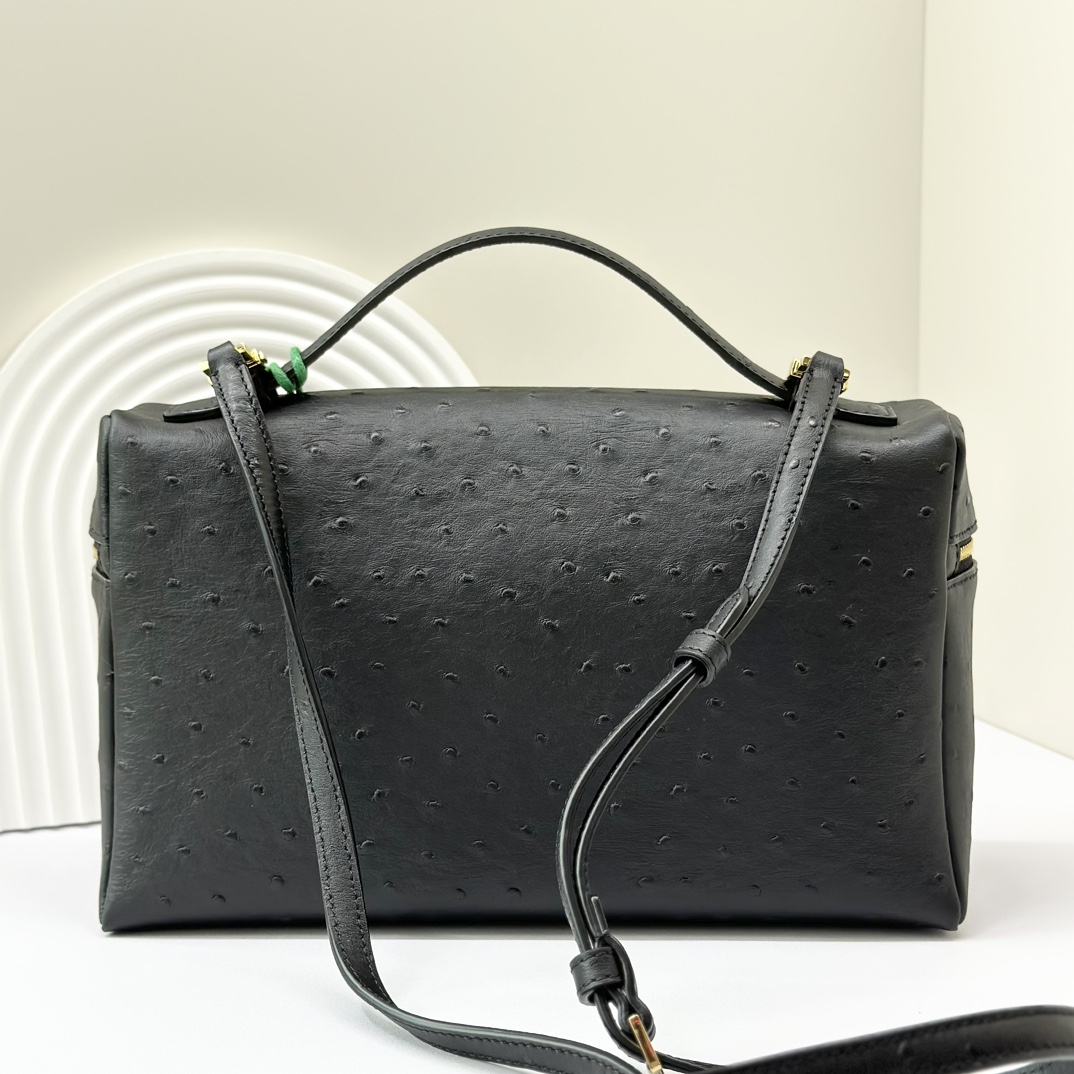 Loro Piana Extra Pocket L19 Shiny Ostrich Pouch | black