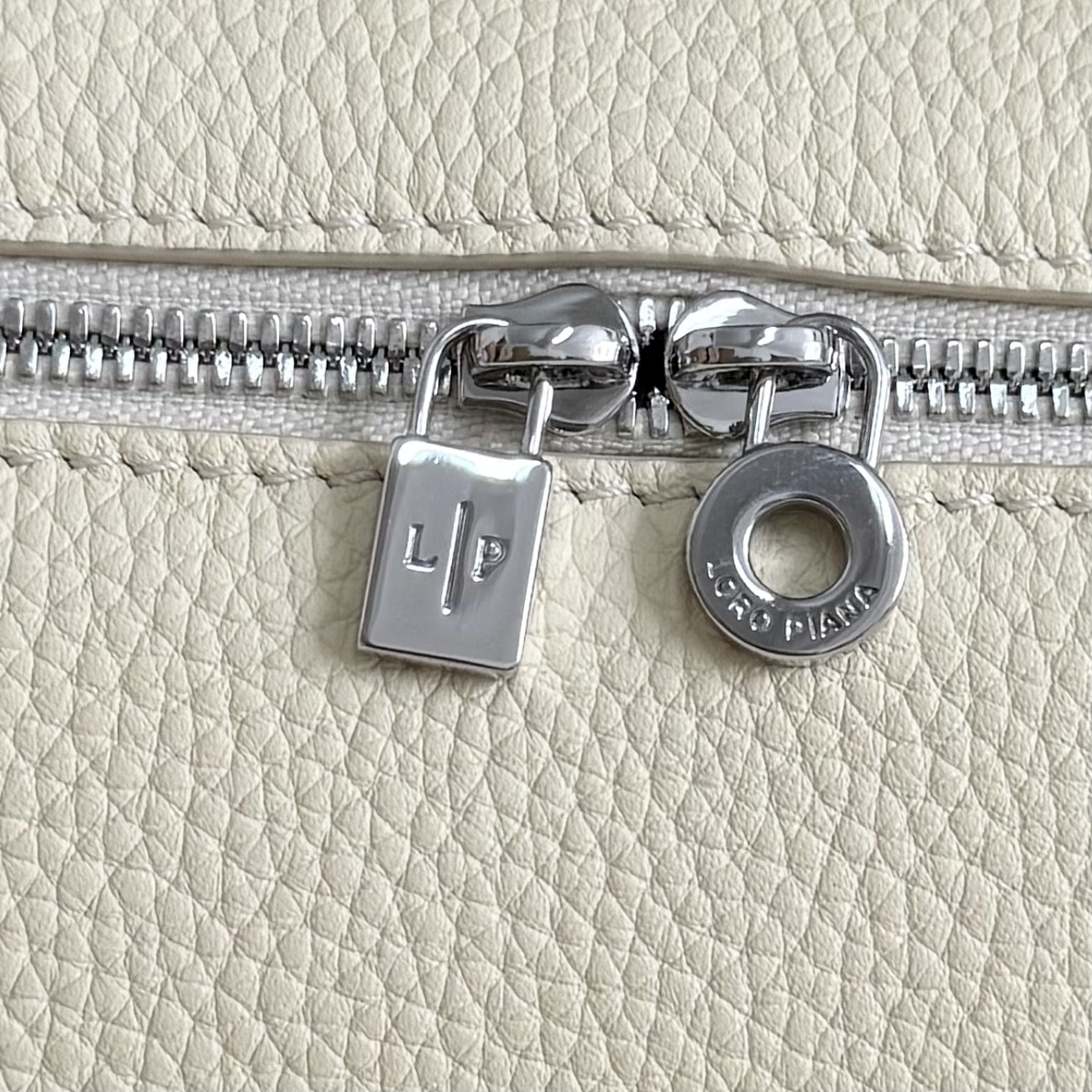 LORO PIANA Grained Calfskin L19 Extra Pocket Pouch Whisp cream
