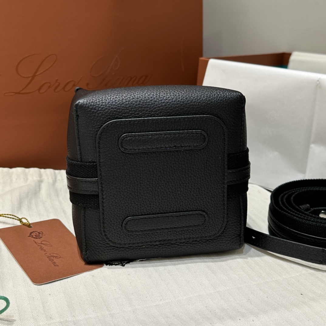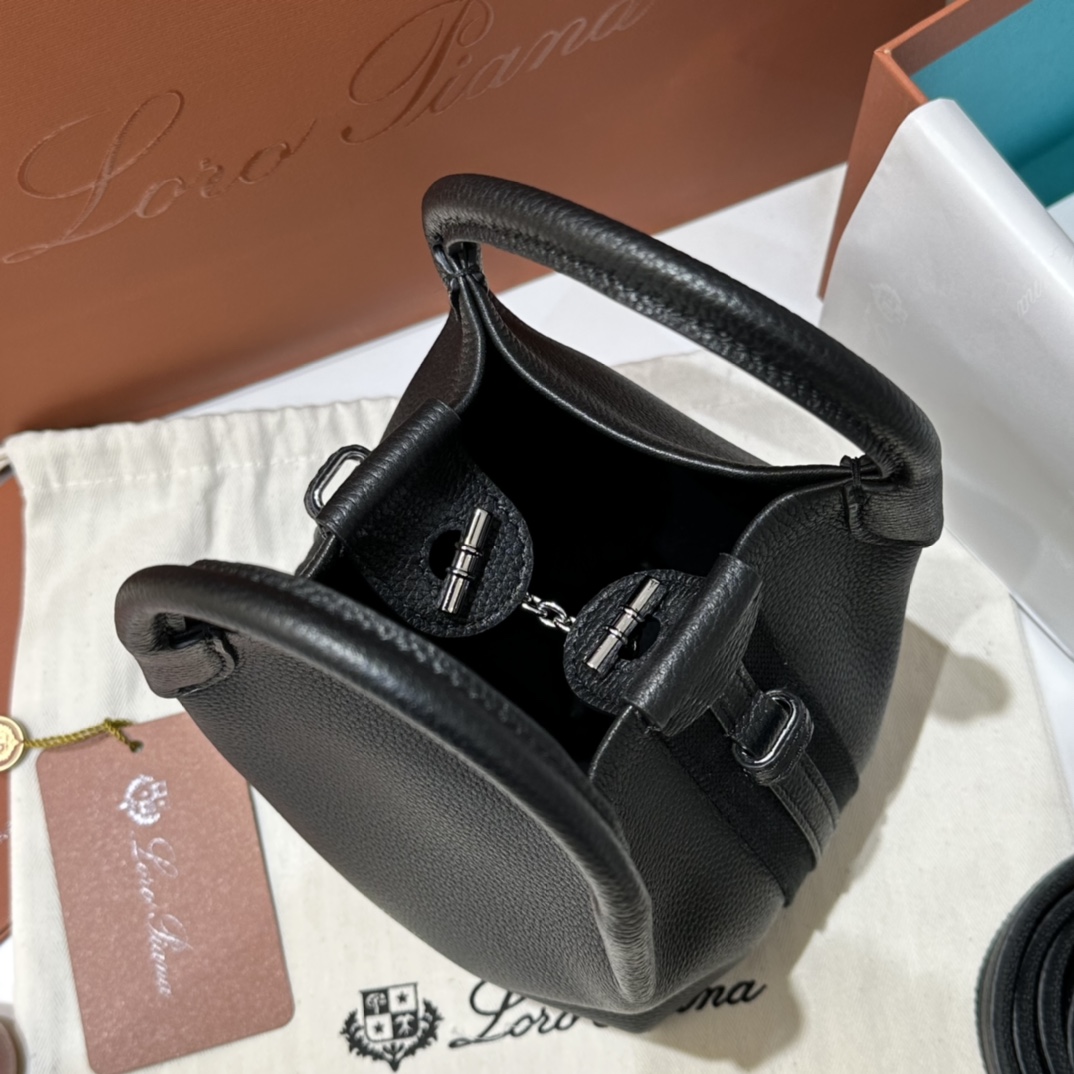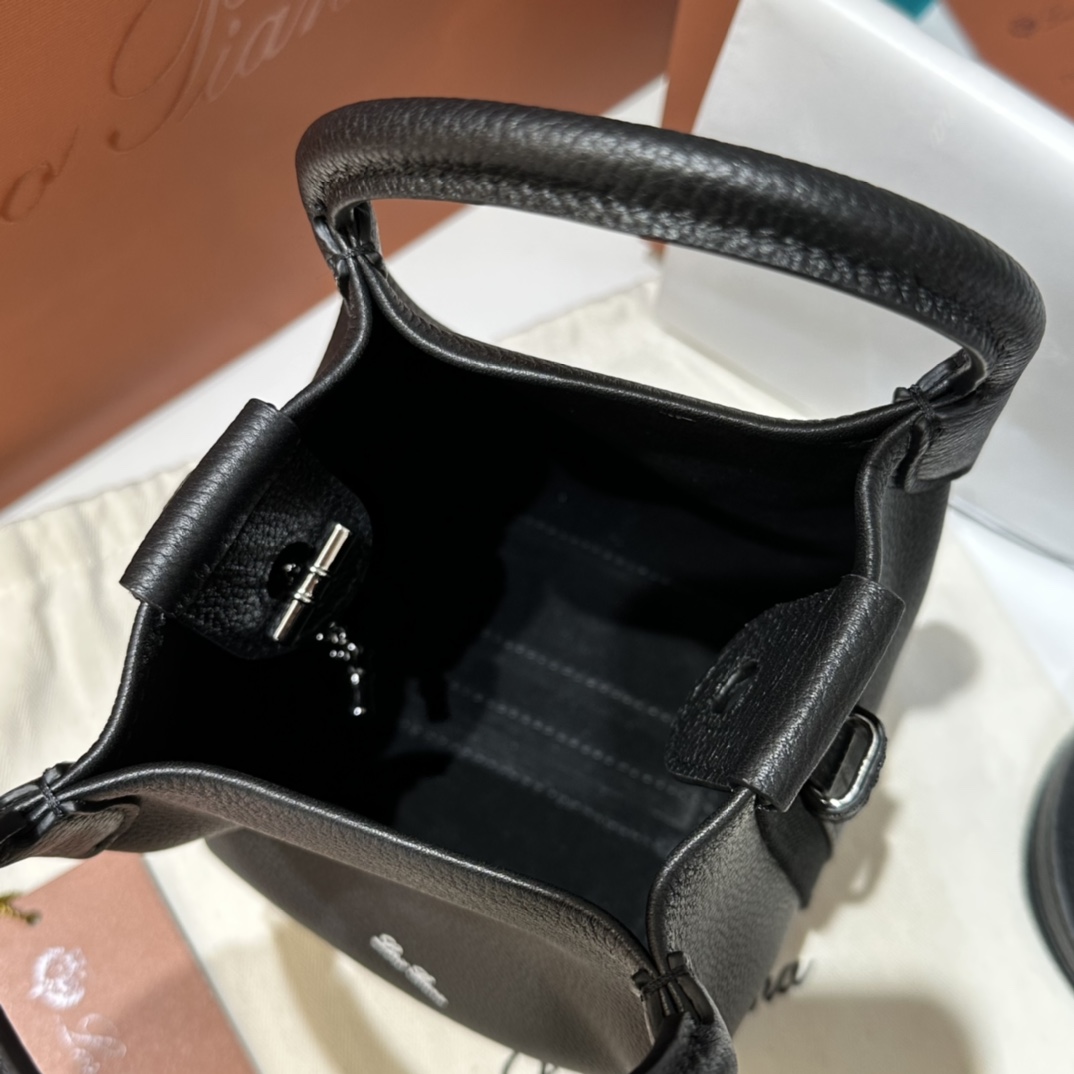Loro Piana Micro Bale bag Grained Calfskin Dark Lichen black| Loro Piana