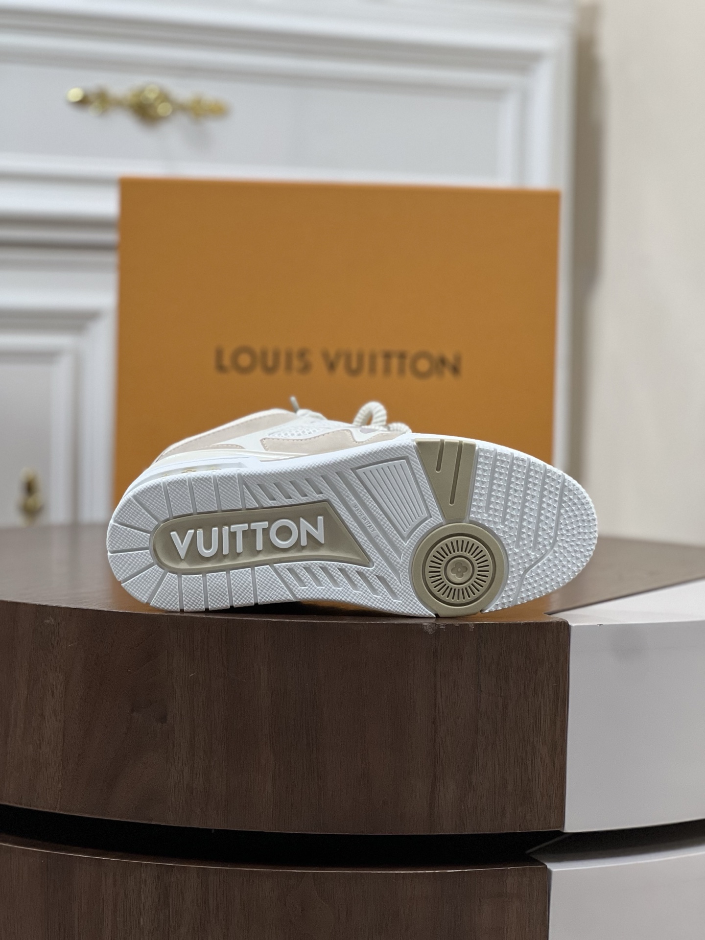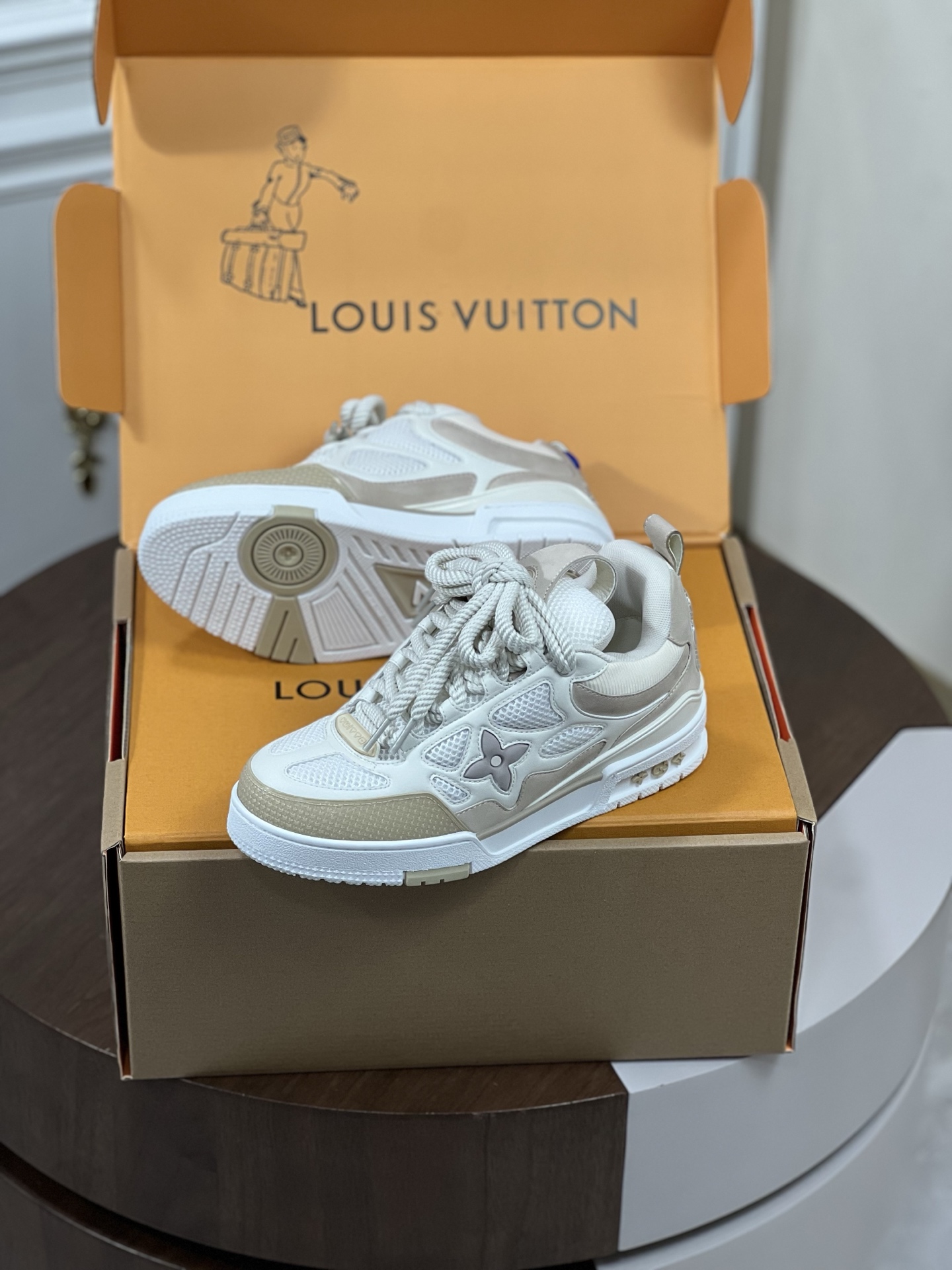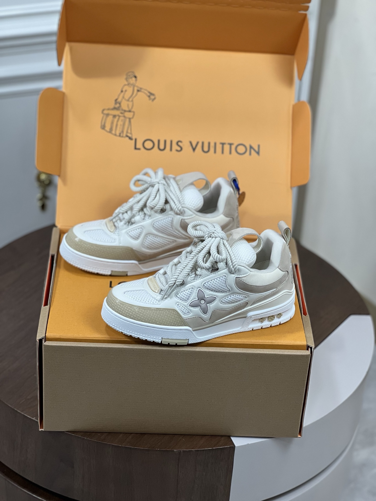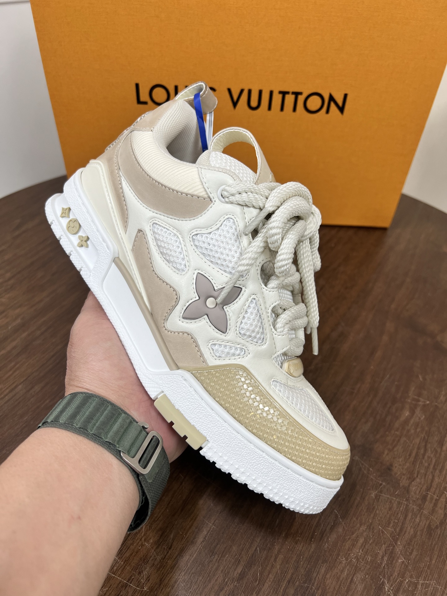 Louis Vuitton Beige White Monogram Mesh Leather Sneakers Men’s Designer Running Shoes