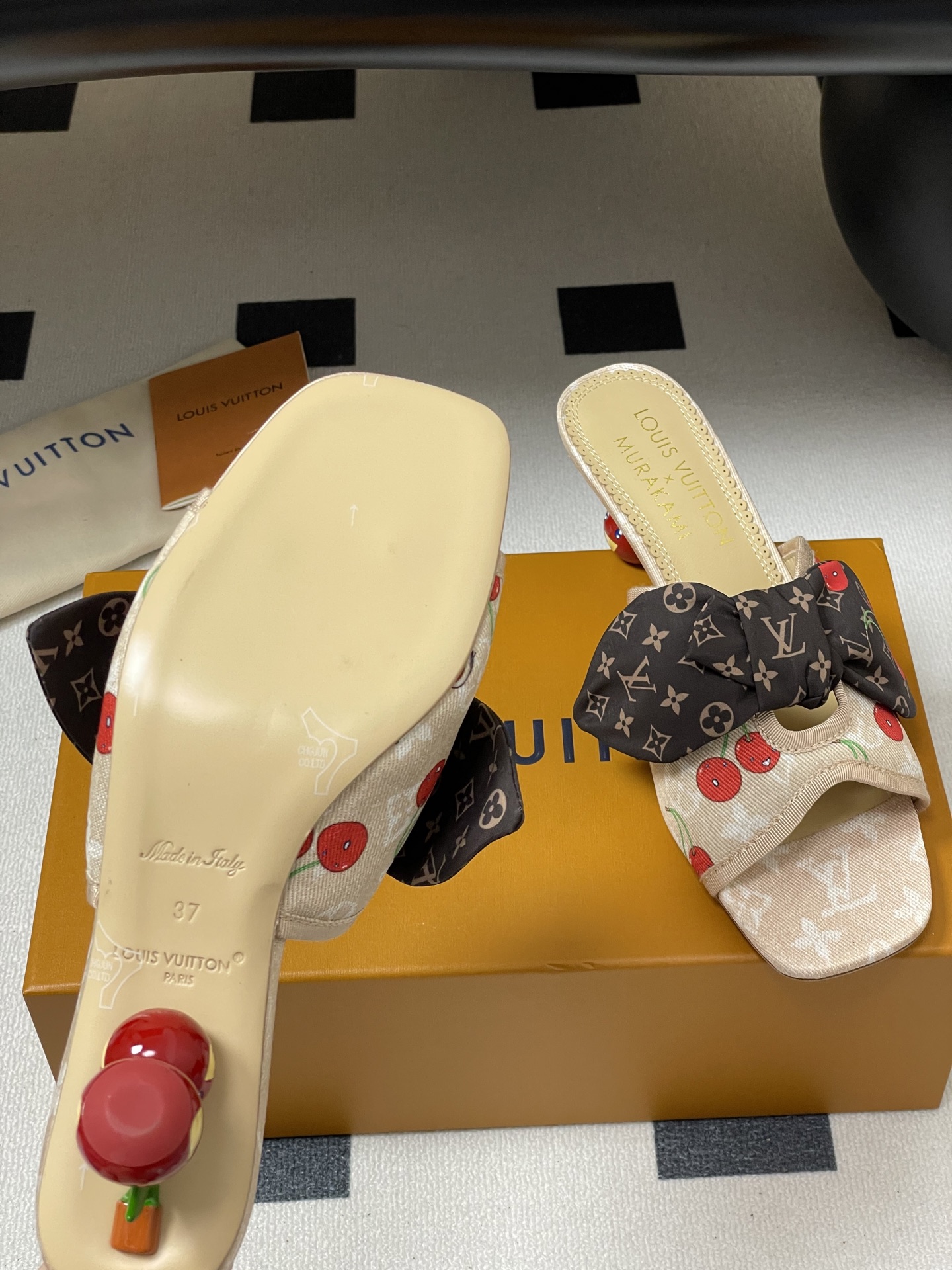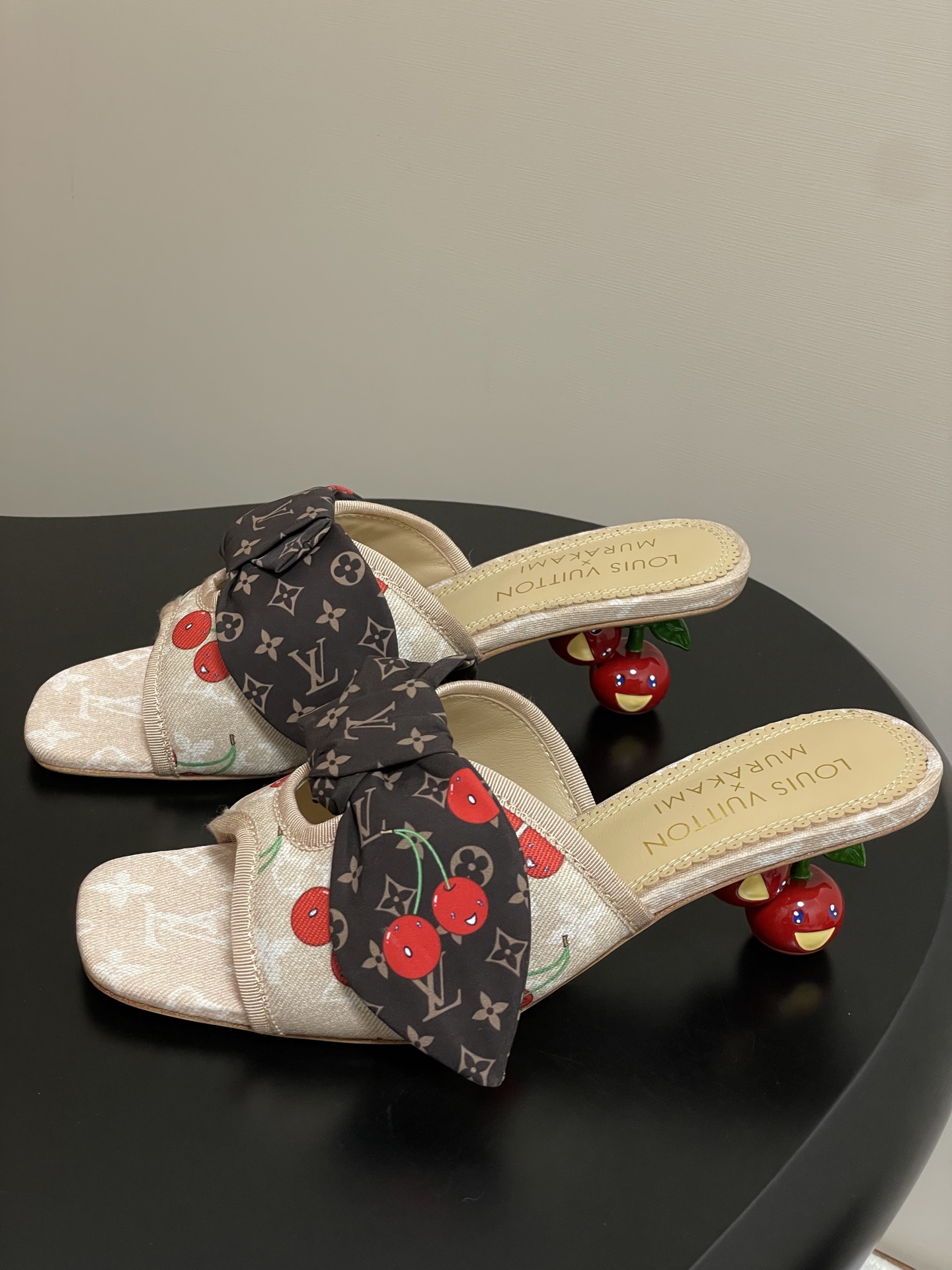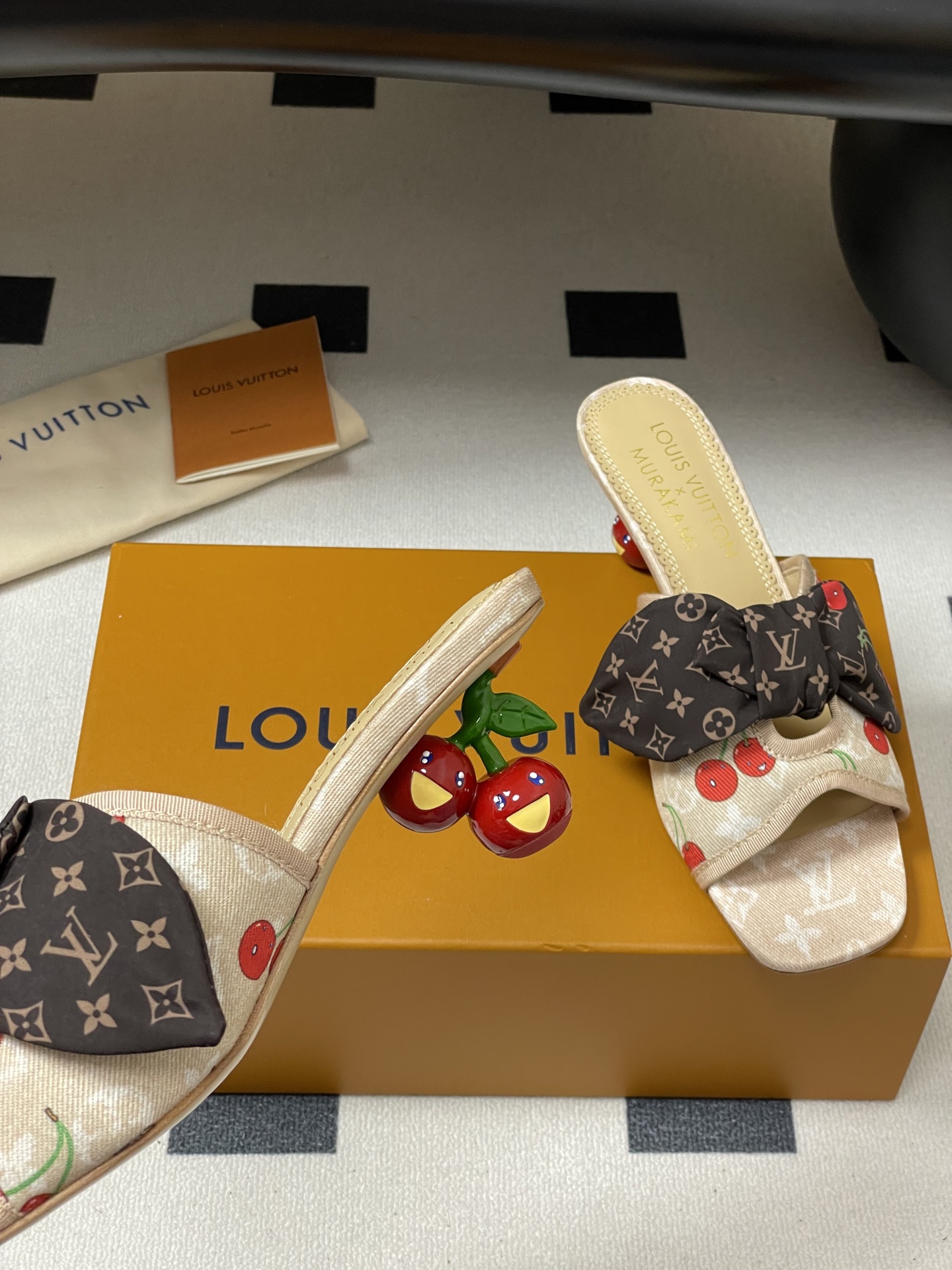 Louis Vuitton Black Monogram Cherry Bow Heel Sandals for Women