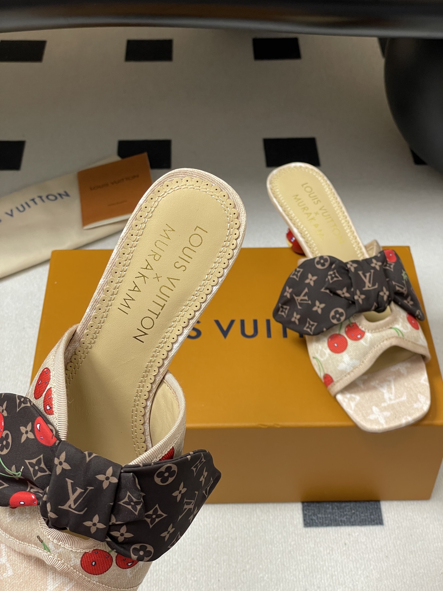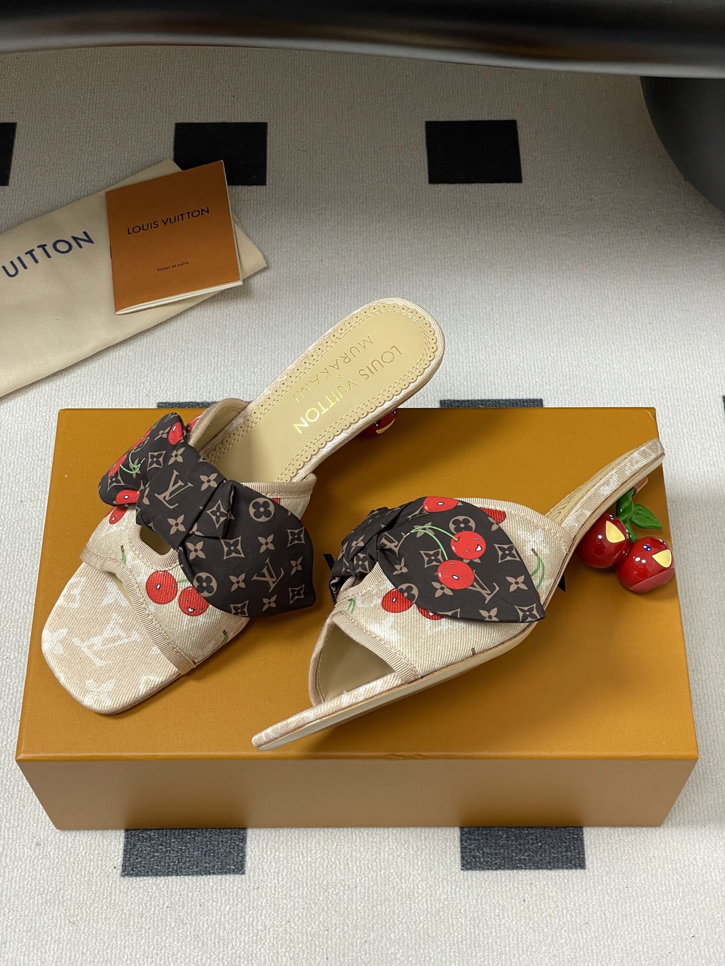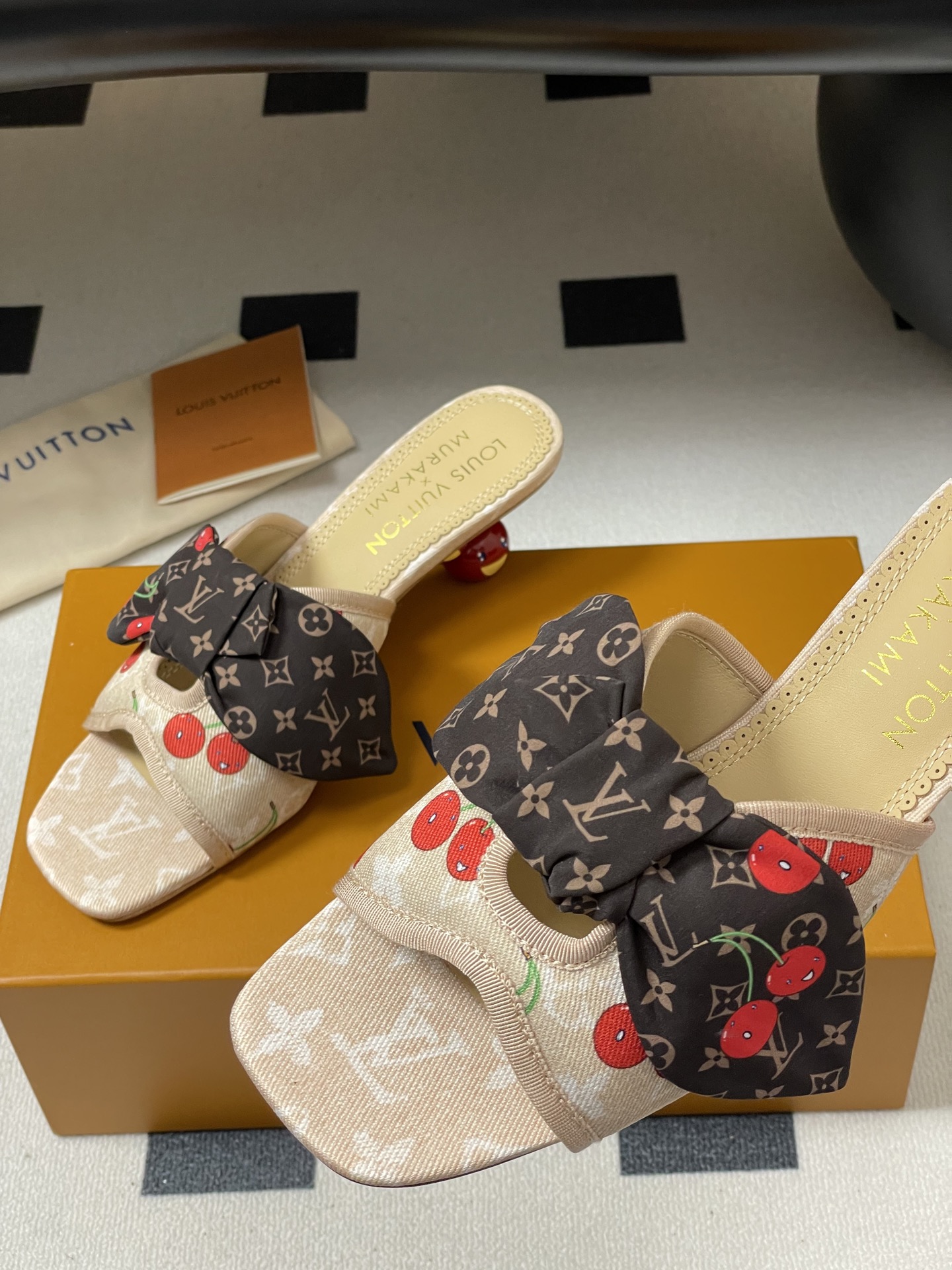 Louis Vuitton Black Monogram Cherry Bow Heel Sandals for Women