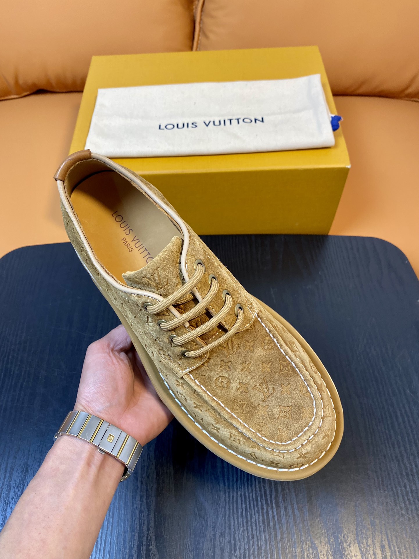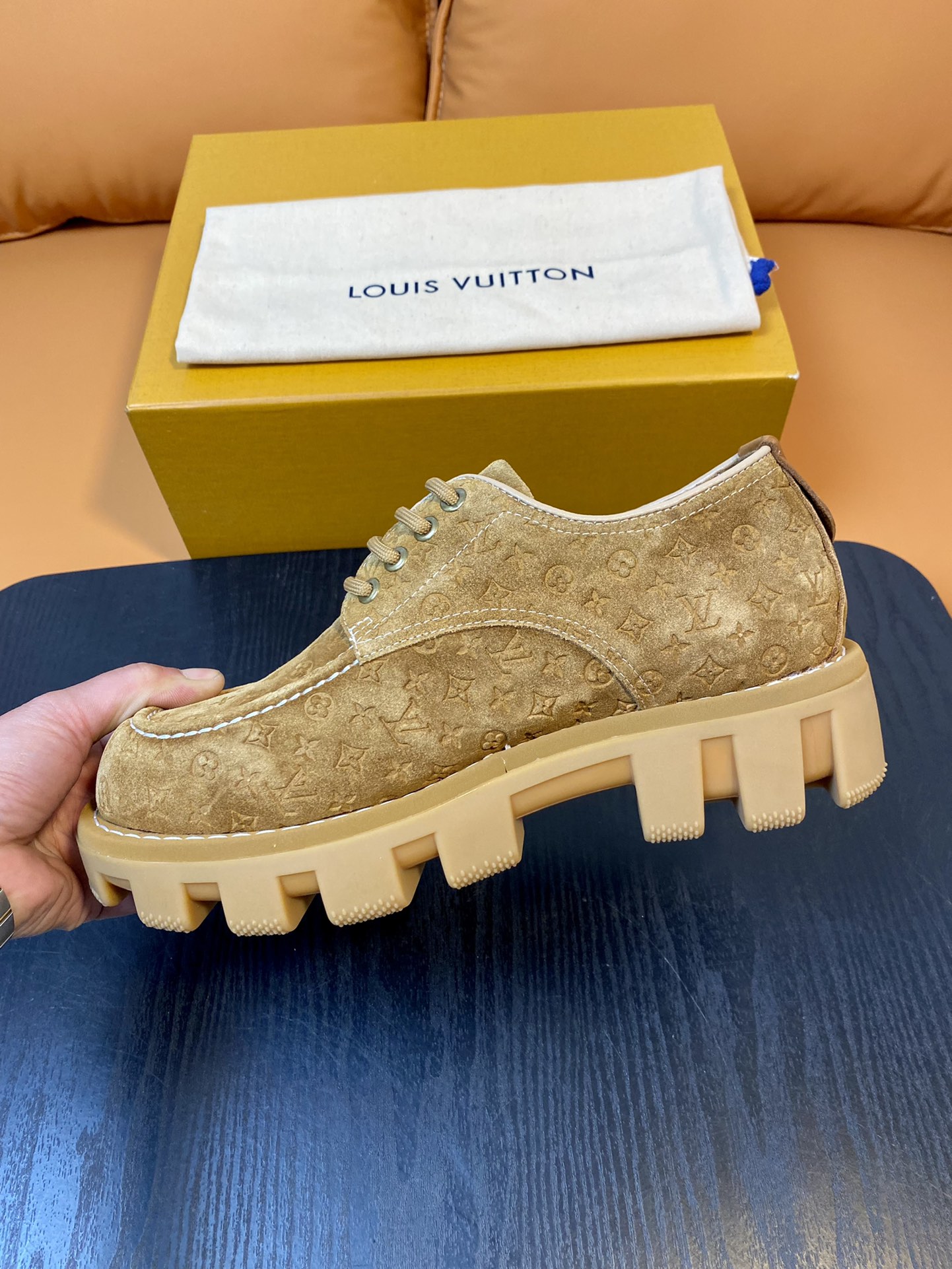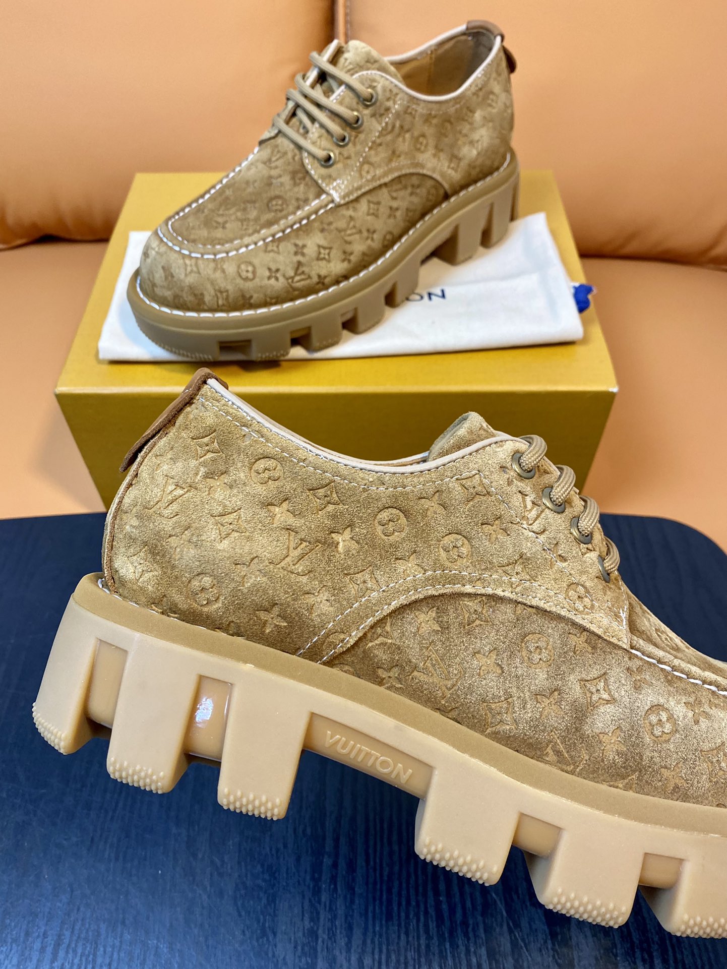 Louis Vuitton Beige Suede Leather Derby Shoes