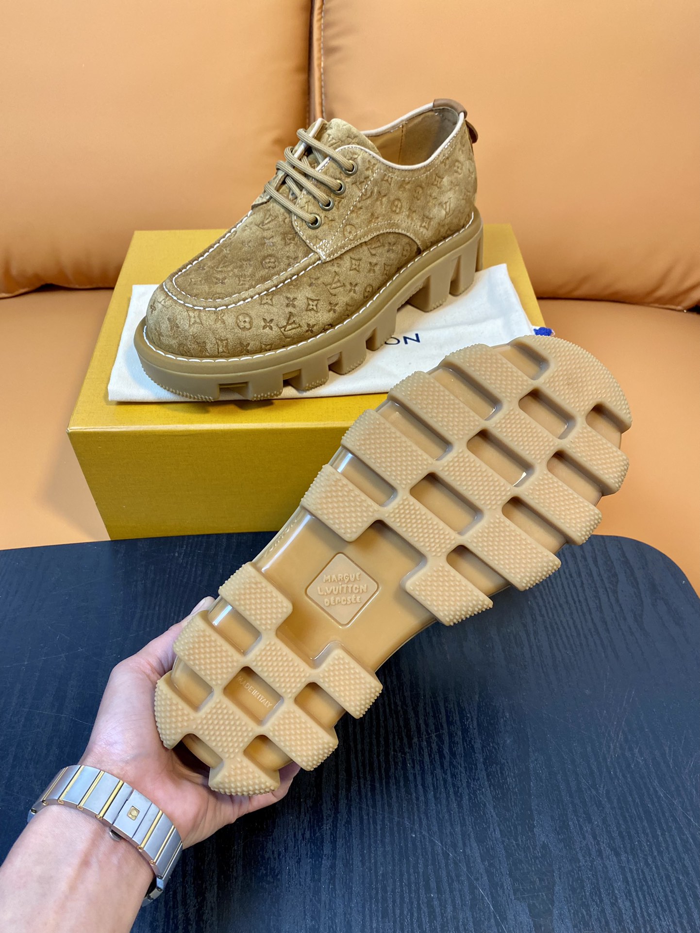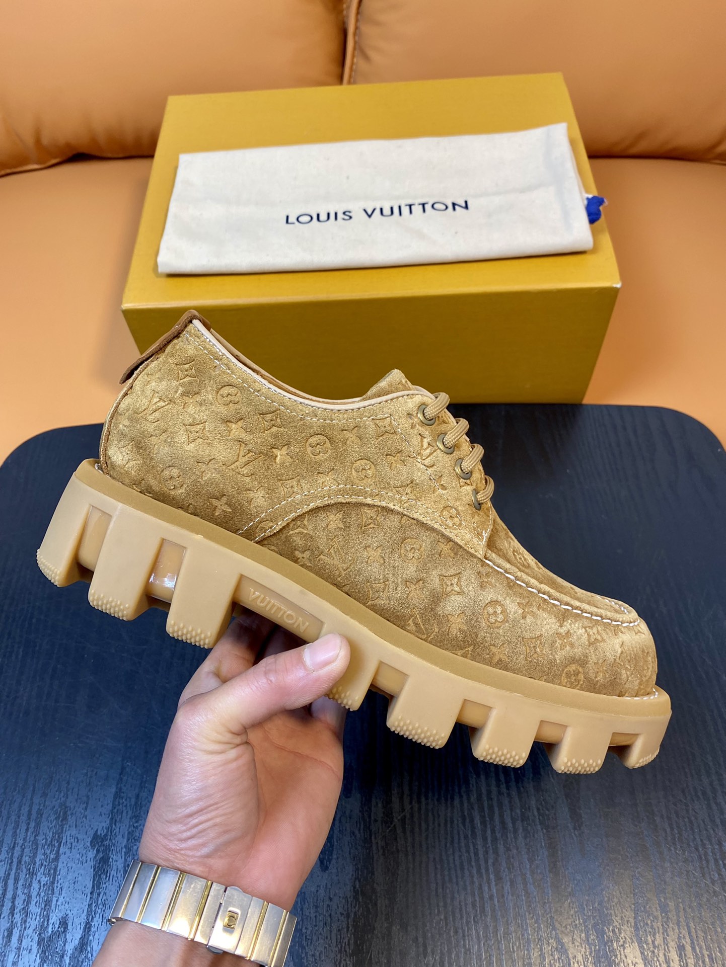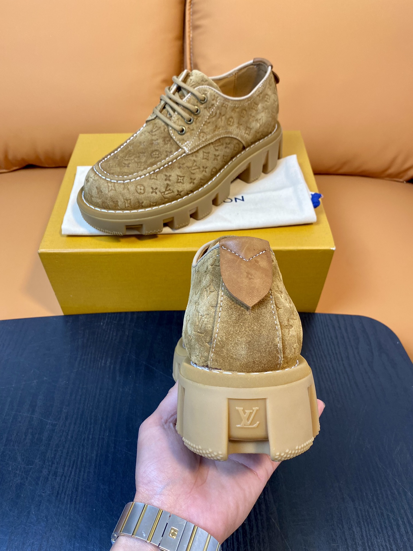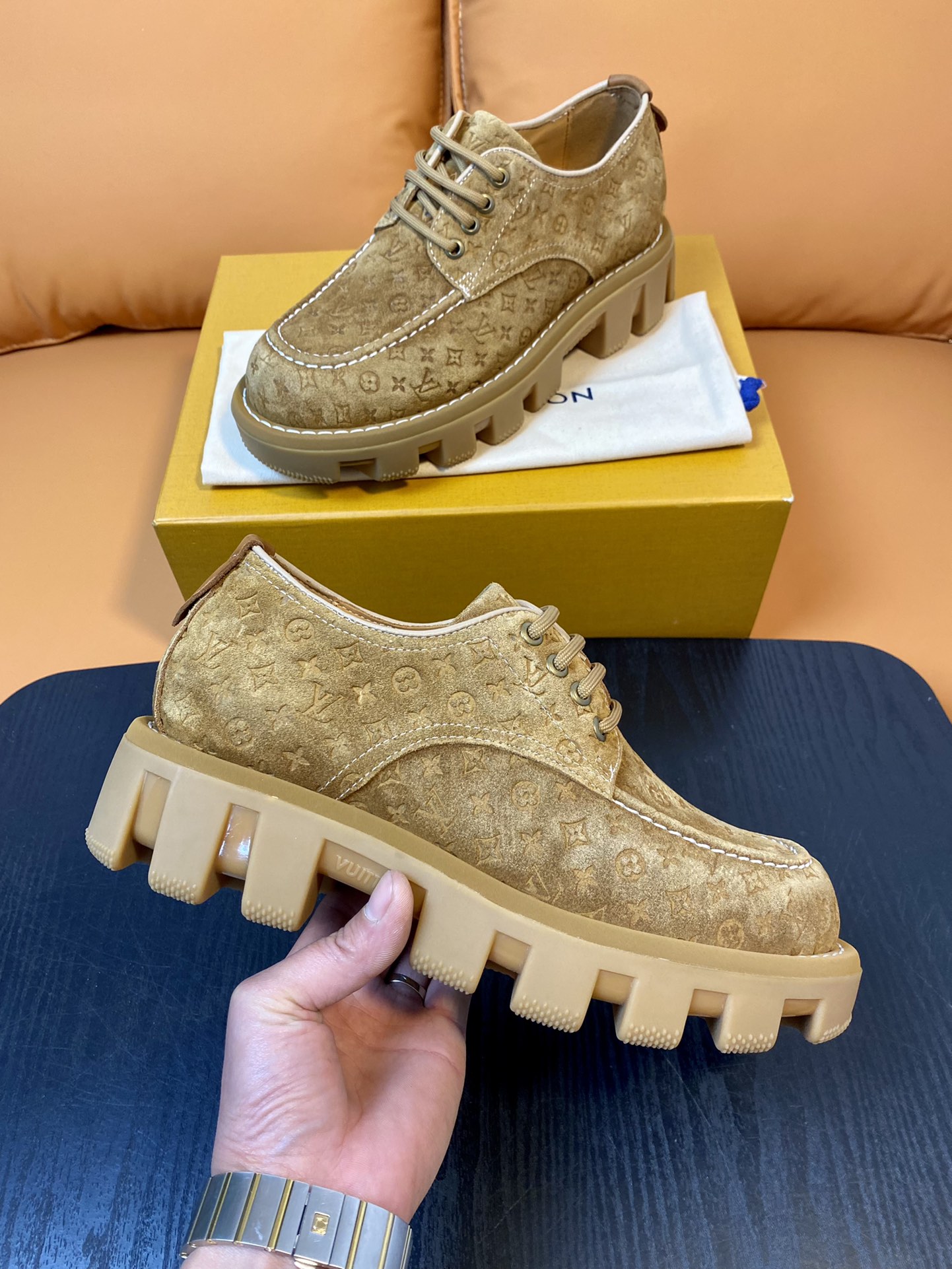 Louis Vuitton Beige Suede Leather Derby Shoes