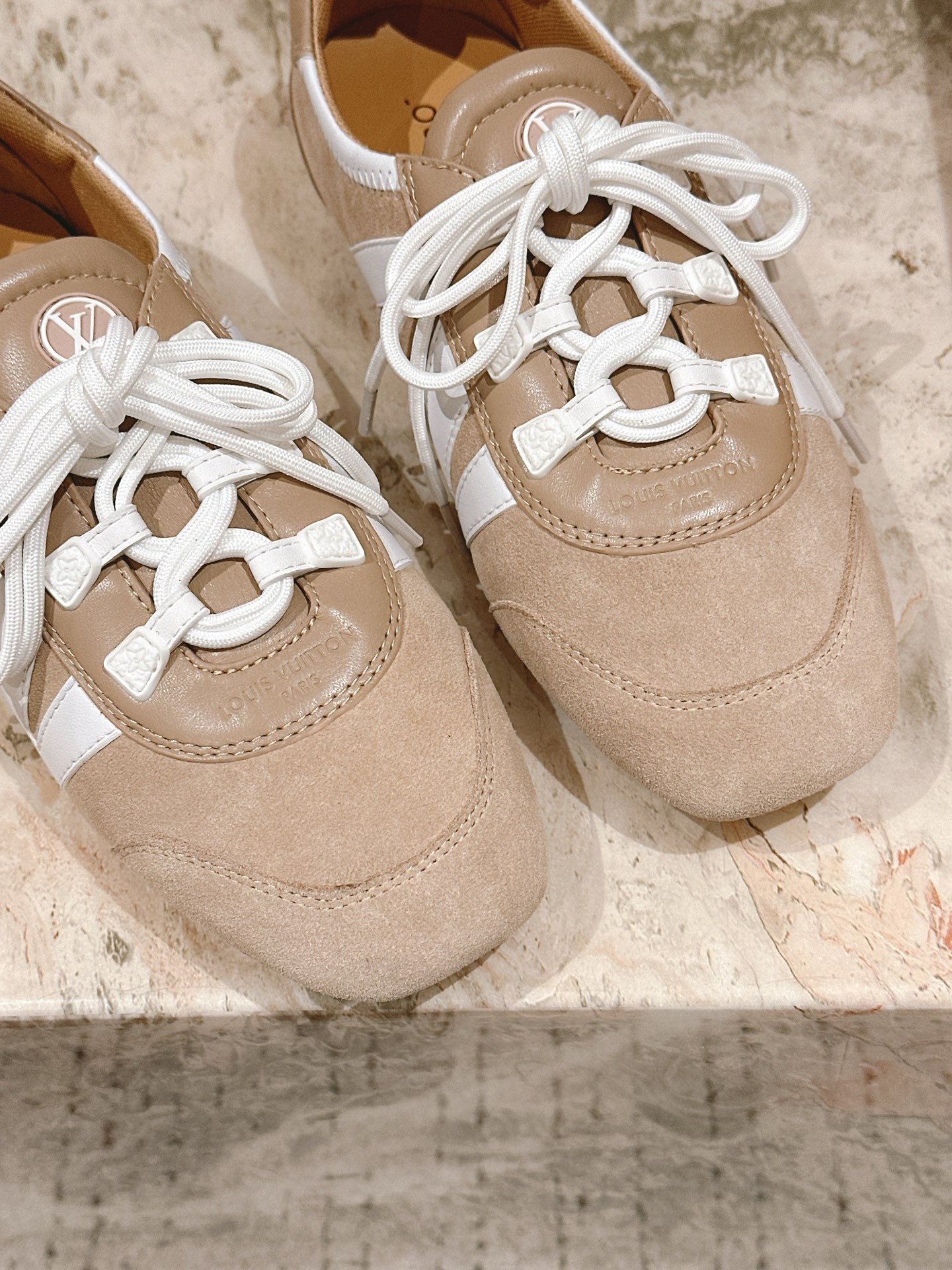 Louis Vuitton Men’s White Leather Trainers – Monogram Perforated Low-Top Sneakers