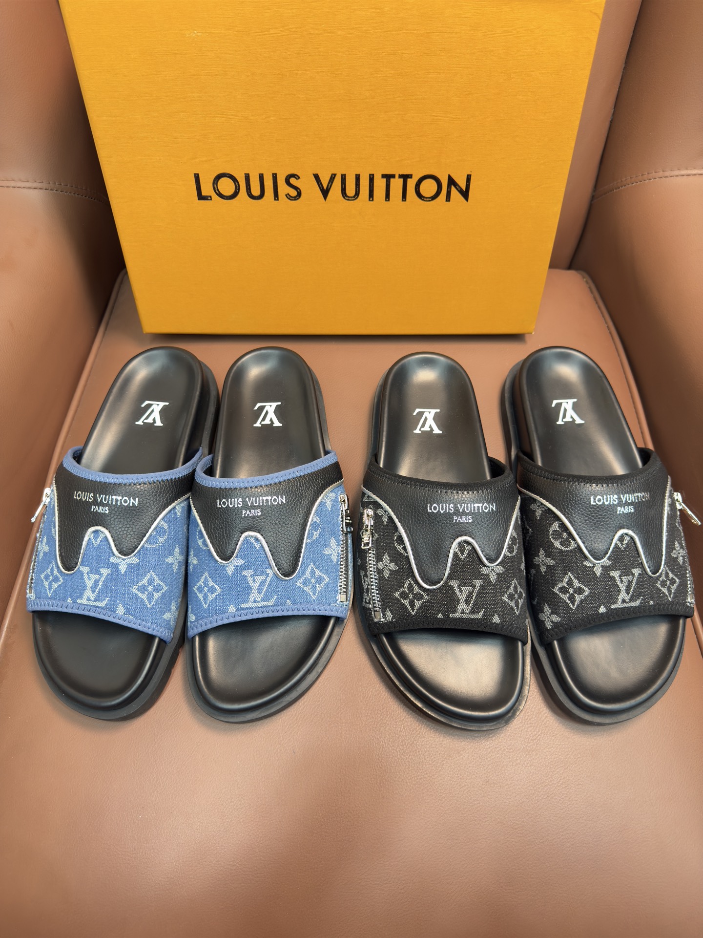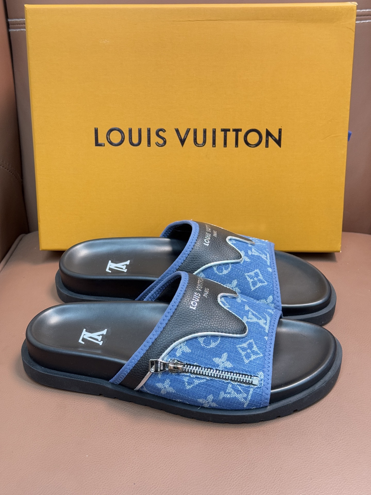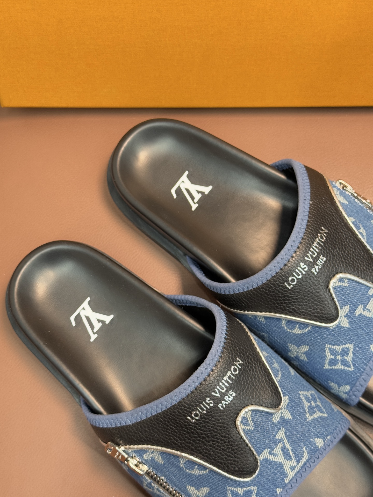 Louis Vuitton Beige Monogram Leather Slides for Men V-Strap Luxury Designer Sandals