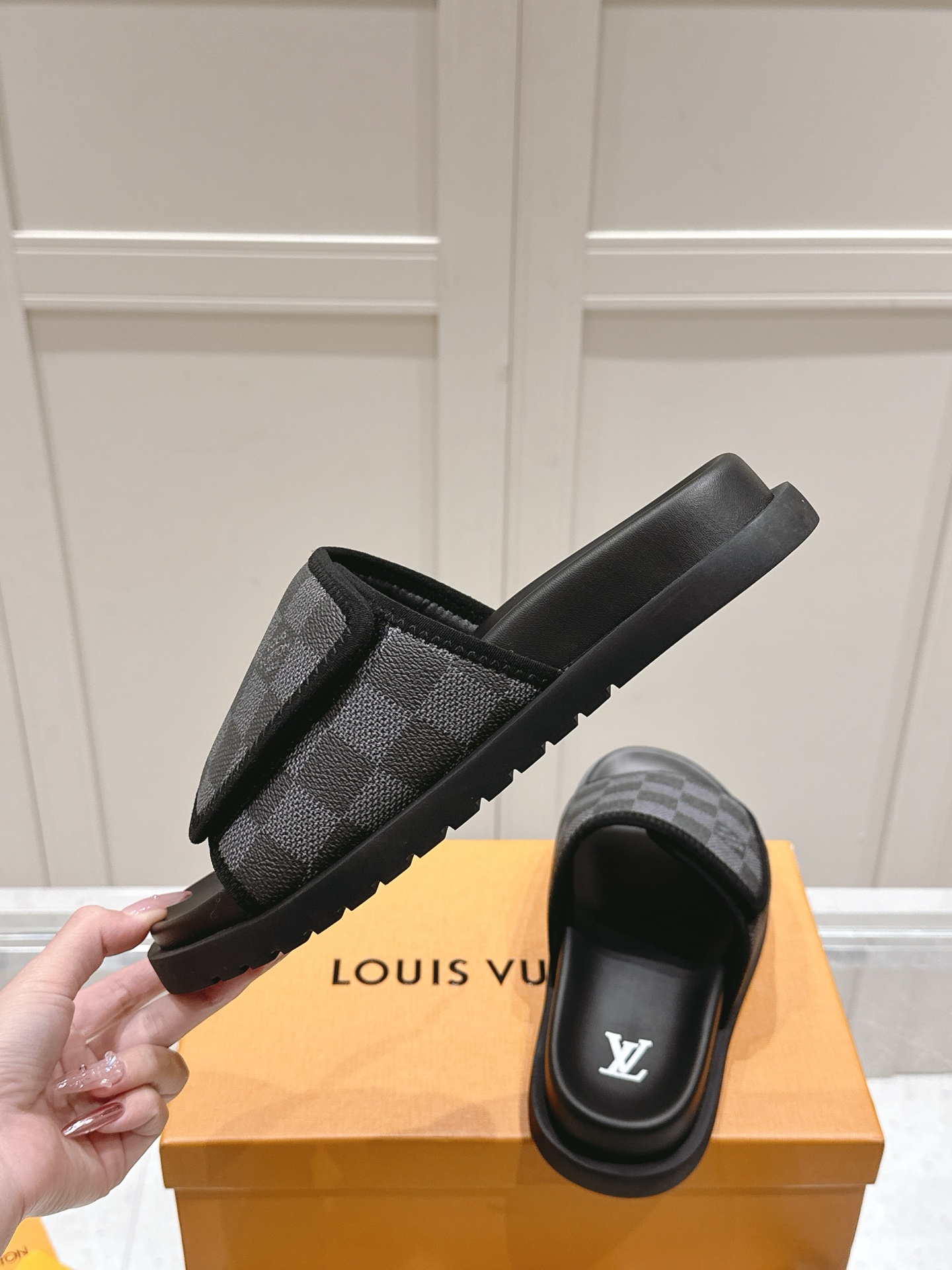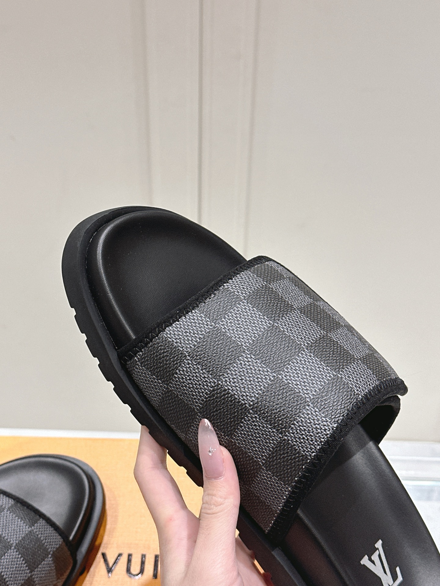 Louis Vuitton Black Damier Slide Sandals for Men