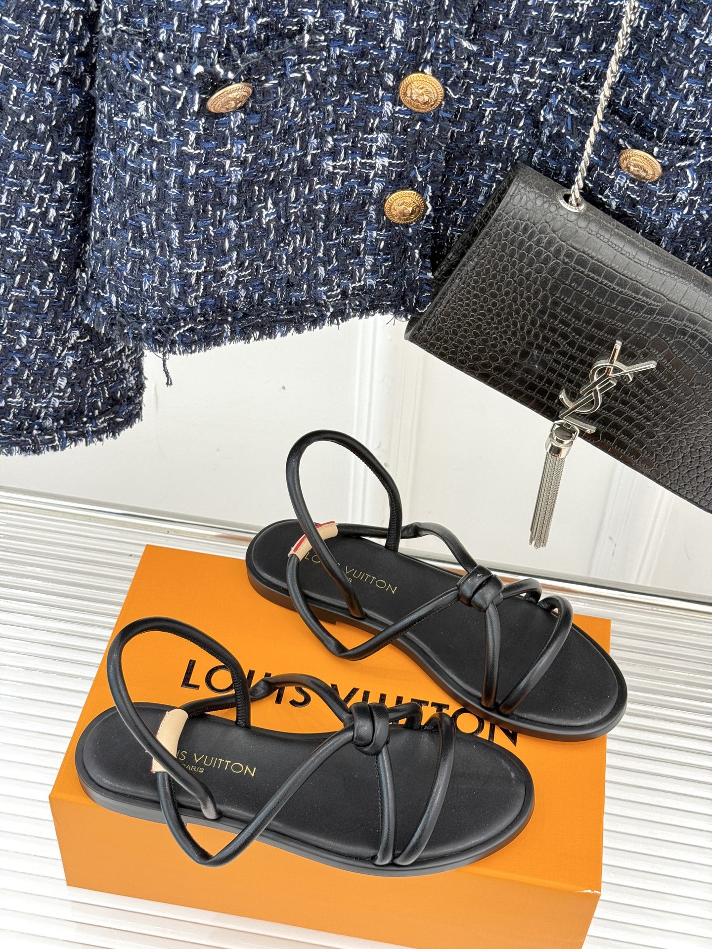 Louis Vuitton Black Leather Sandals with Adjustable Straps
