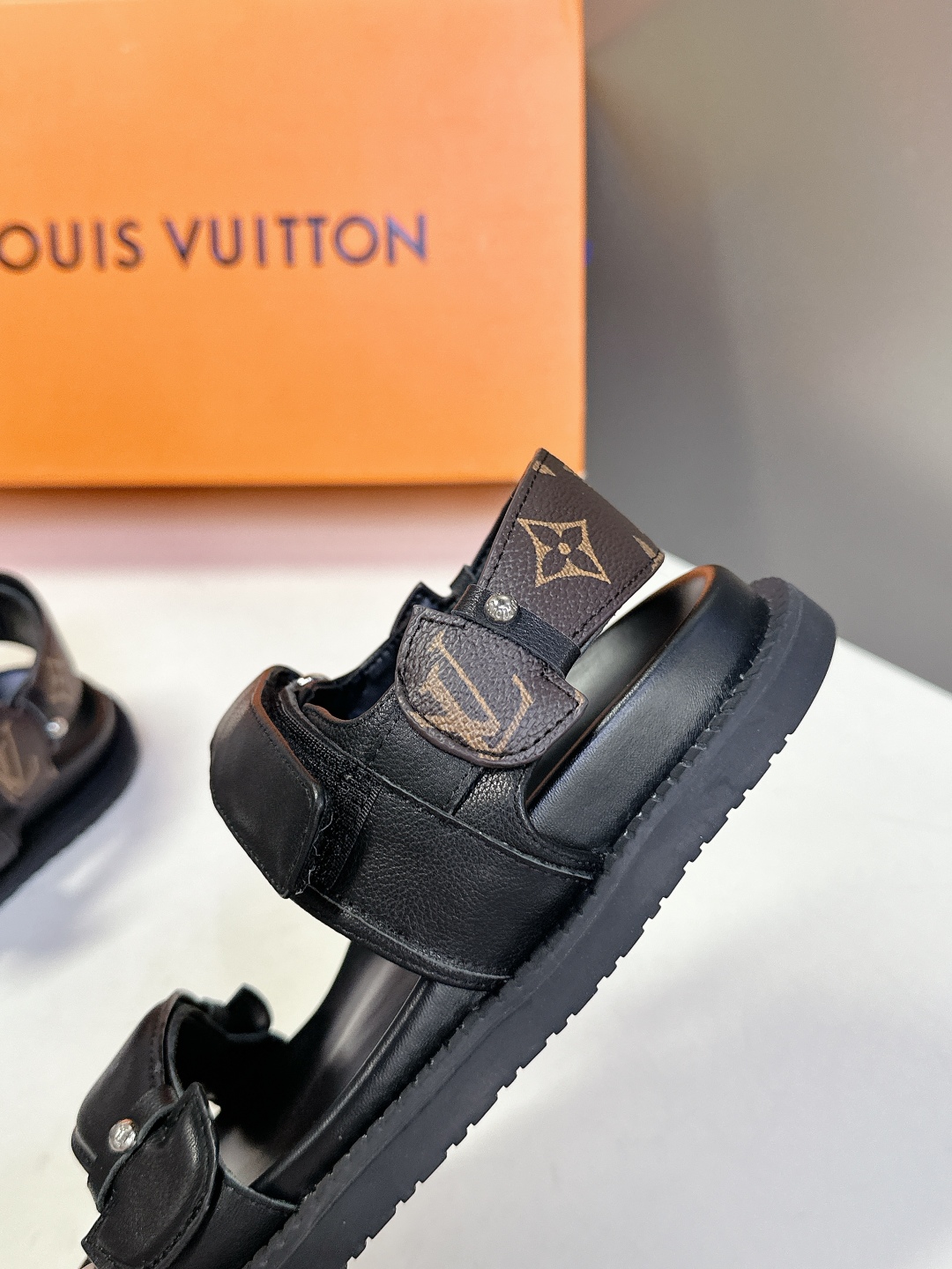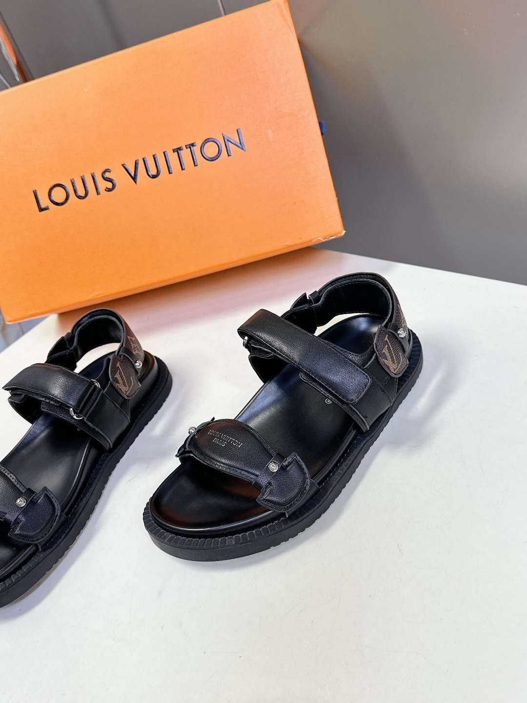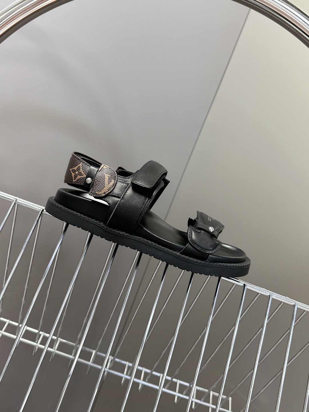 Louis Vuitton Black Leather Sandals with Adjustable Straps