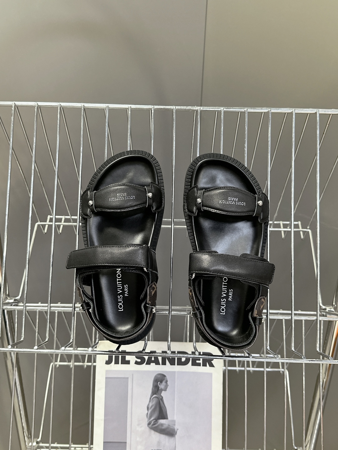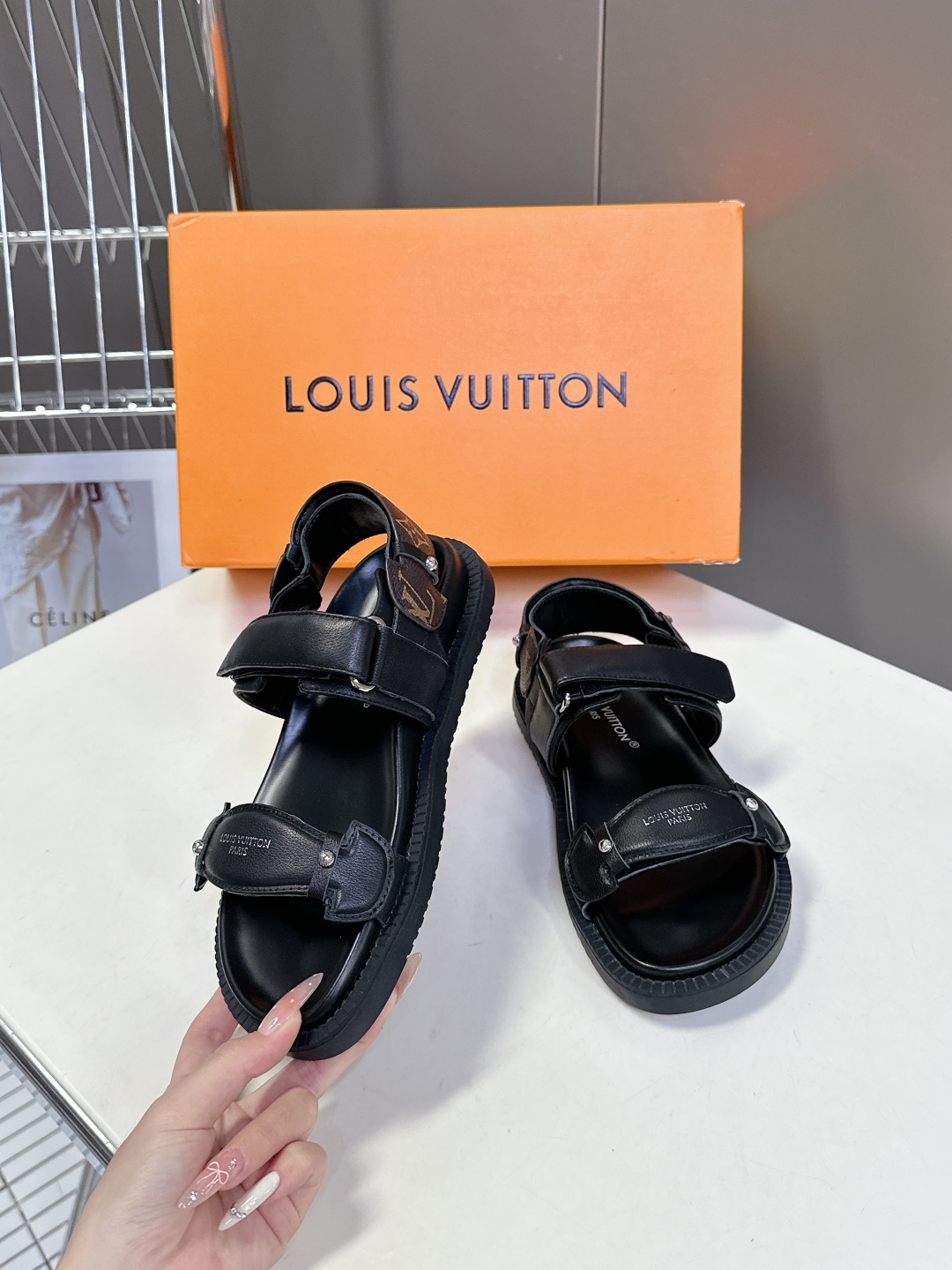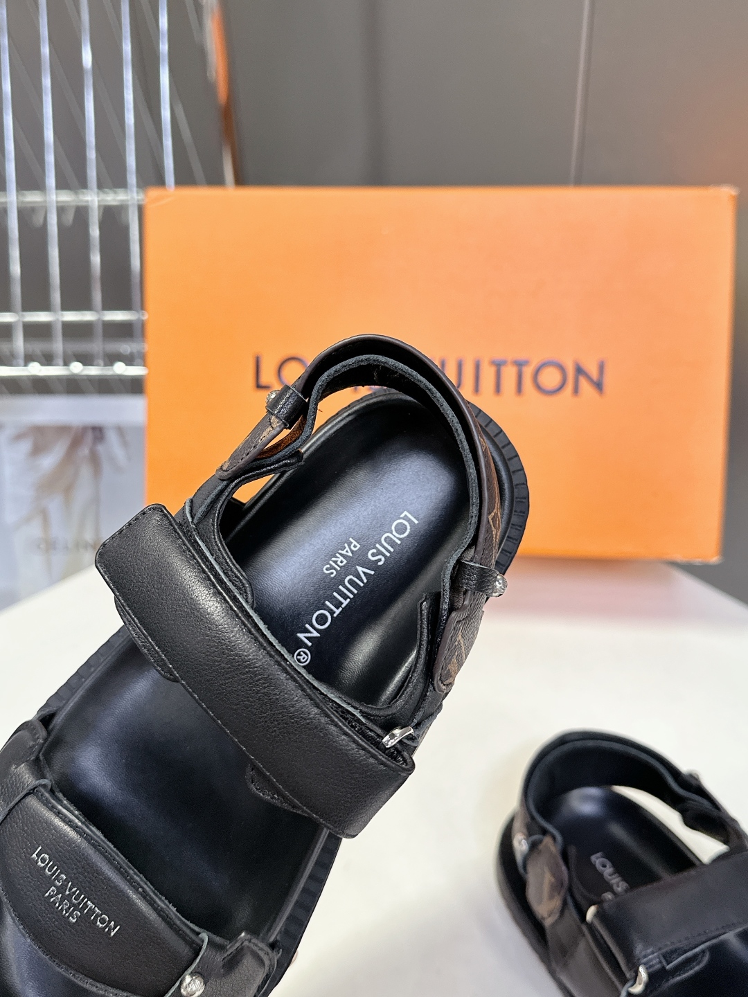 Louis Vuitton Black Leather Sandals with Adjustable Straps