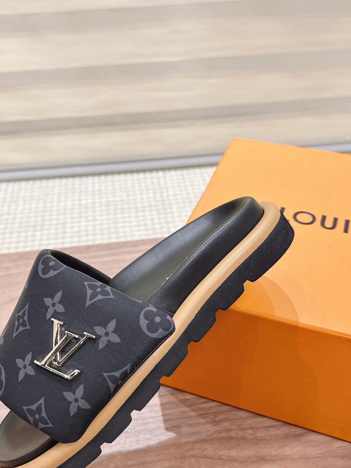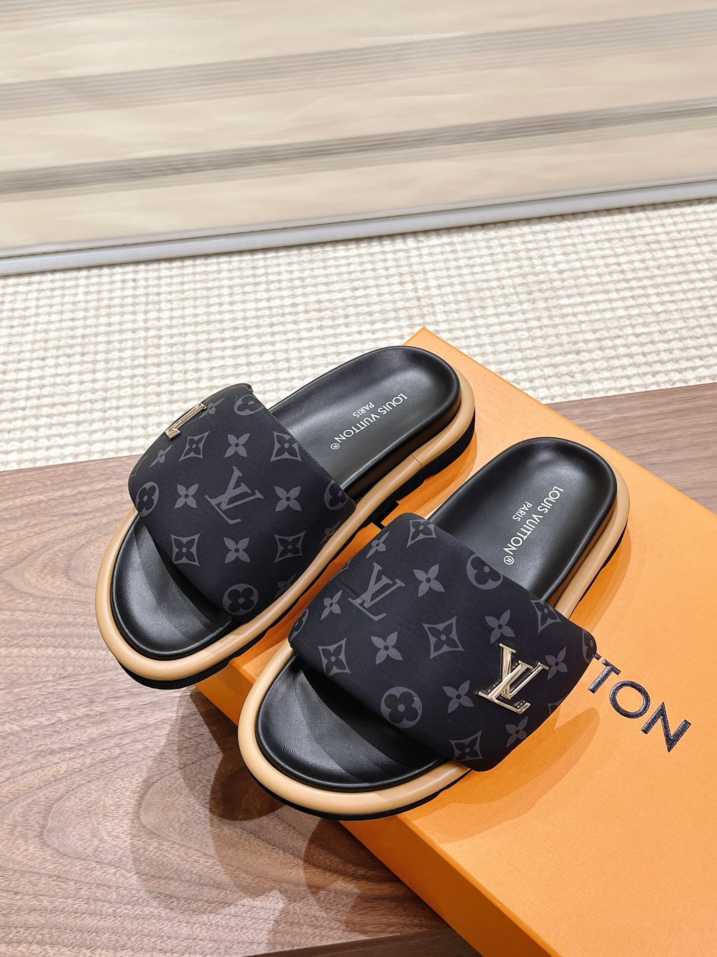 Louis Vuitton Monogram Black Canvas Slide Sandals