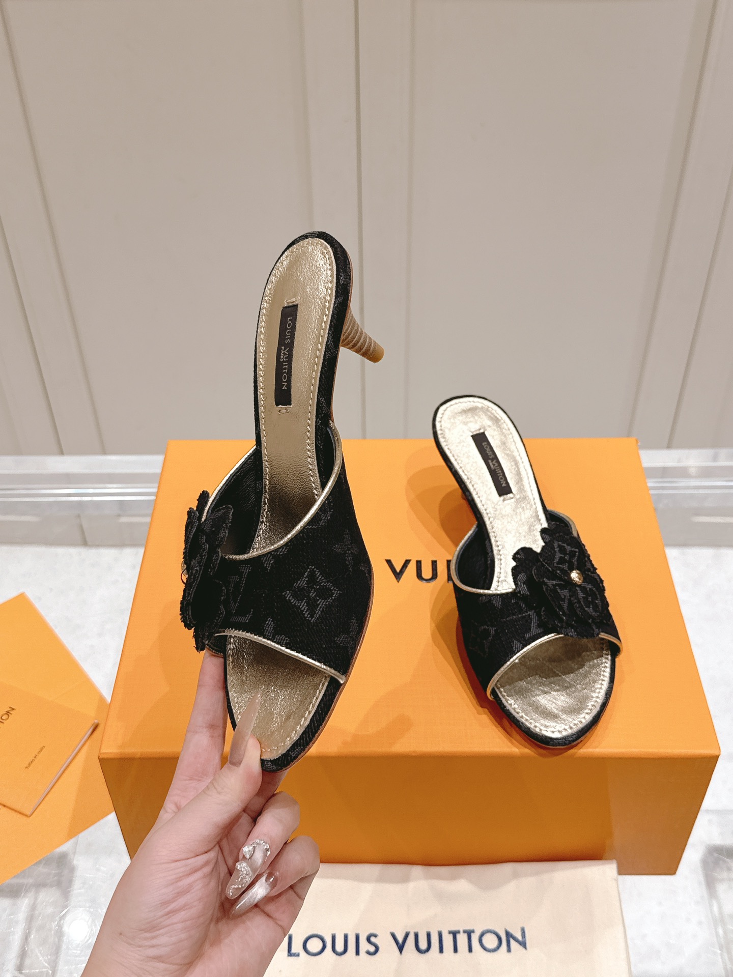 Louis Vuitton Black Monogram Canvas Slide Sandals – Comfortable Rubber Sole