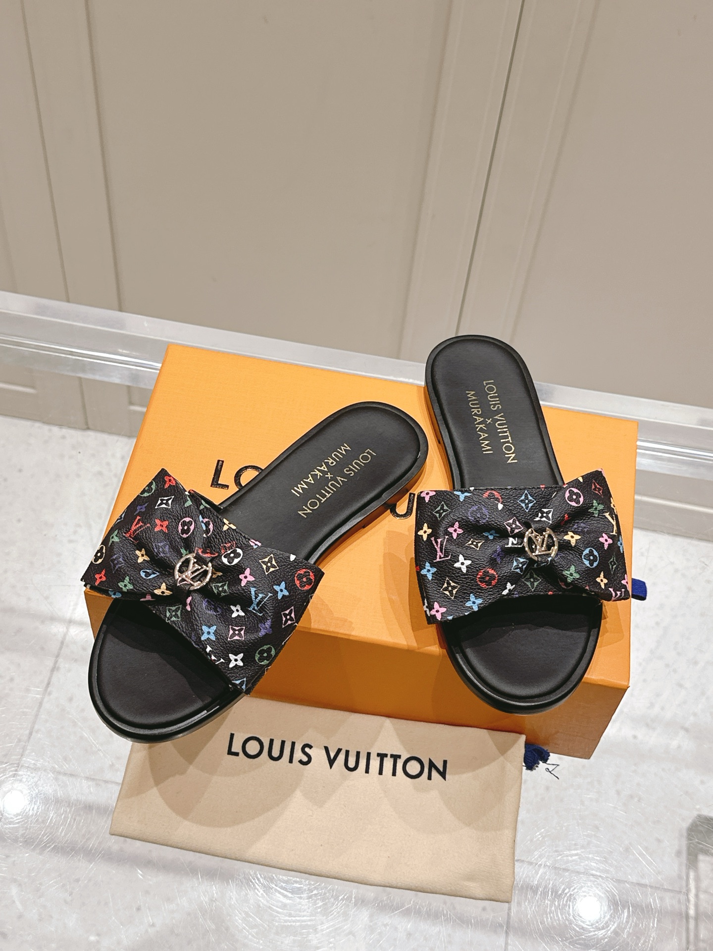 Louis Vuitton Black Monogram Cherry Bow Heel Sandals for Women