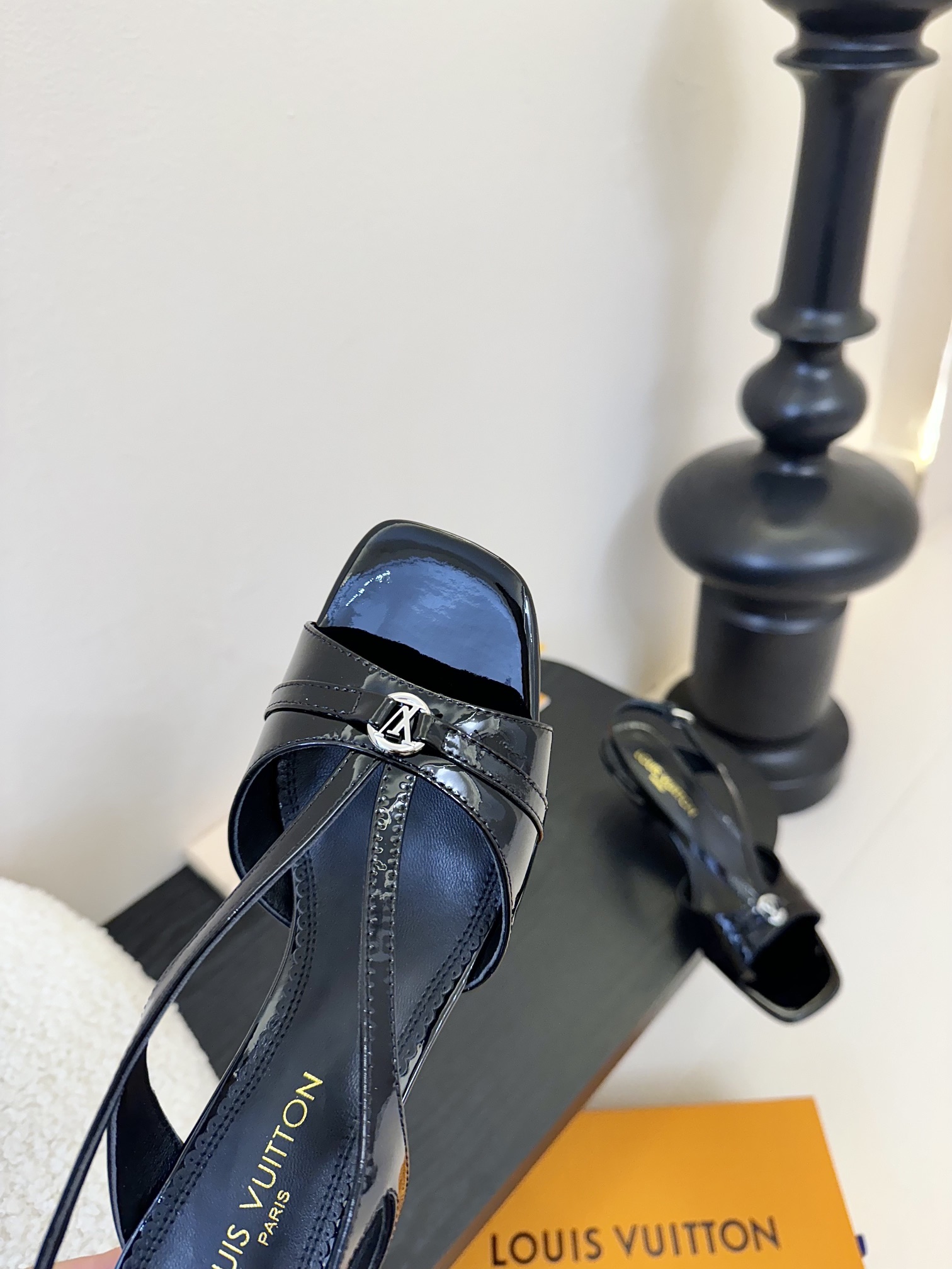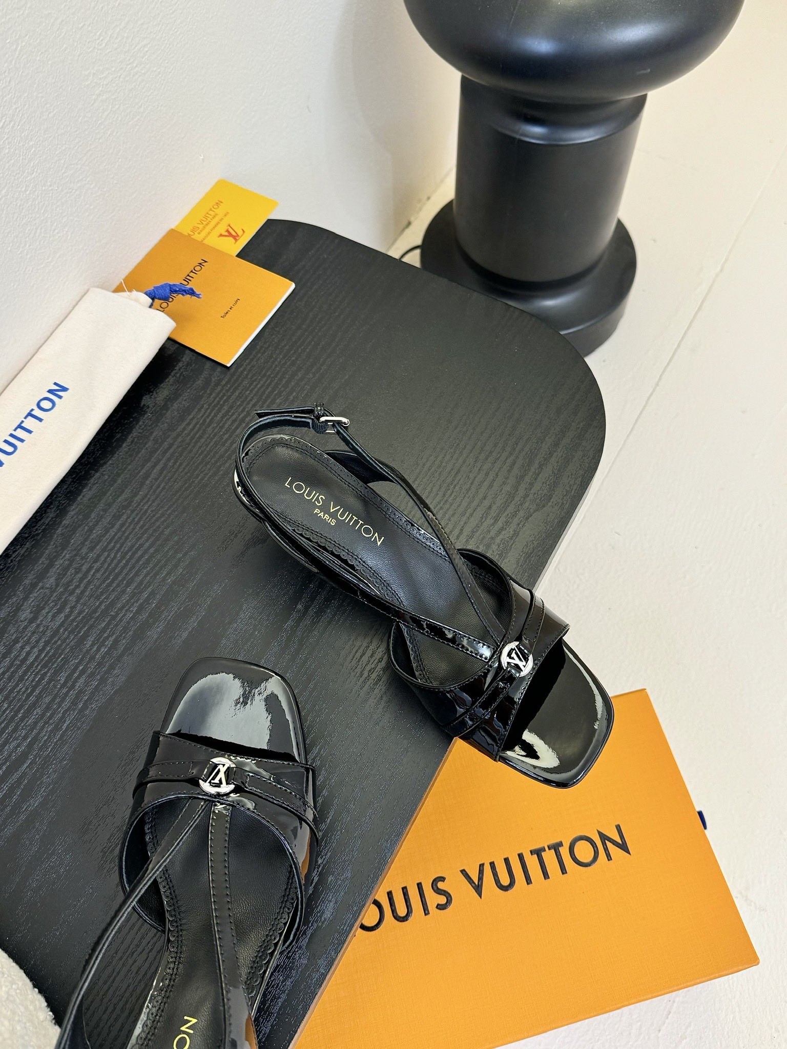 Louis Vuitton Black Patent Leather Slingback Sandals