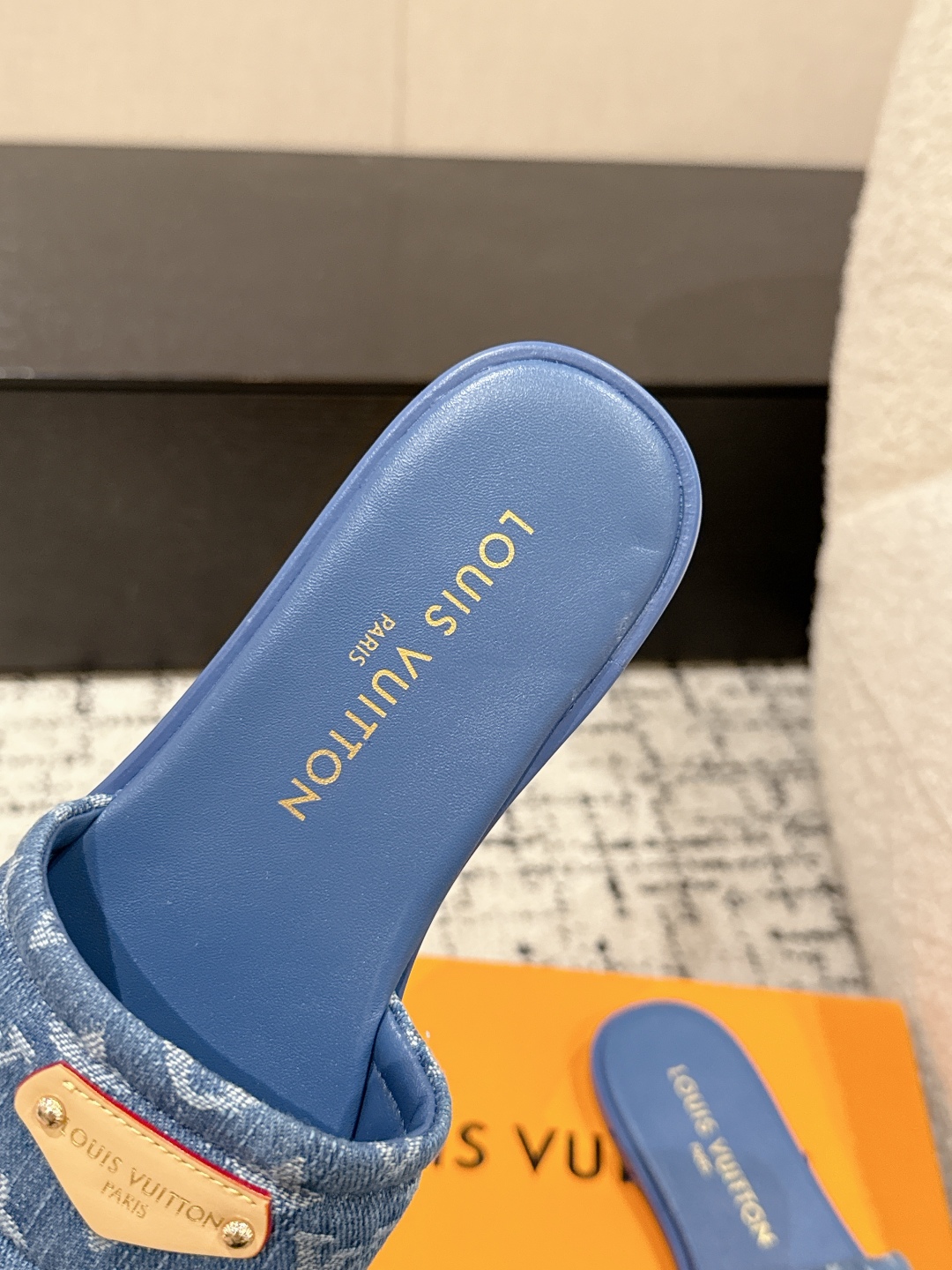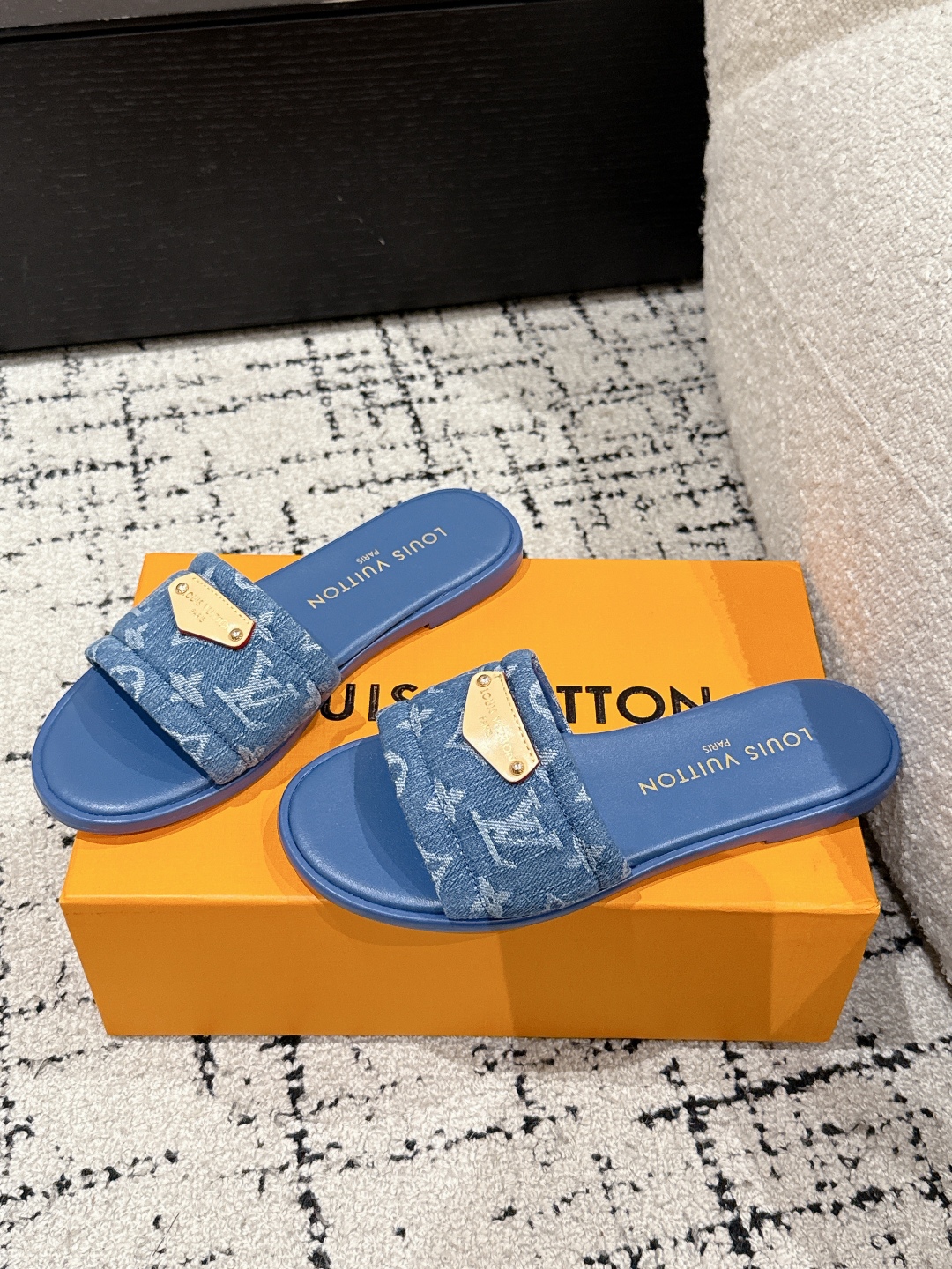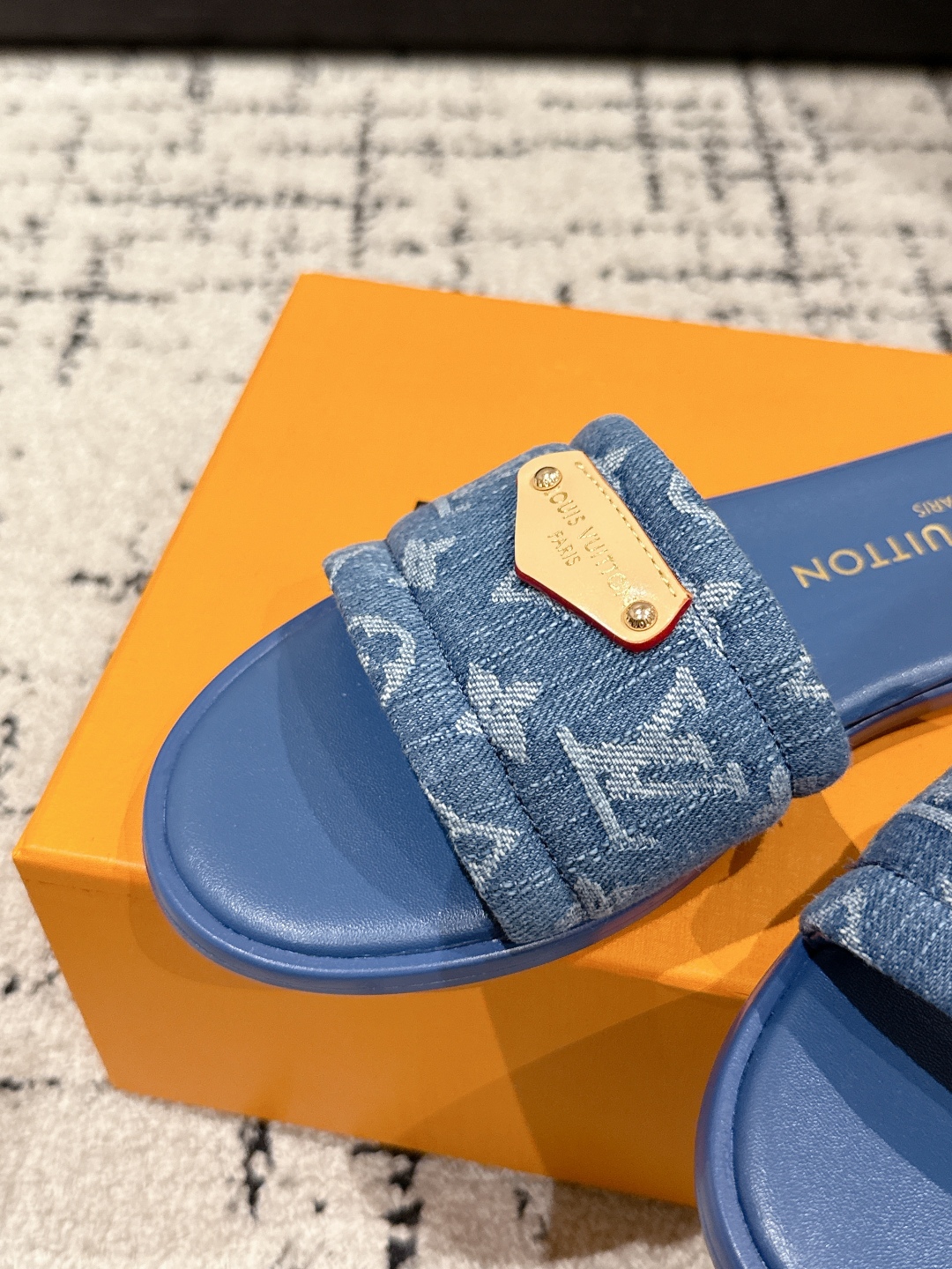 Louis Vuitton Denim Blue Monogram Bow Slide Sandals
