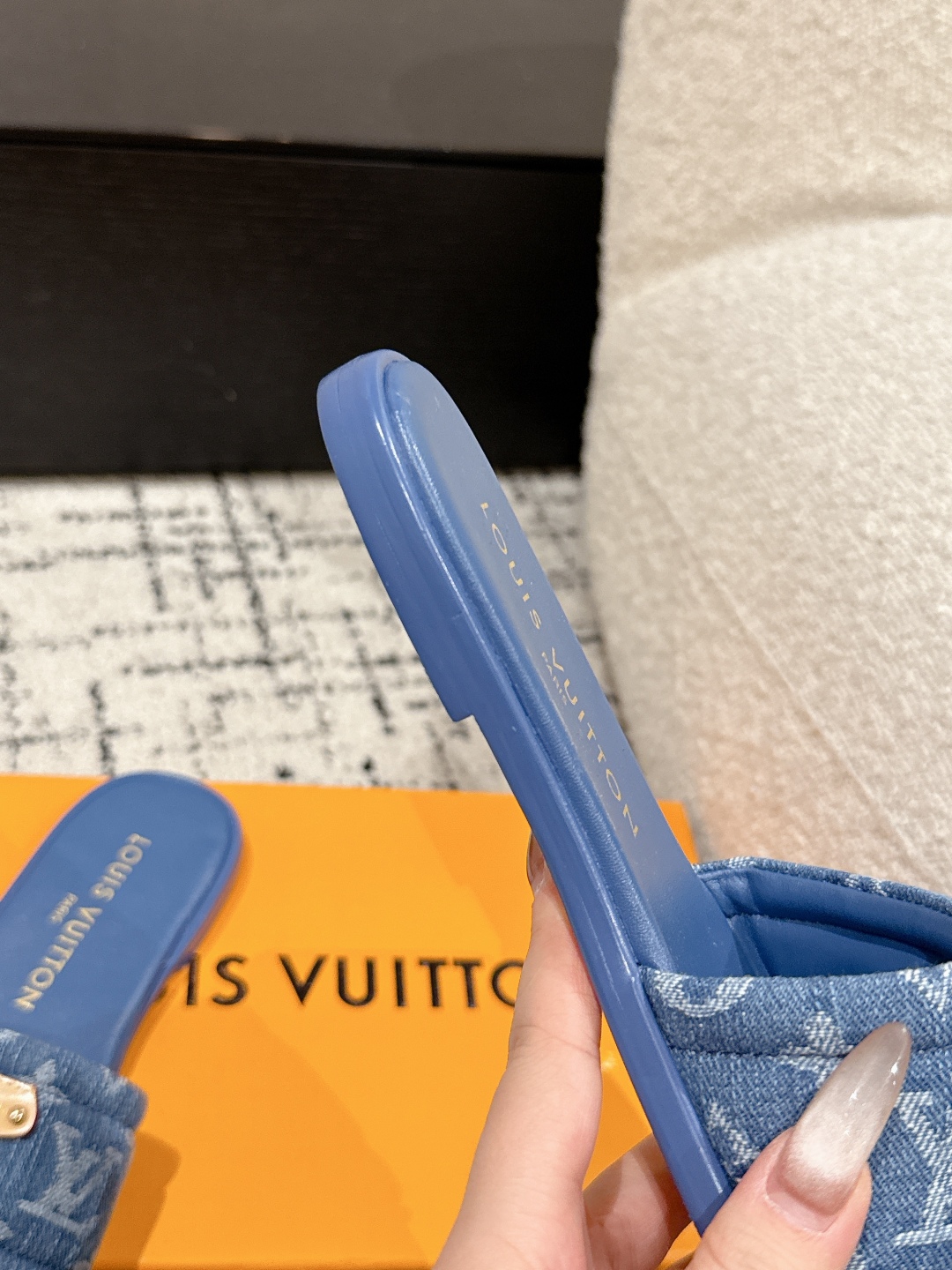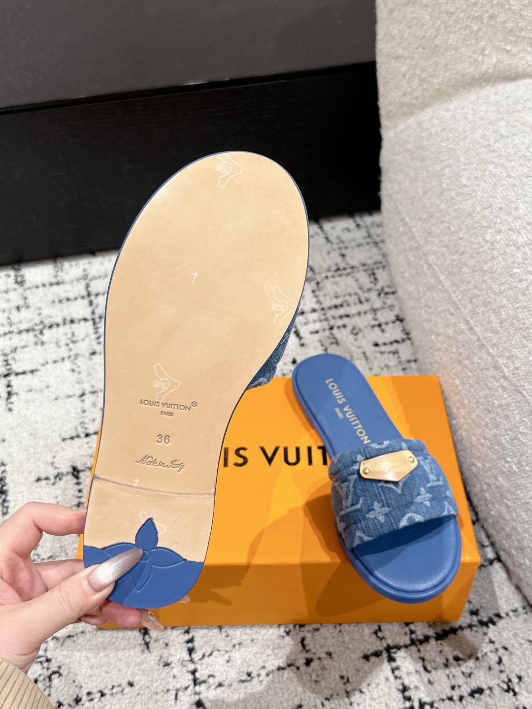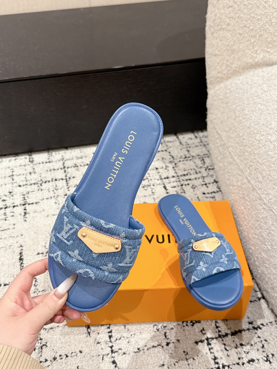 Louis Vuitton Denim Blue Monogram Bow Slide Sandals