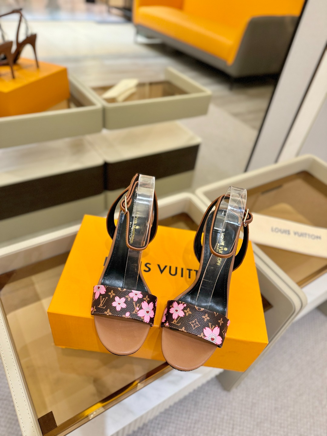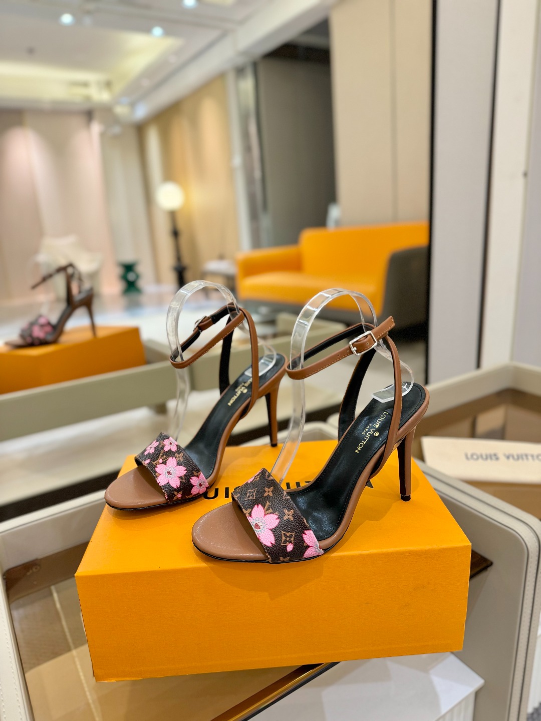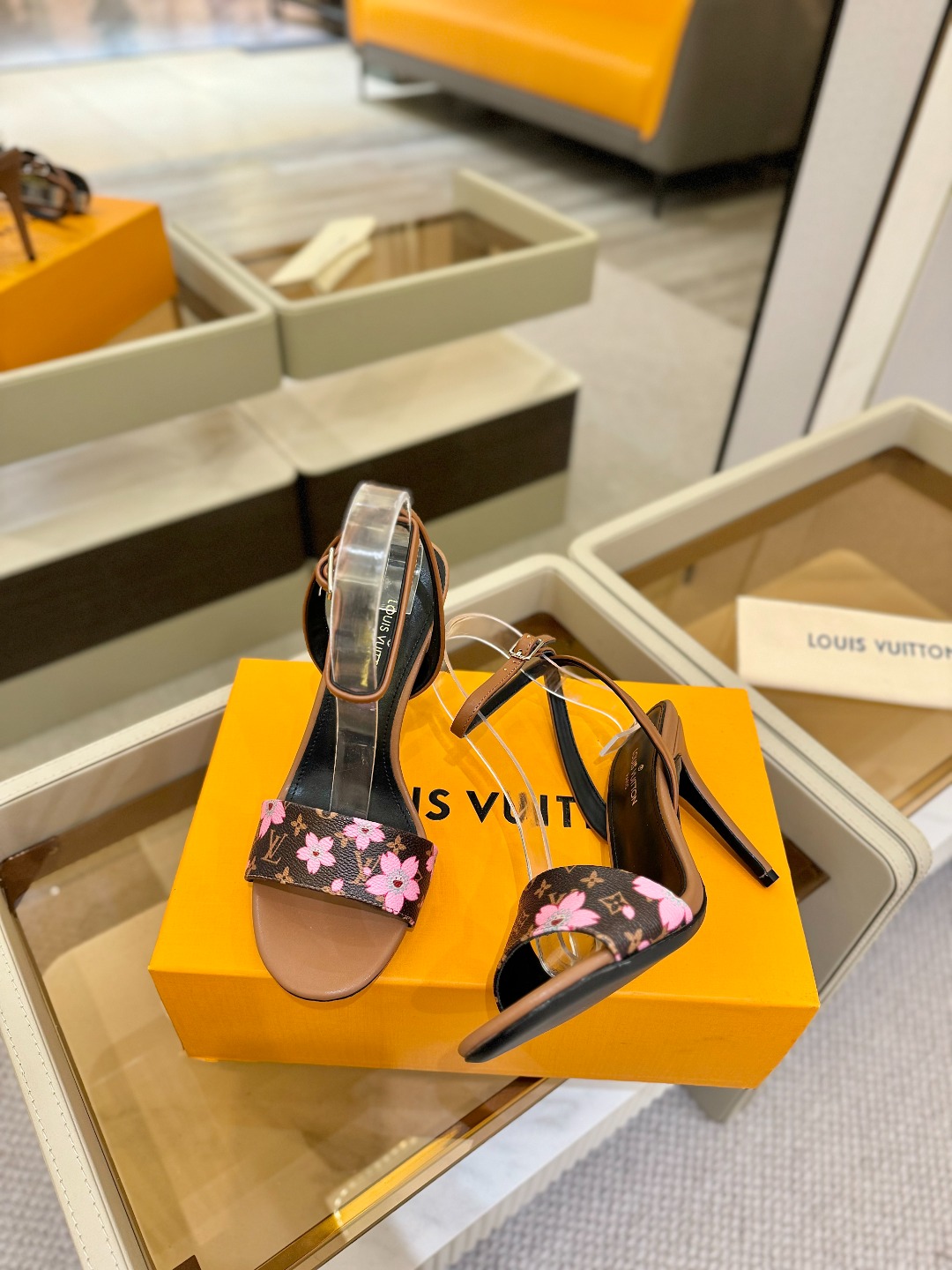 Louis Vuitton brown pink monogram high heel sandals for women