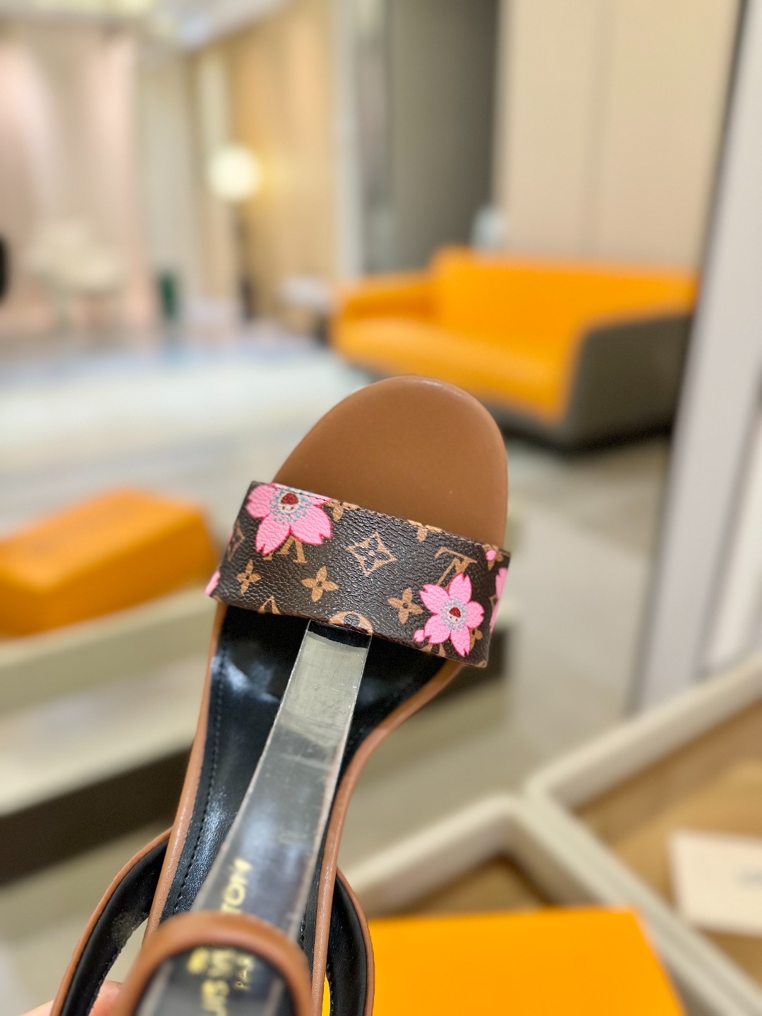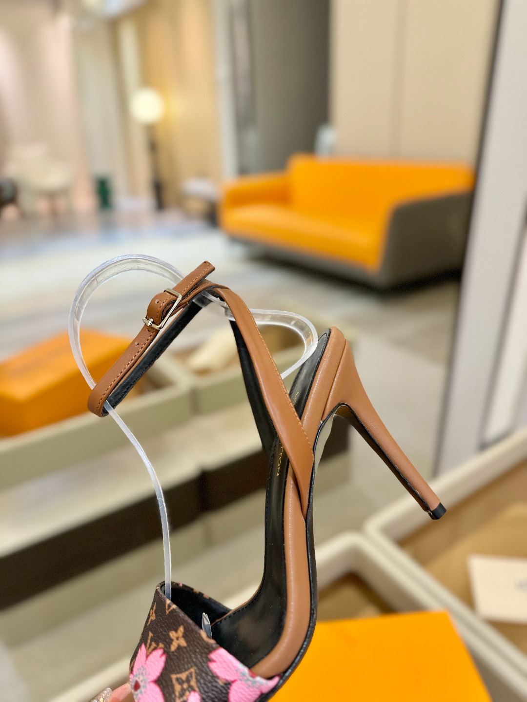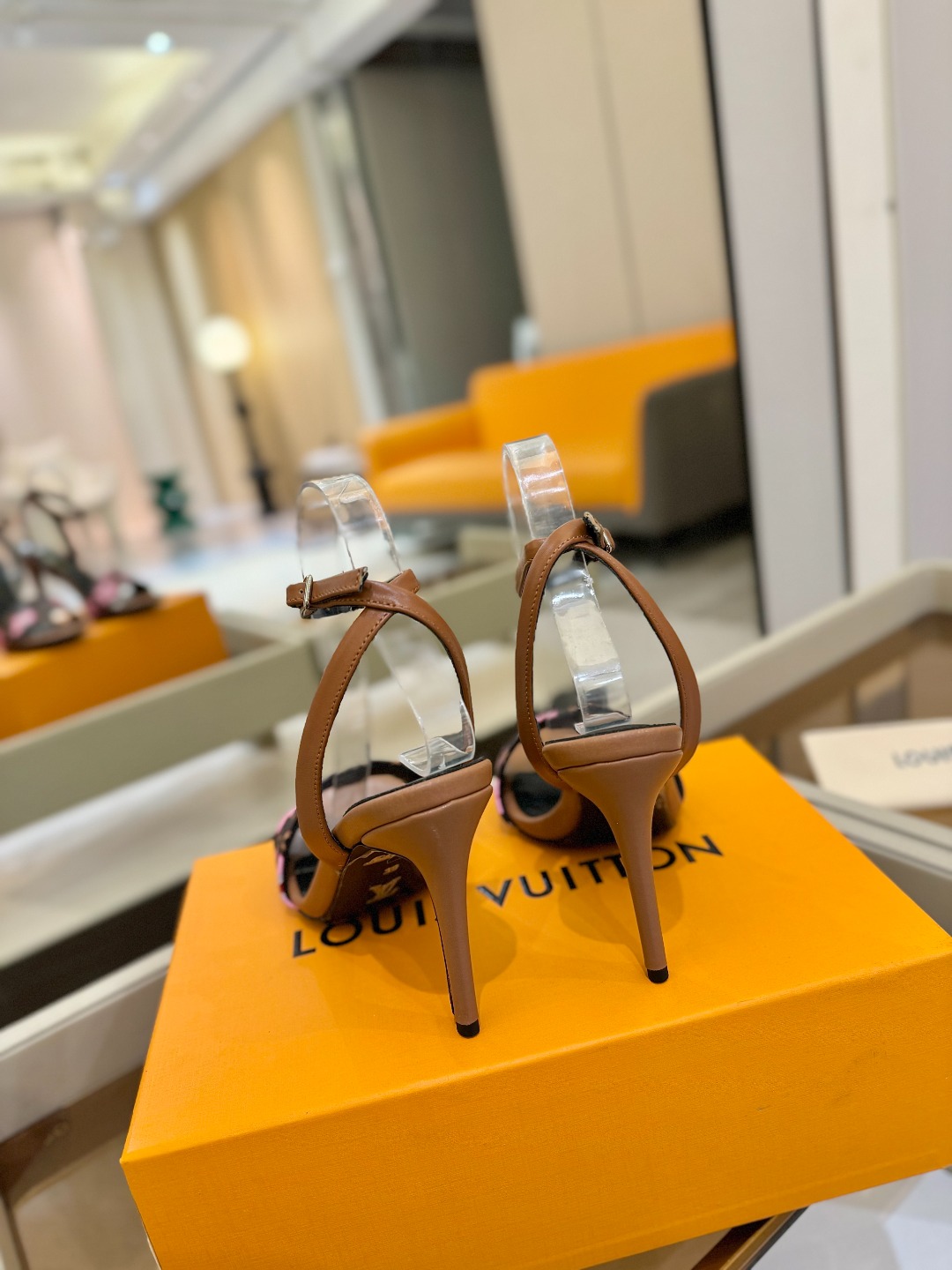 Louis Vuitton brown pink monogram high heel sandals for women