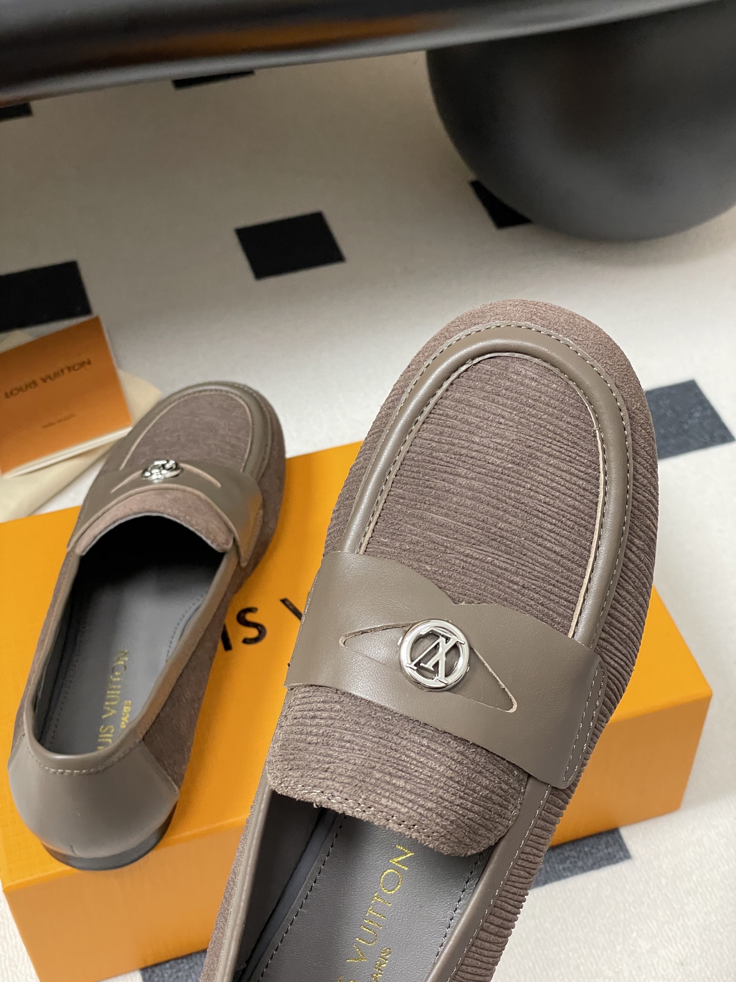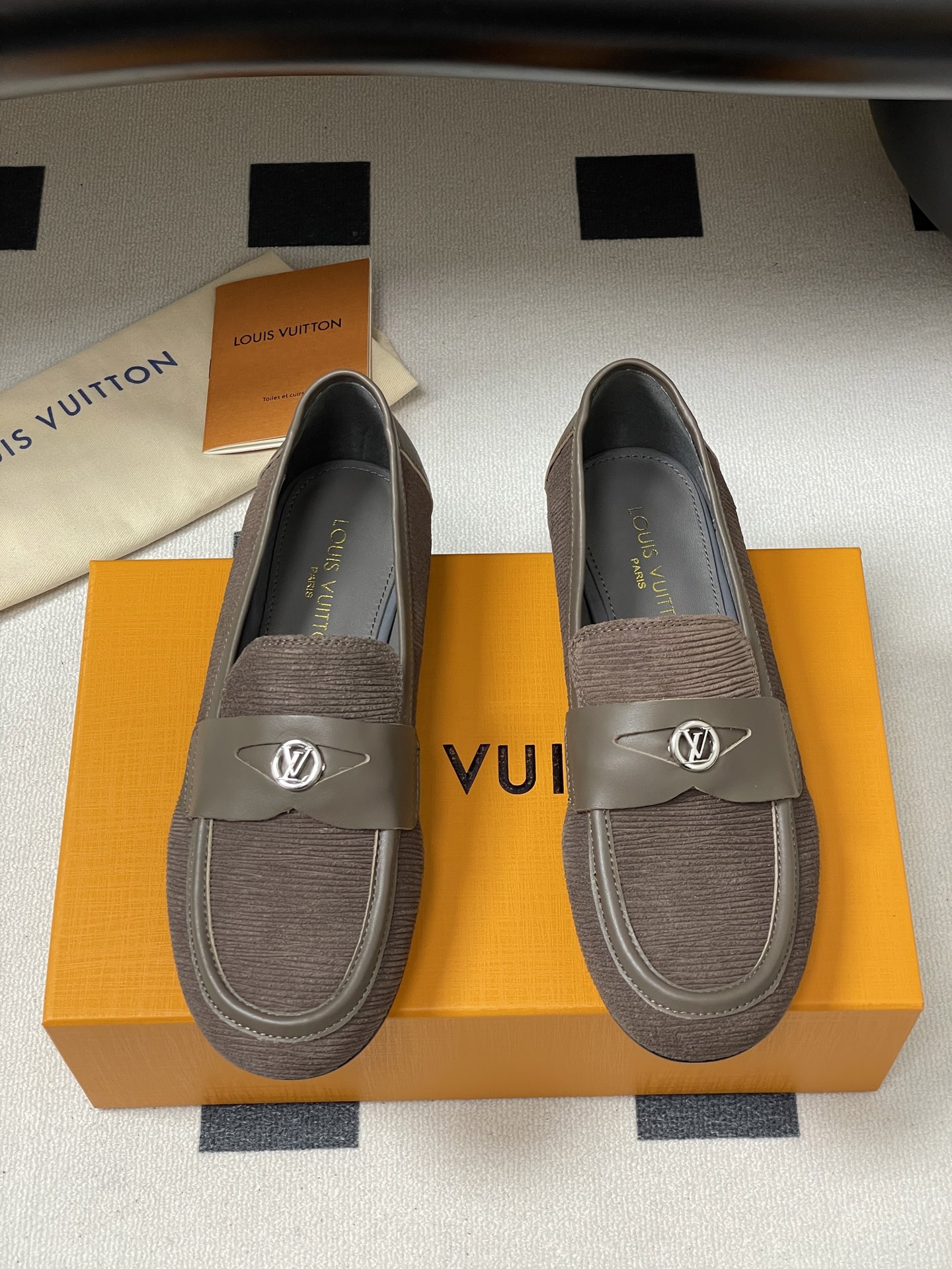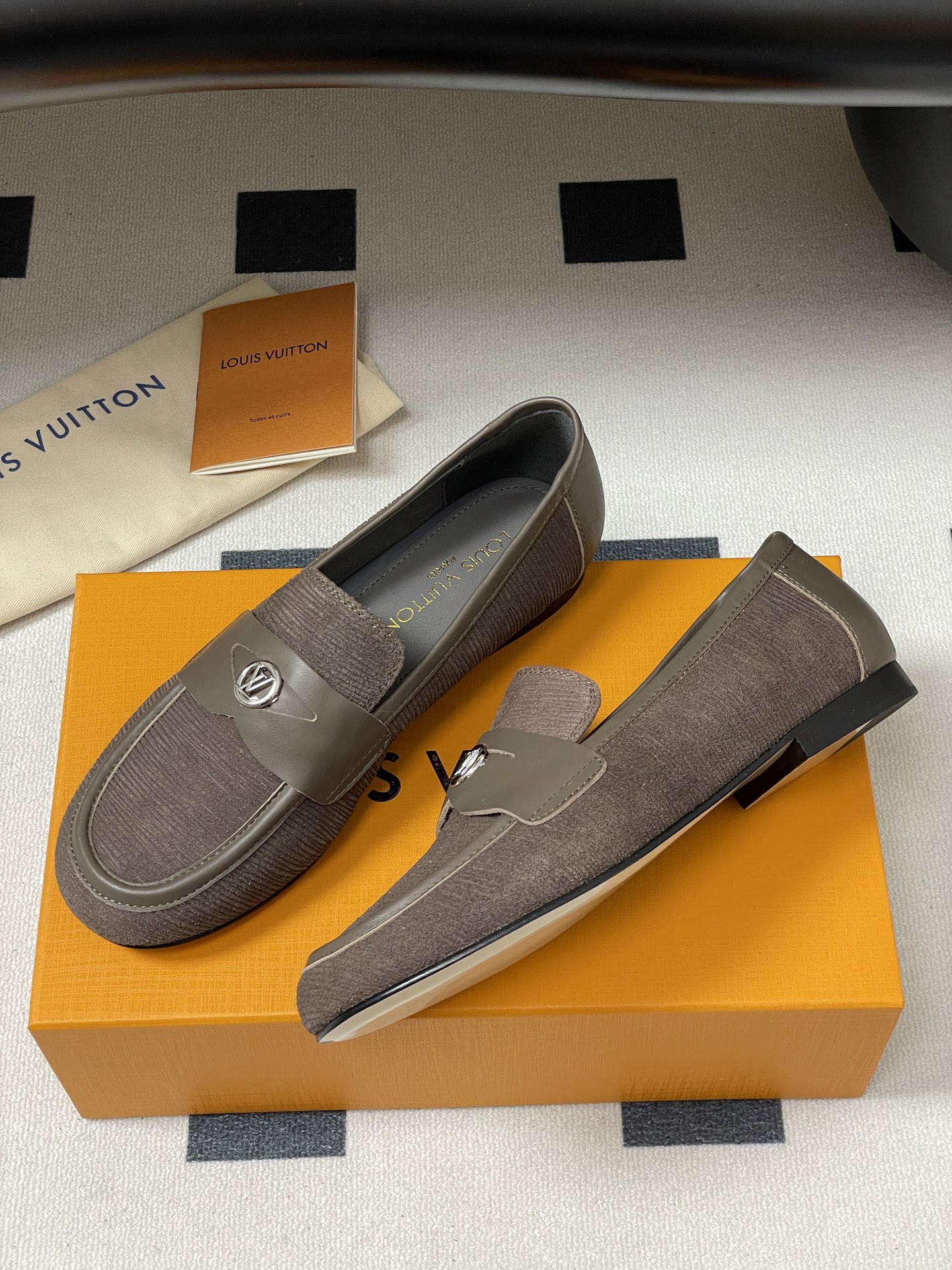 Louis Vuitton Brown Suede Canvas Loafers with Leather Strap – Men’s Shoes