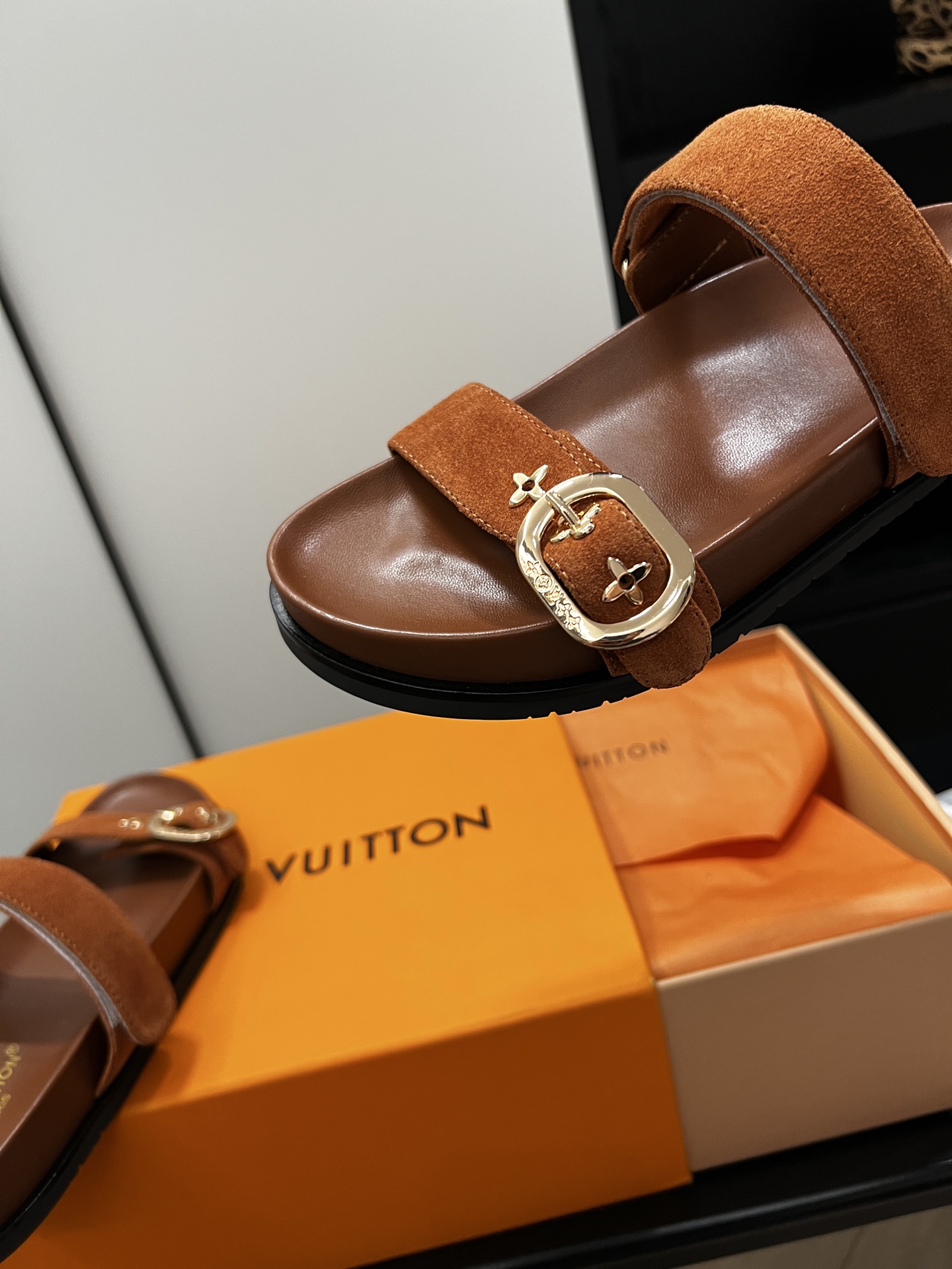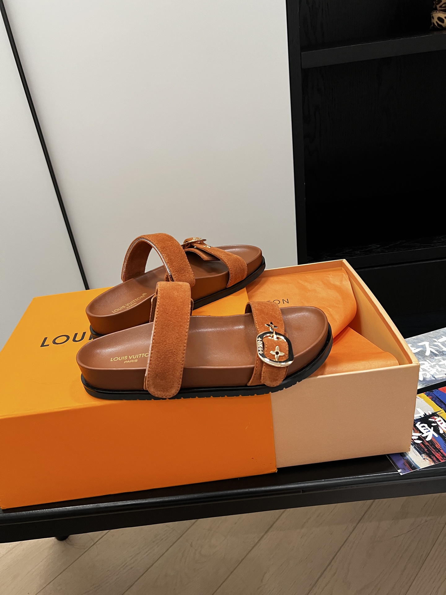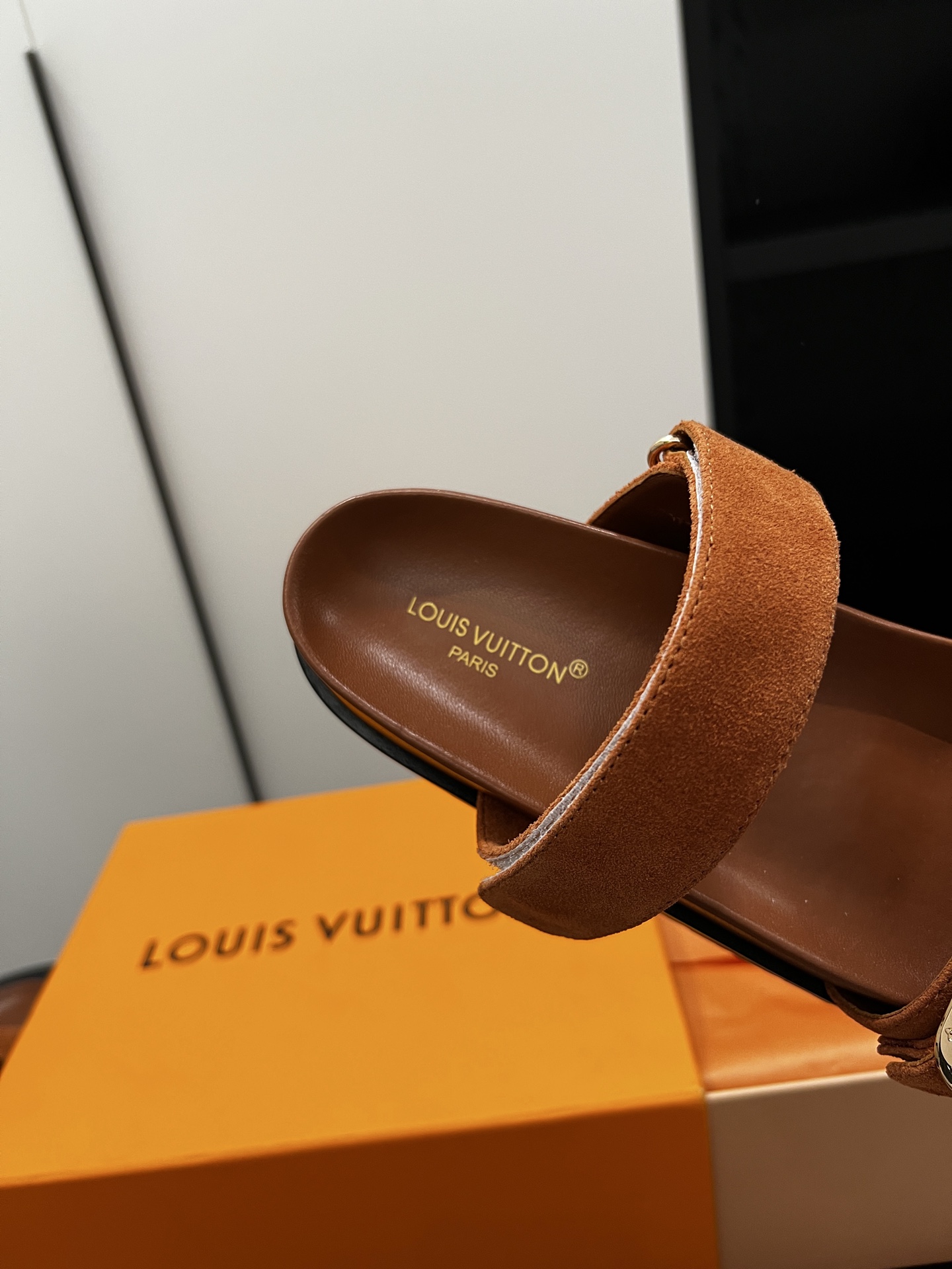 Louis Vuitton Men’s Brown Slide Sandals Damier Pattern Rubber Sole Slip On