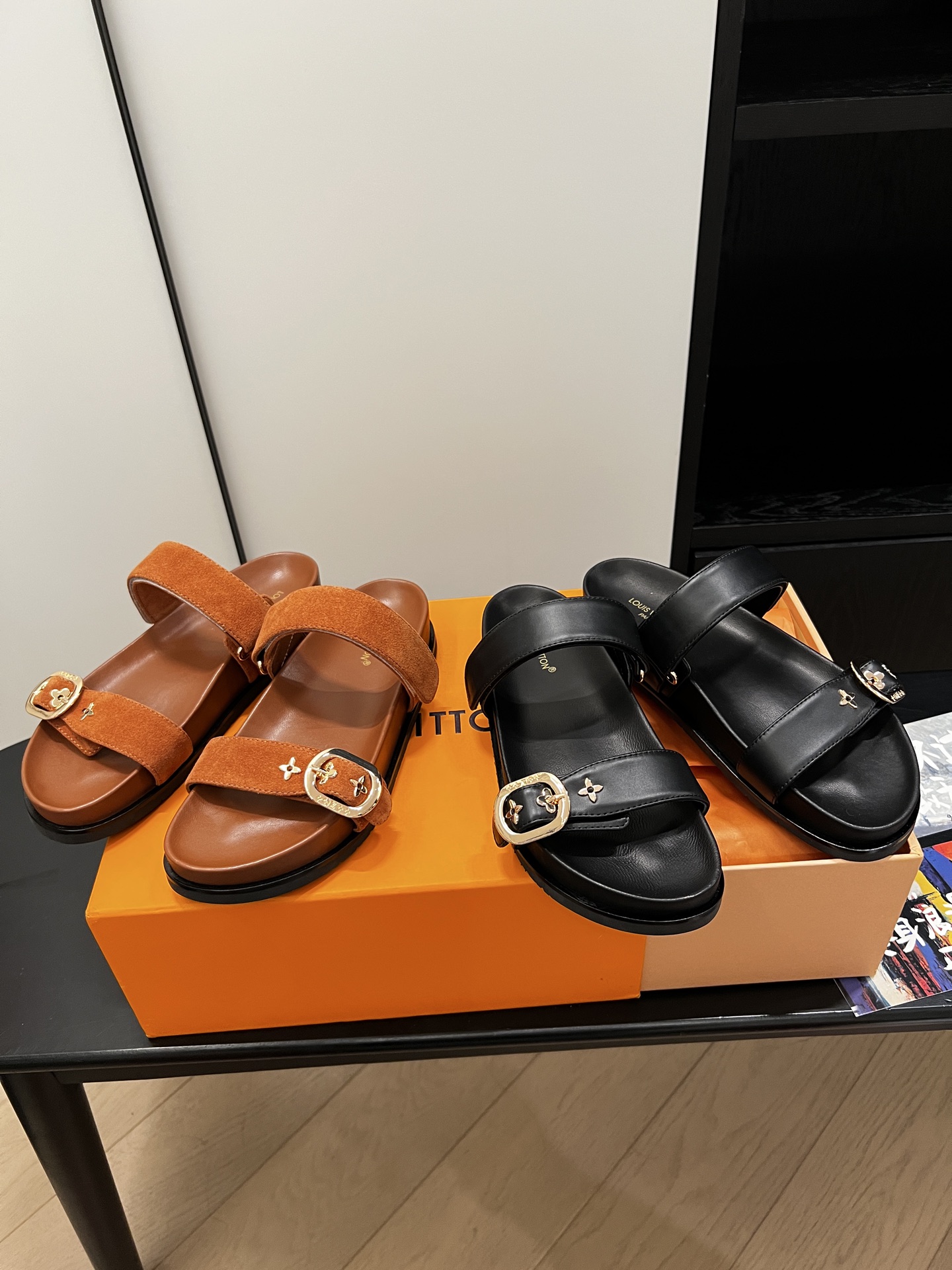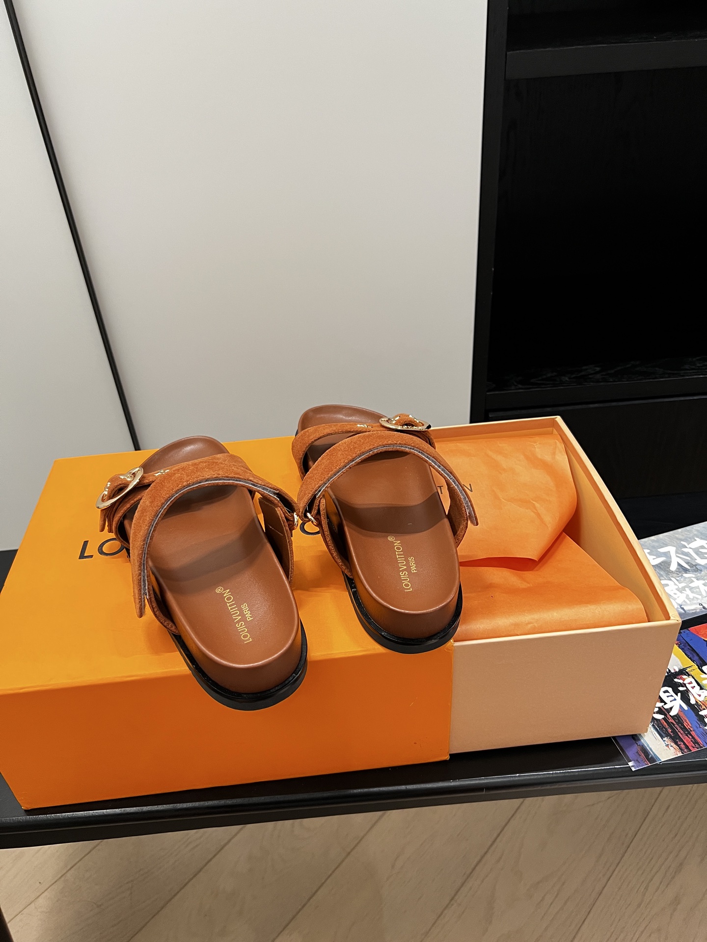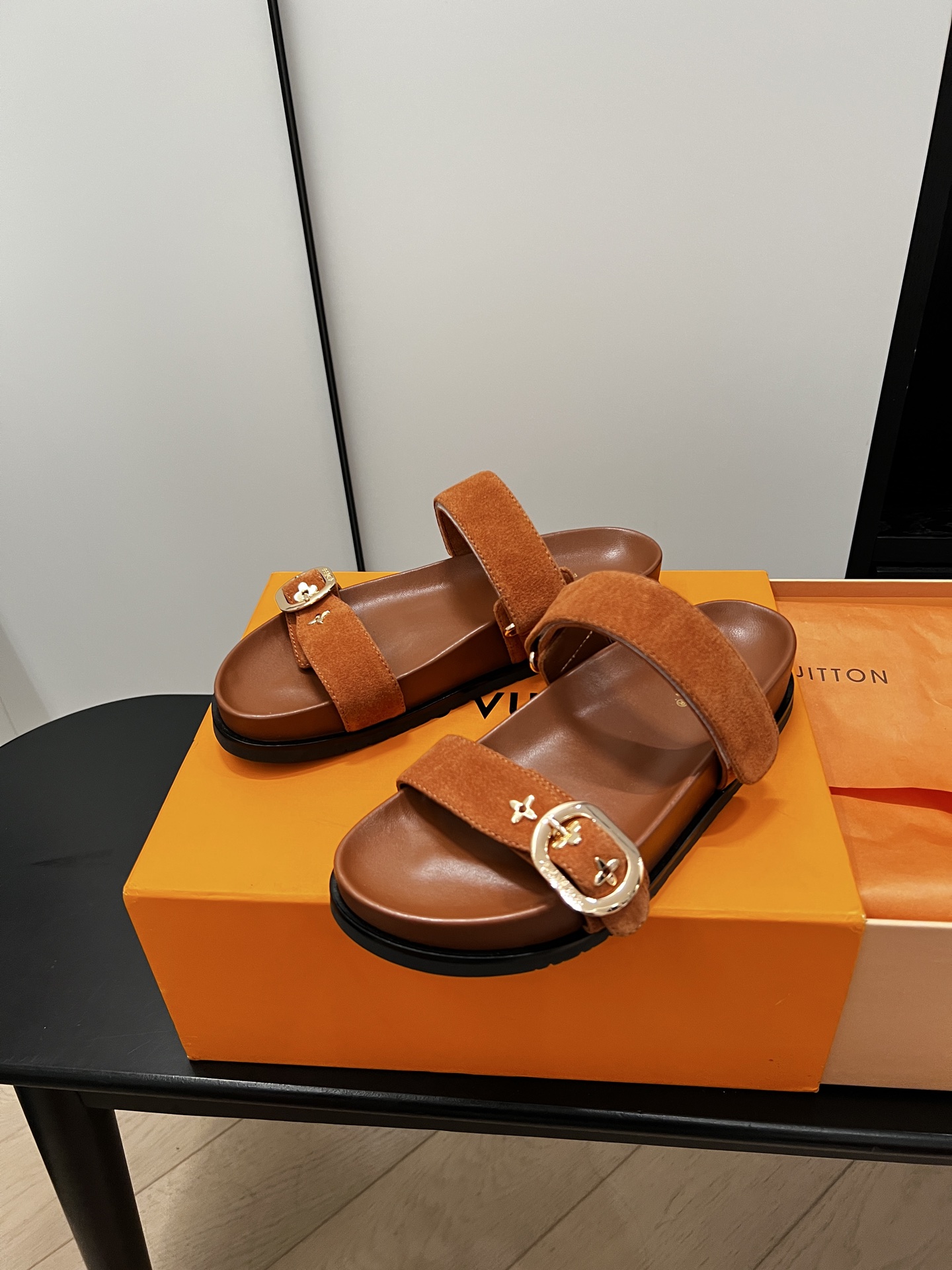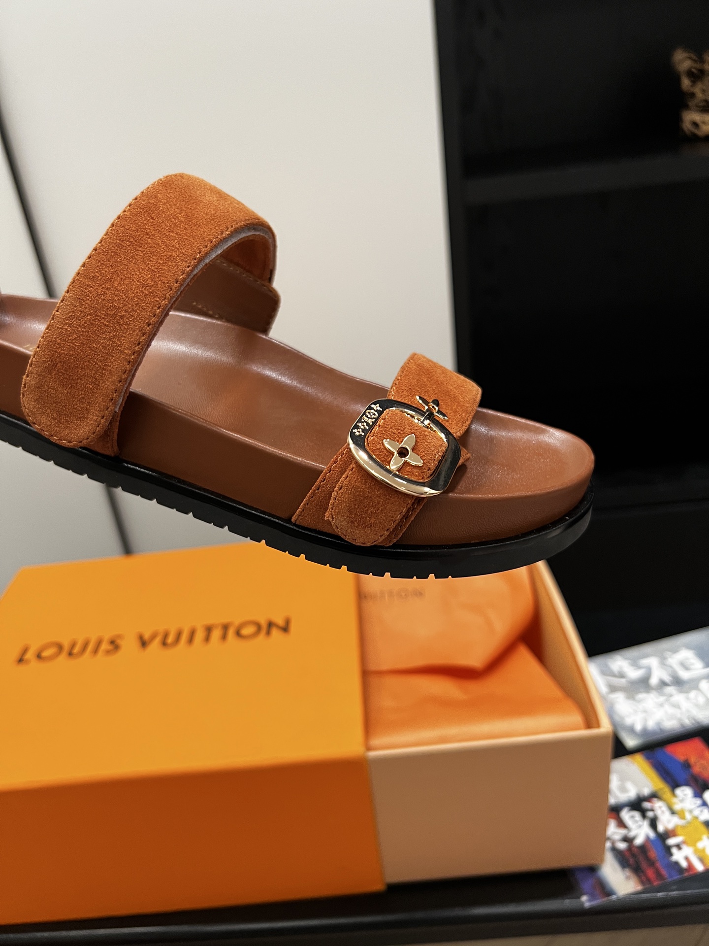 Louis Vuitton Men’s Brown Slide Sandals Damier Pattern Rubber Sole Slip On