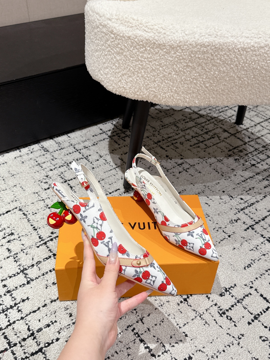 Louis Vuitton Cherry Print Slingback Heels Women’s Designer Pointed Toe Shoes