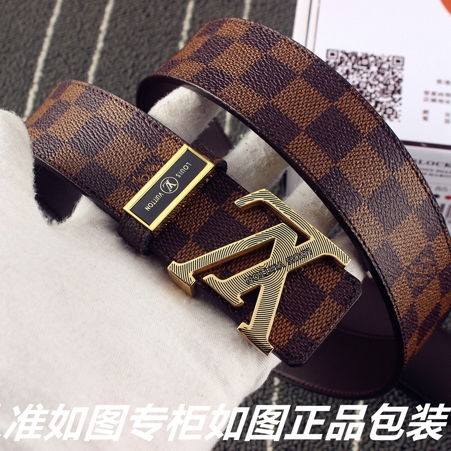Louis Vuitton Damier Ebene Gold Initial LV Buckle Men's Belt