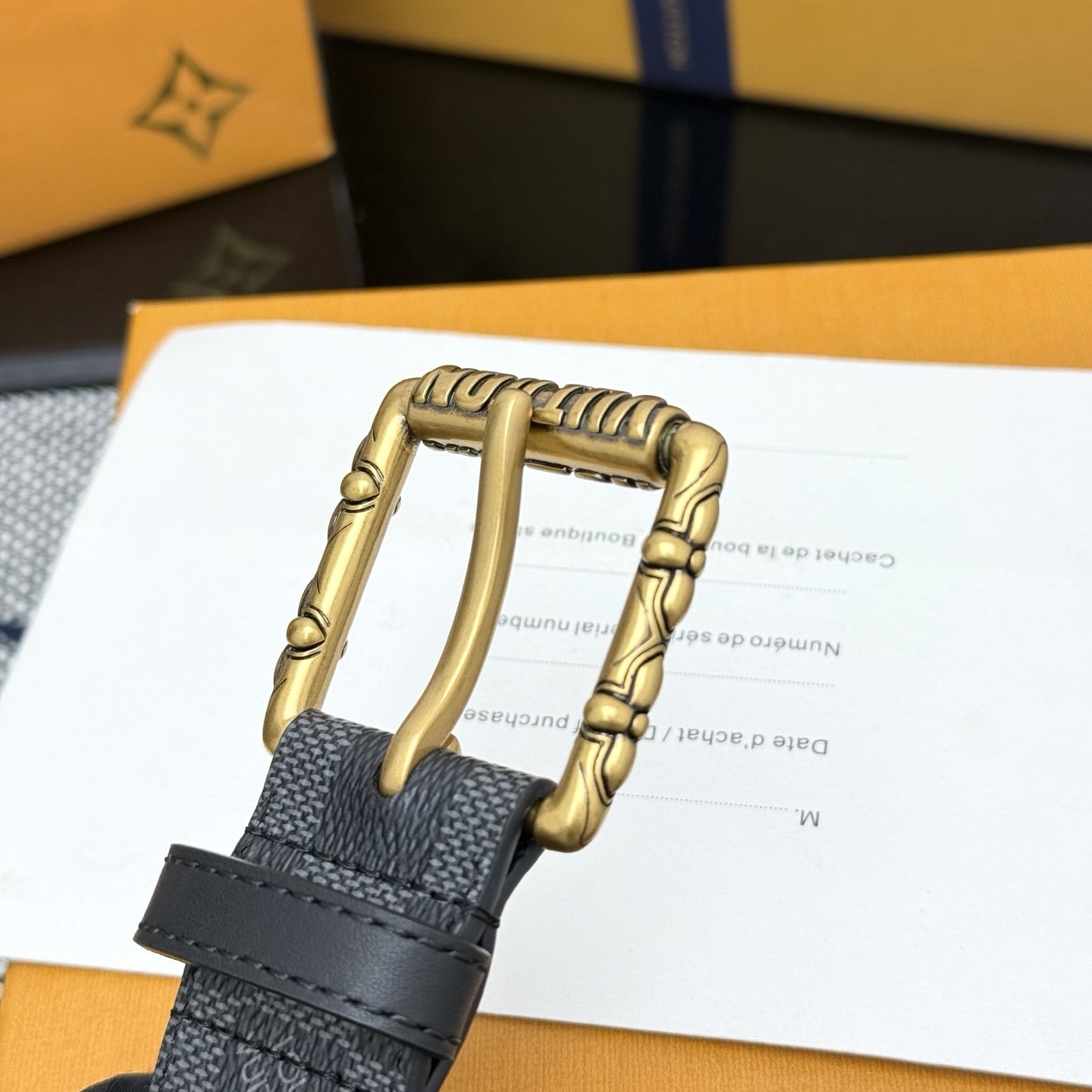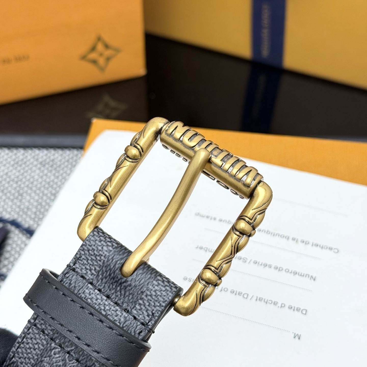 • Unique Hardware: Adorned with a striking, vintage-inspired gold-tone buckle that prominently displays the 'LOUIS VUITTON' signature.