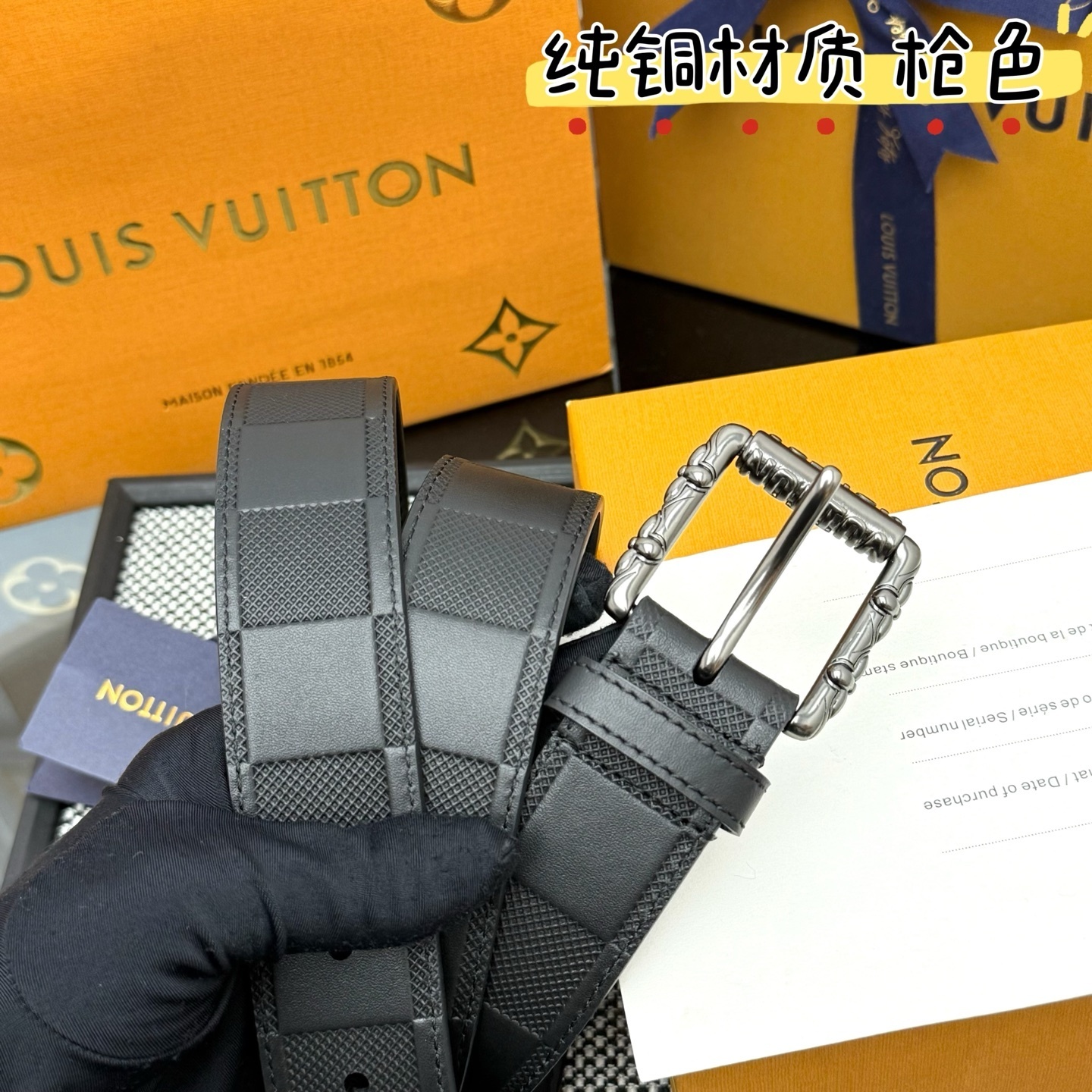 Every purchase includes the full boutique experience. Your belt comes carefully packaged in the signature orange Louis Vuitton box, complete with a gift bag, branded ribbons, and authenticity documentation, making it an ideal gift for yourself or a special someone.