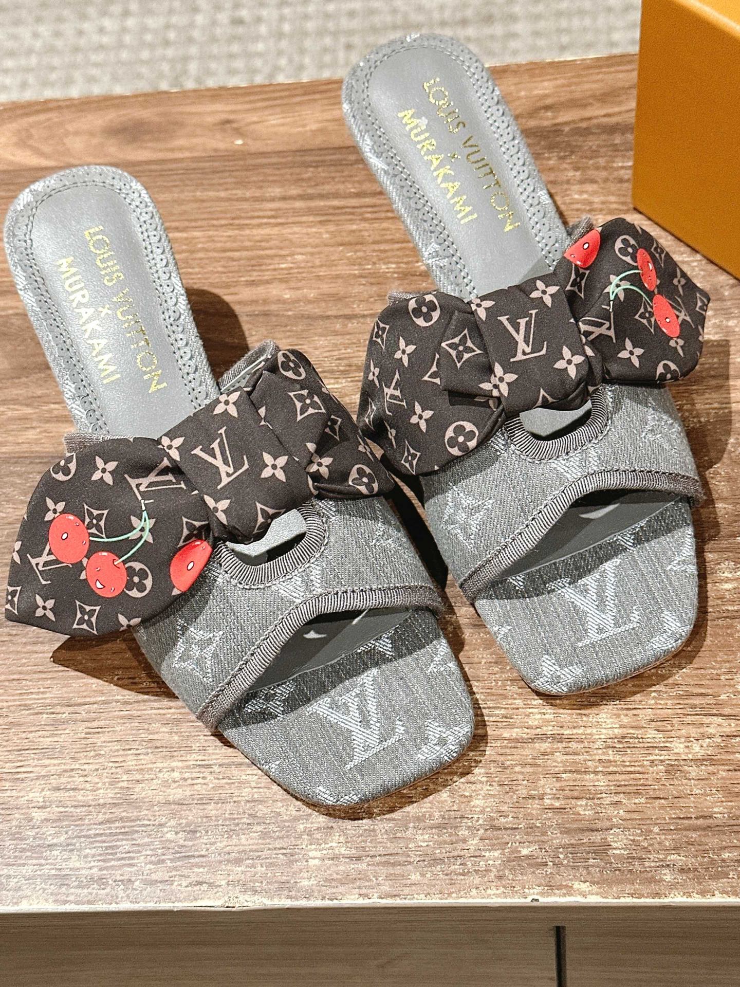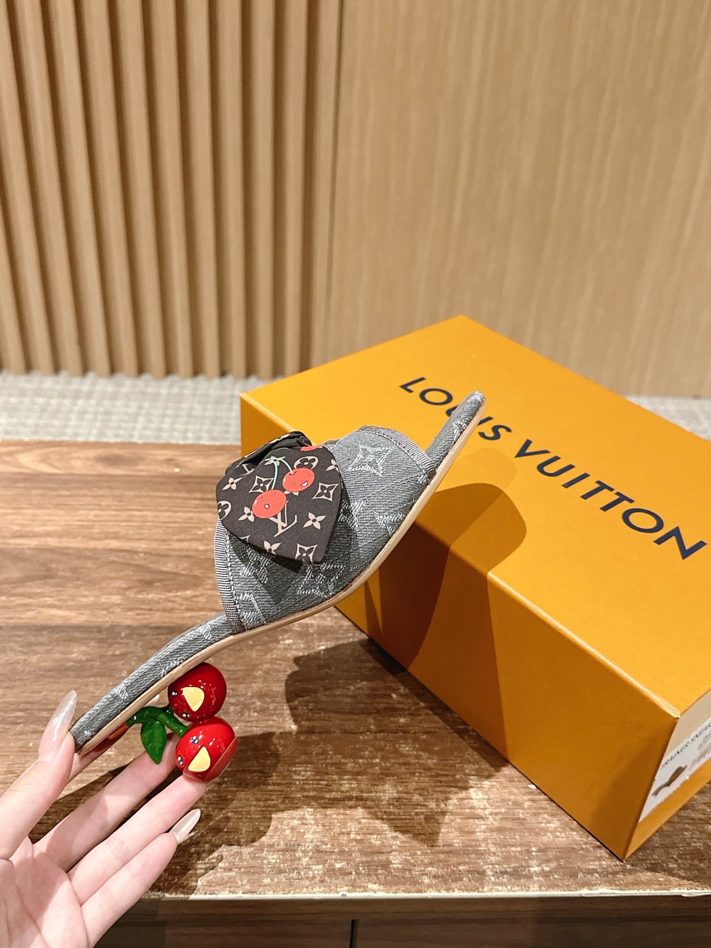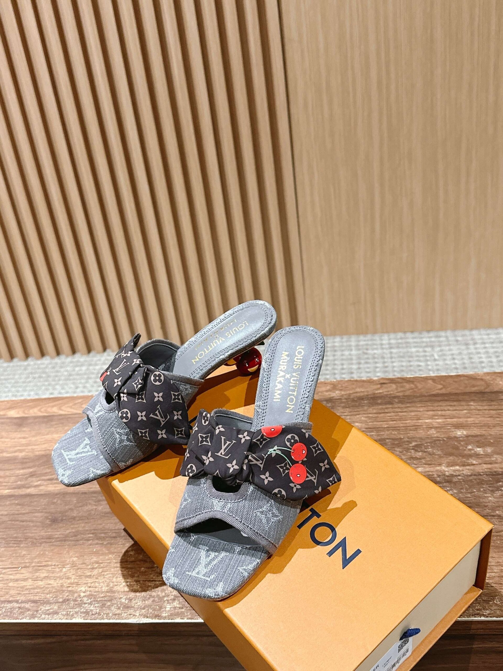 Louis Vuitton Black Monogram Cherry Bow Heel Sandals for Women