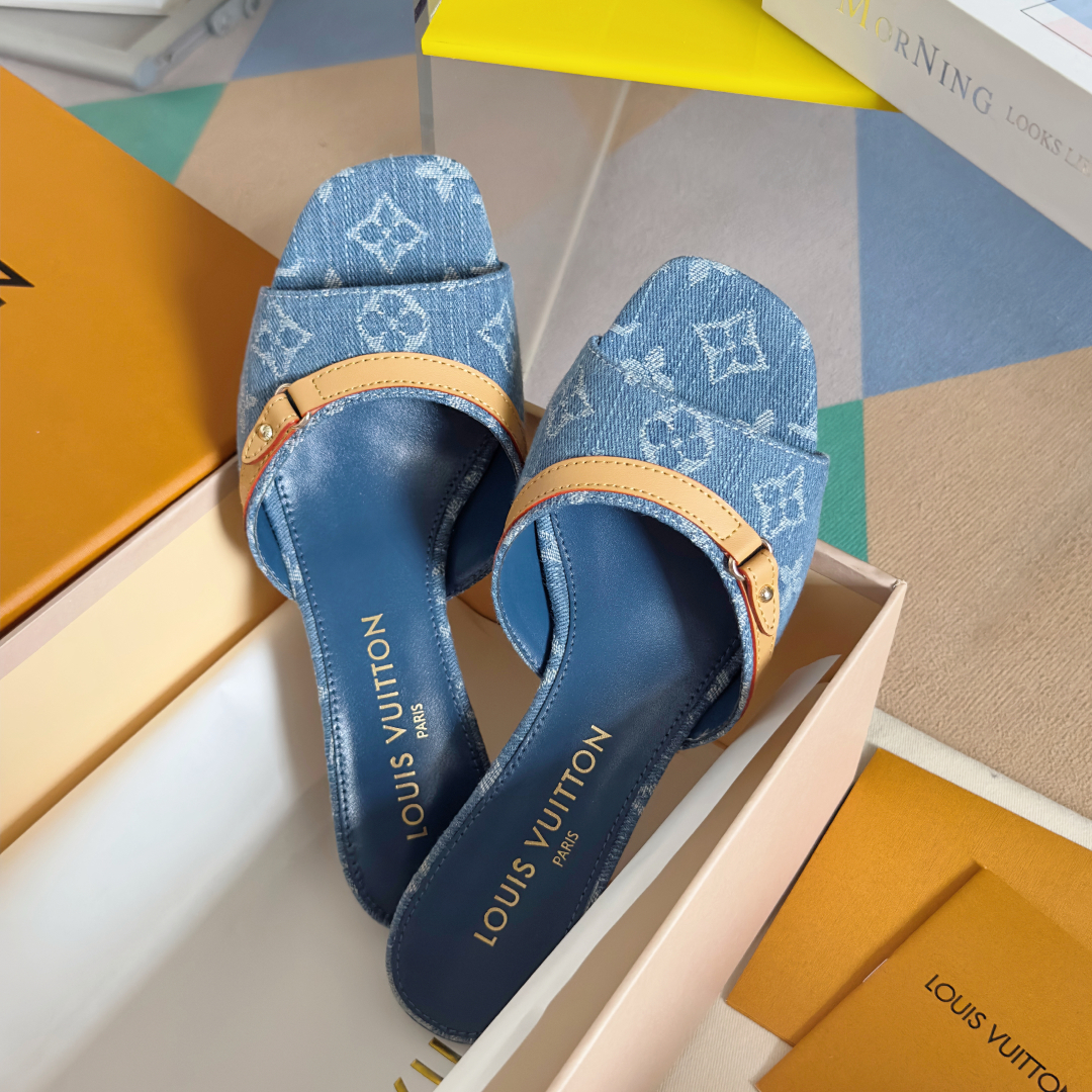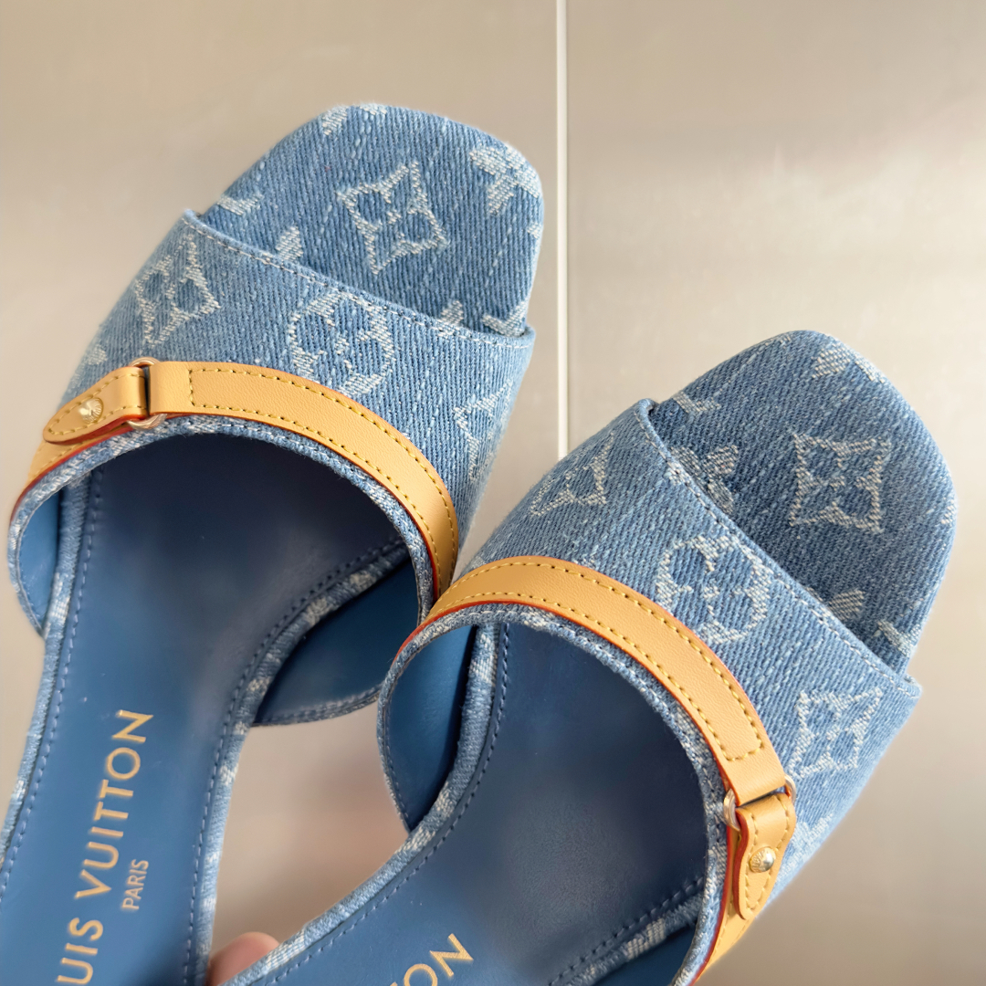 Material: Monogram denim fabric and leather insole