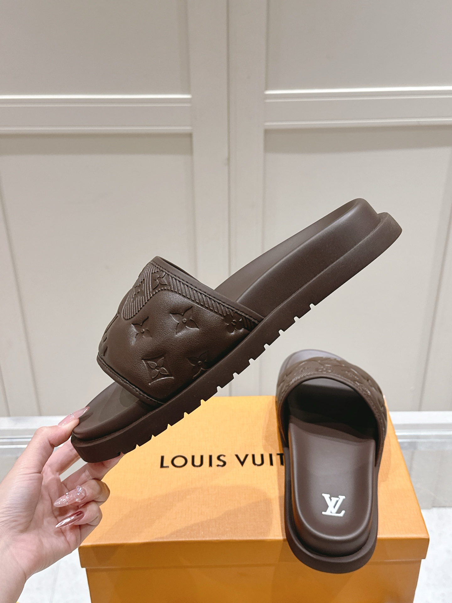 Details: Subtle embossed LV pattern for refined style