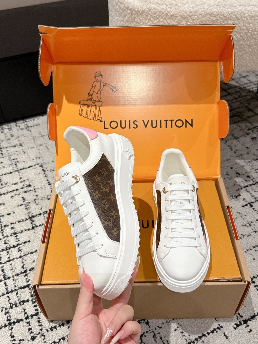 Louis Vuitton Men’s White Leather Trainers – Monogram Perforated Low-Top Sneakers