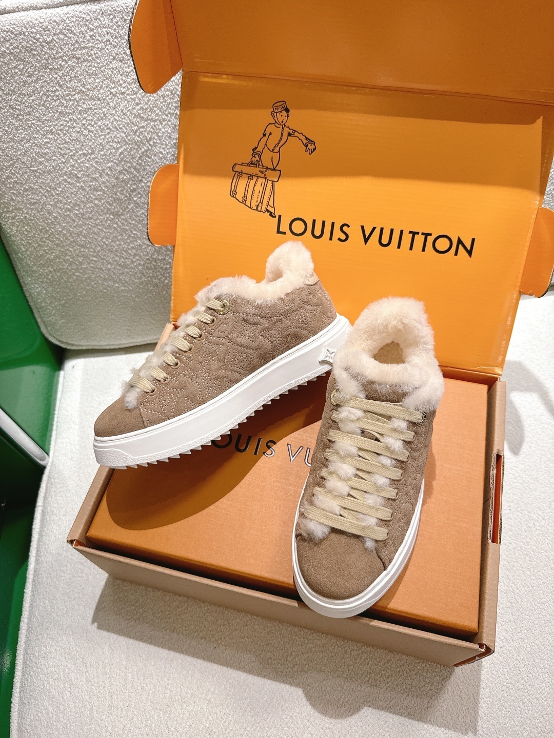 Louis Vuitton Men’s White and Brown Leather Sneakers Monogram Pattern Lace Up Rubber Sole