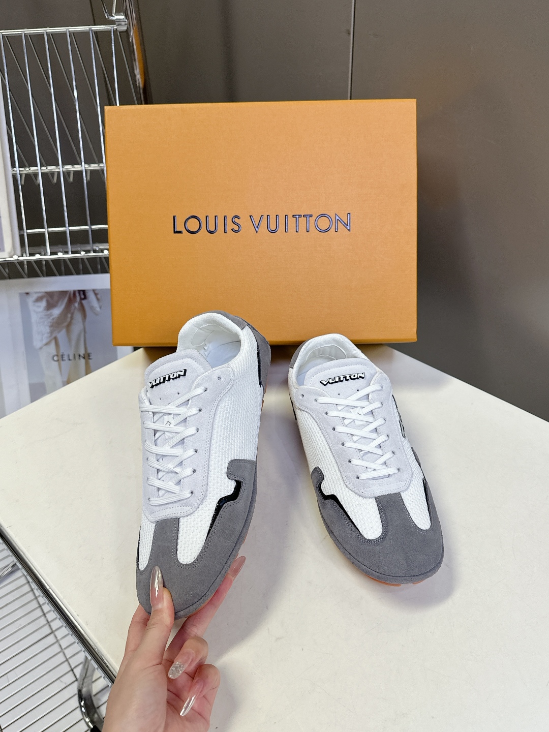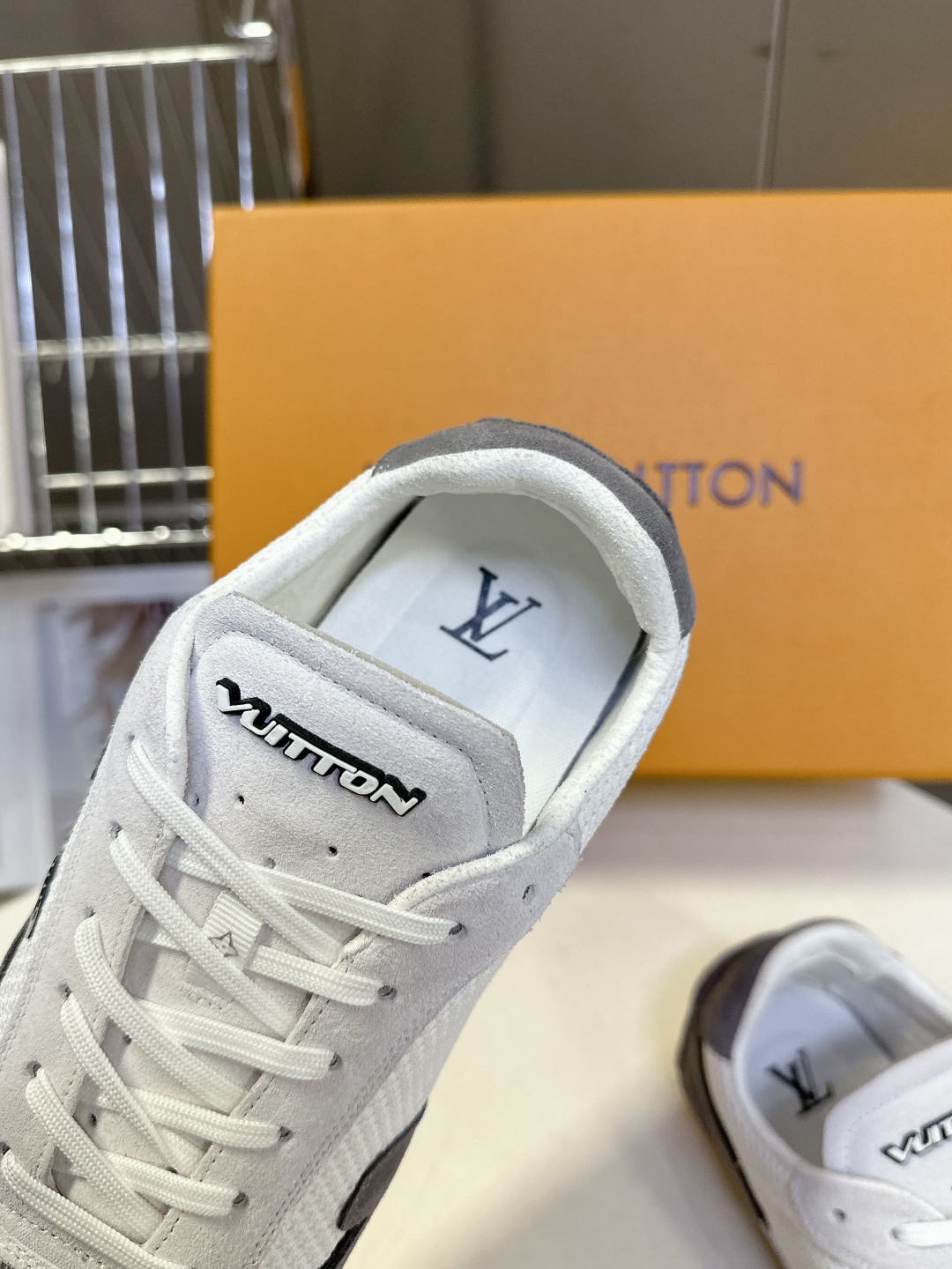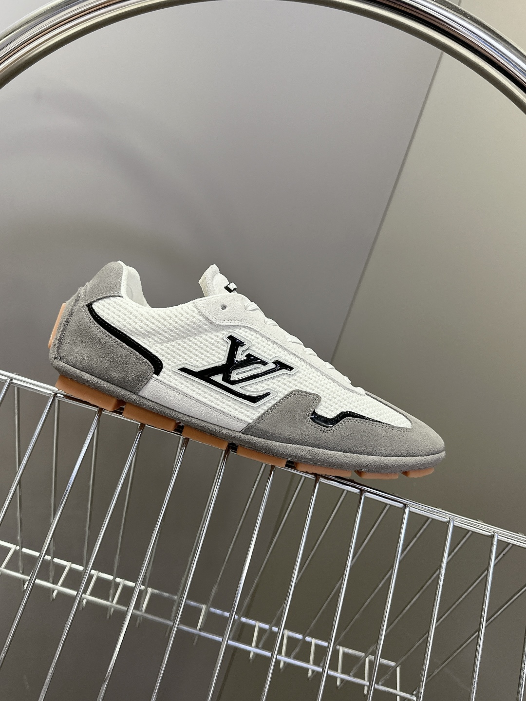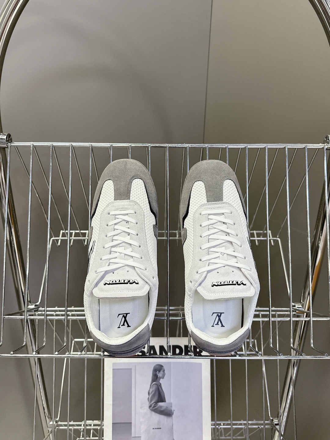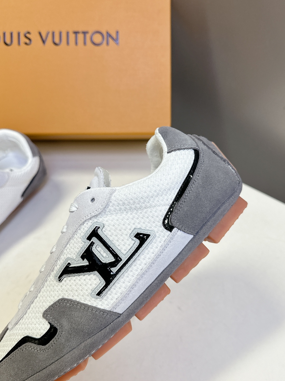 Louis Vuitton Men’s White and Brown Leather Sneakers Monogram Pattern Lace Up Rubber Sole