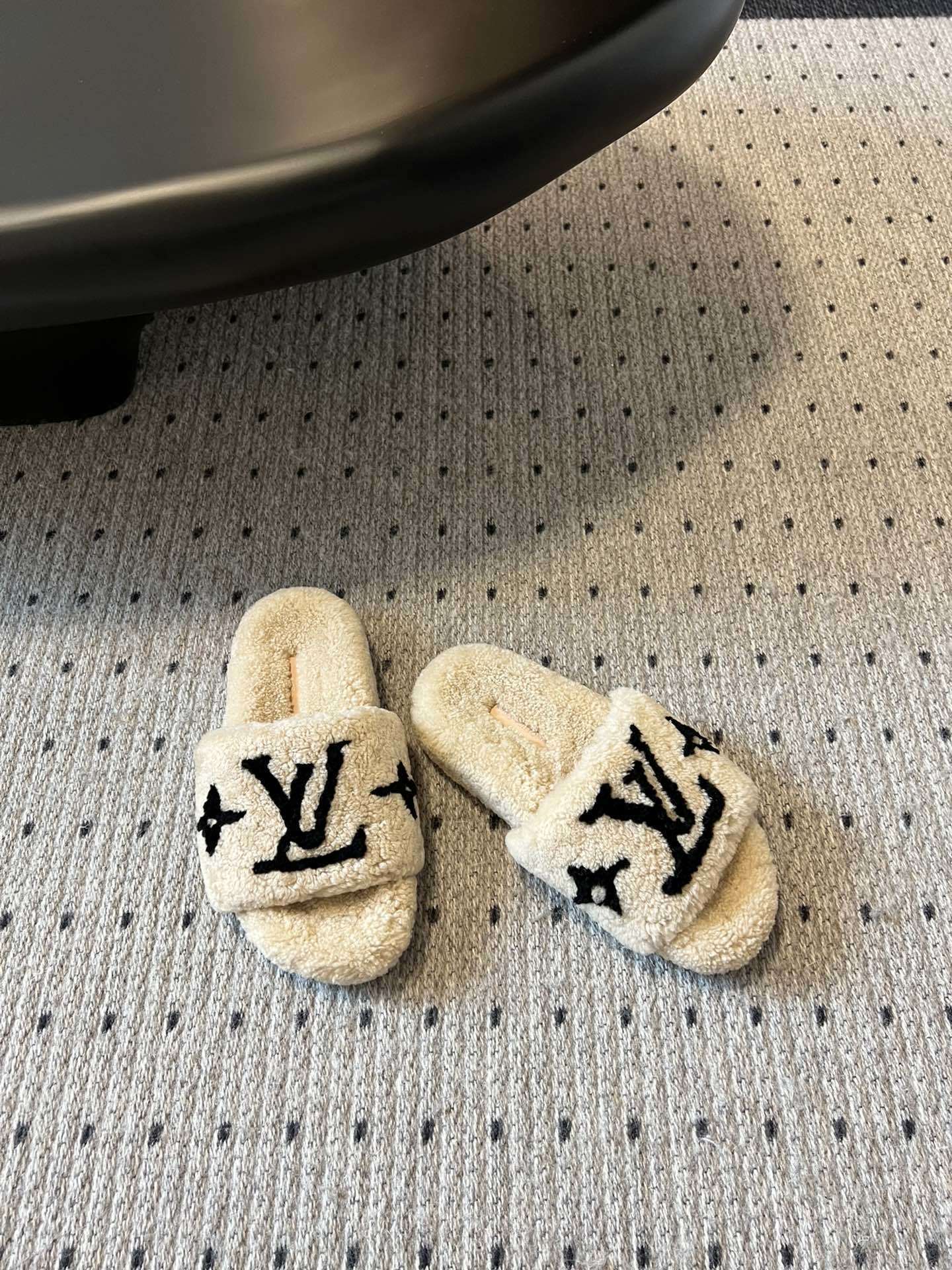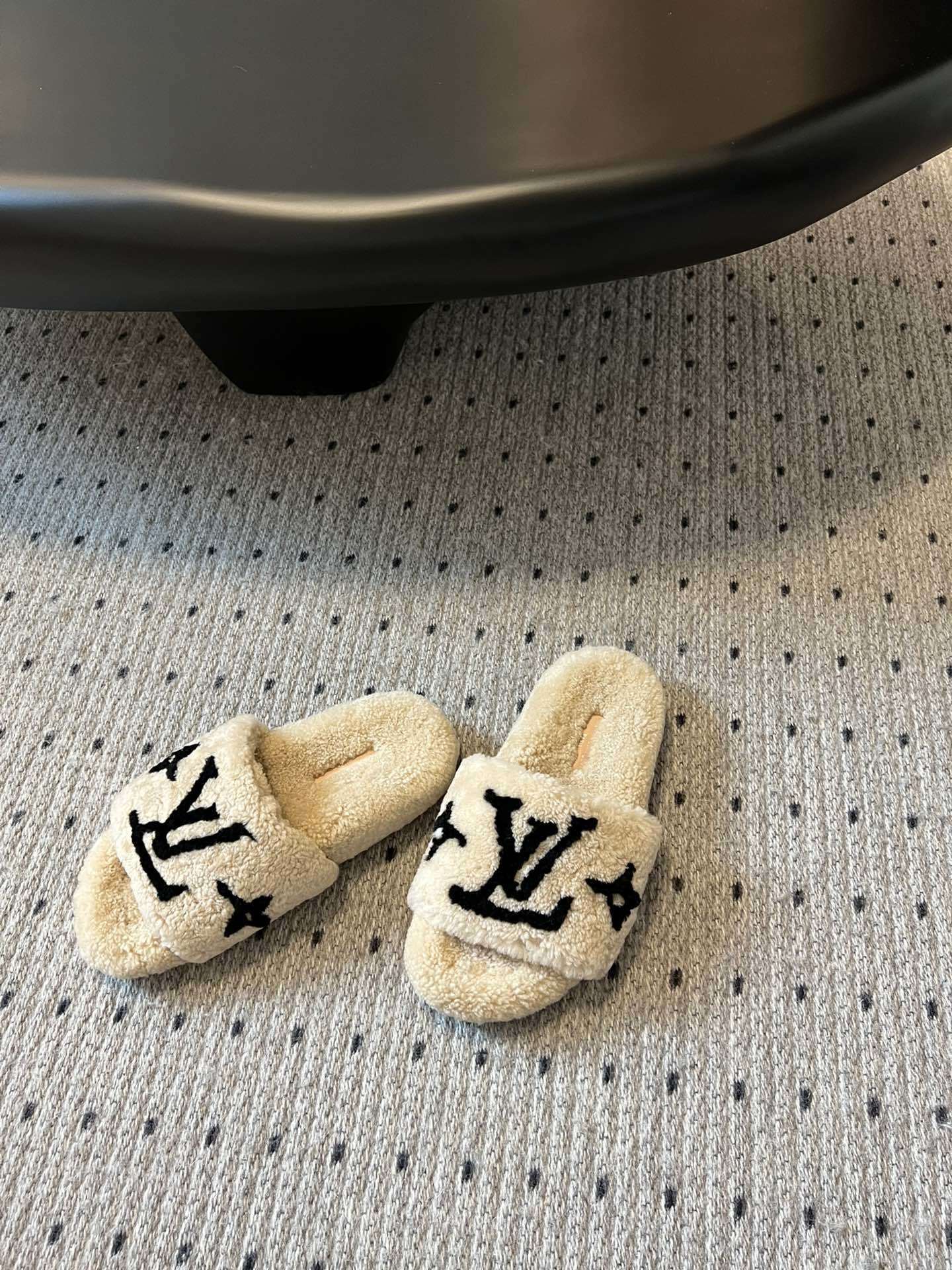 Louis Vuitton Luxury Plush Shearling Slippers - Off-White/Black