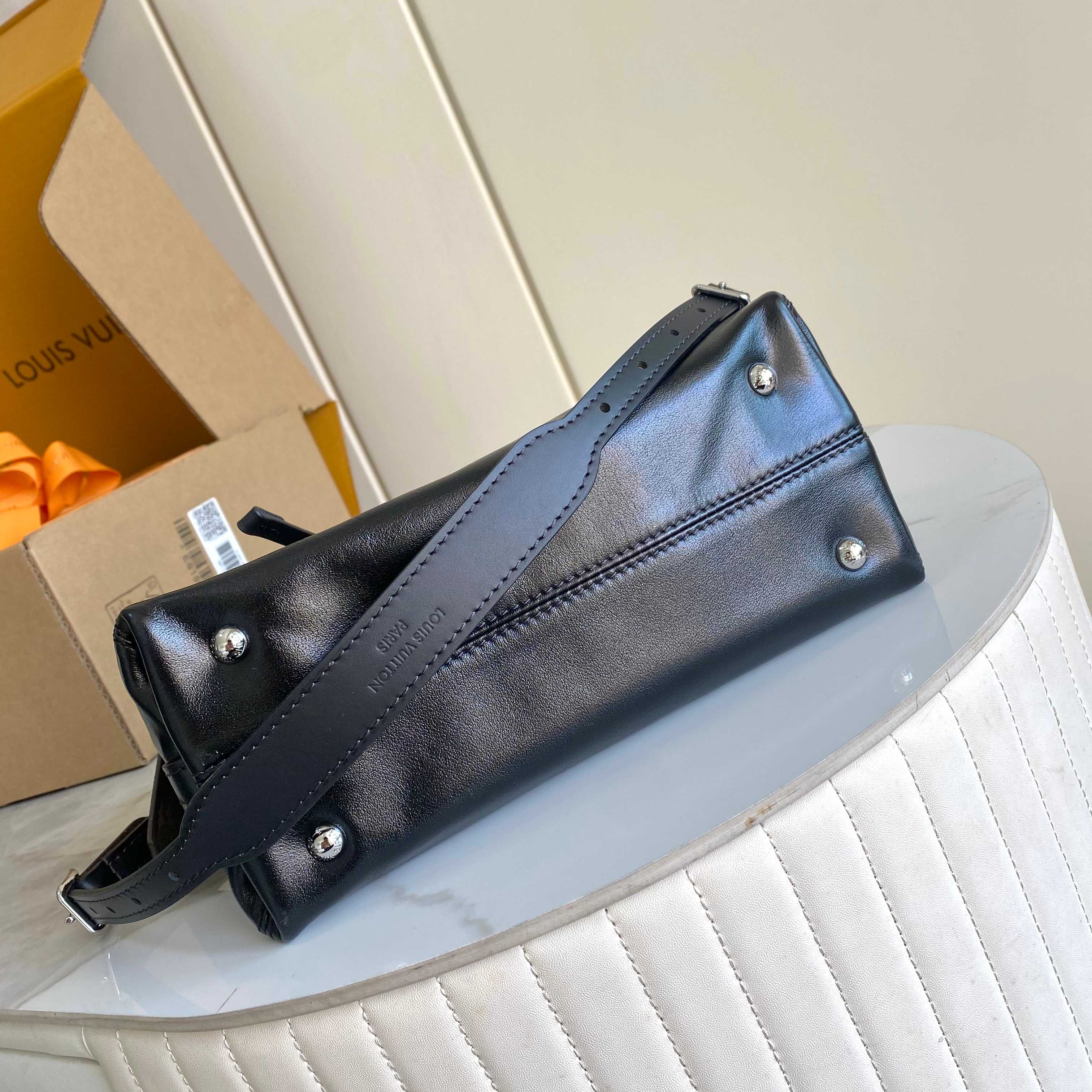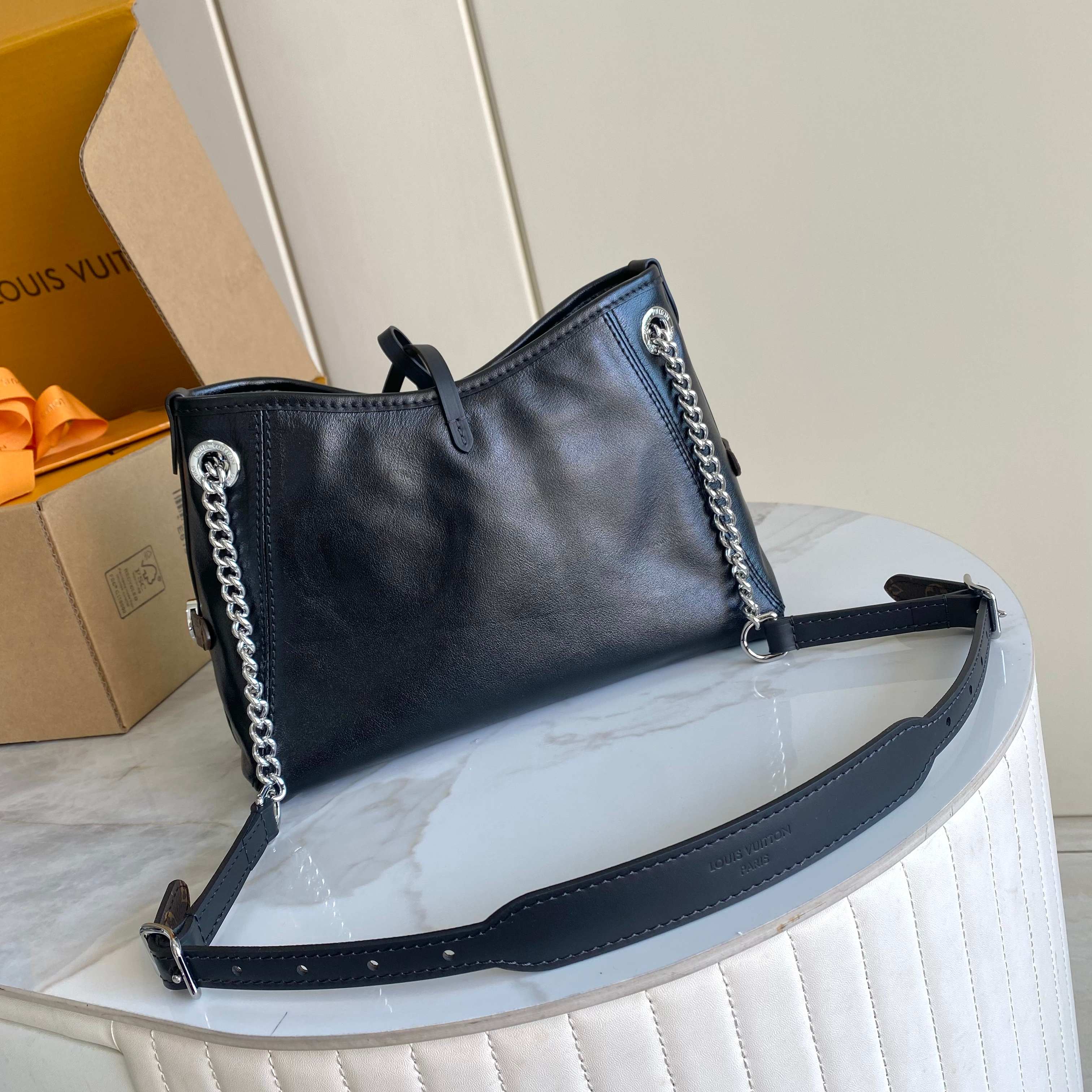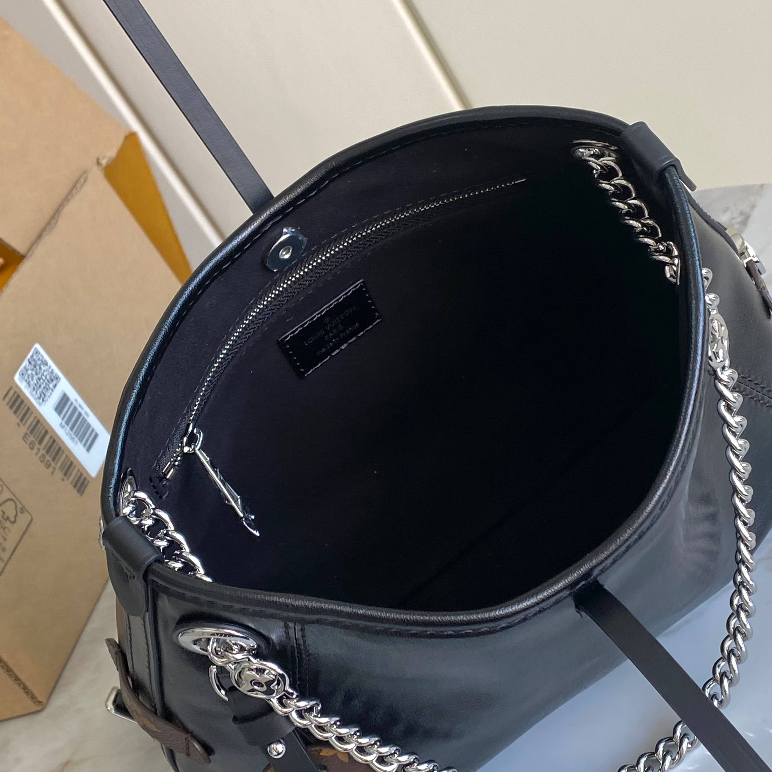 Louis Vuitton LV Black Tote Bag Slidable Metal Chain 26x17cm