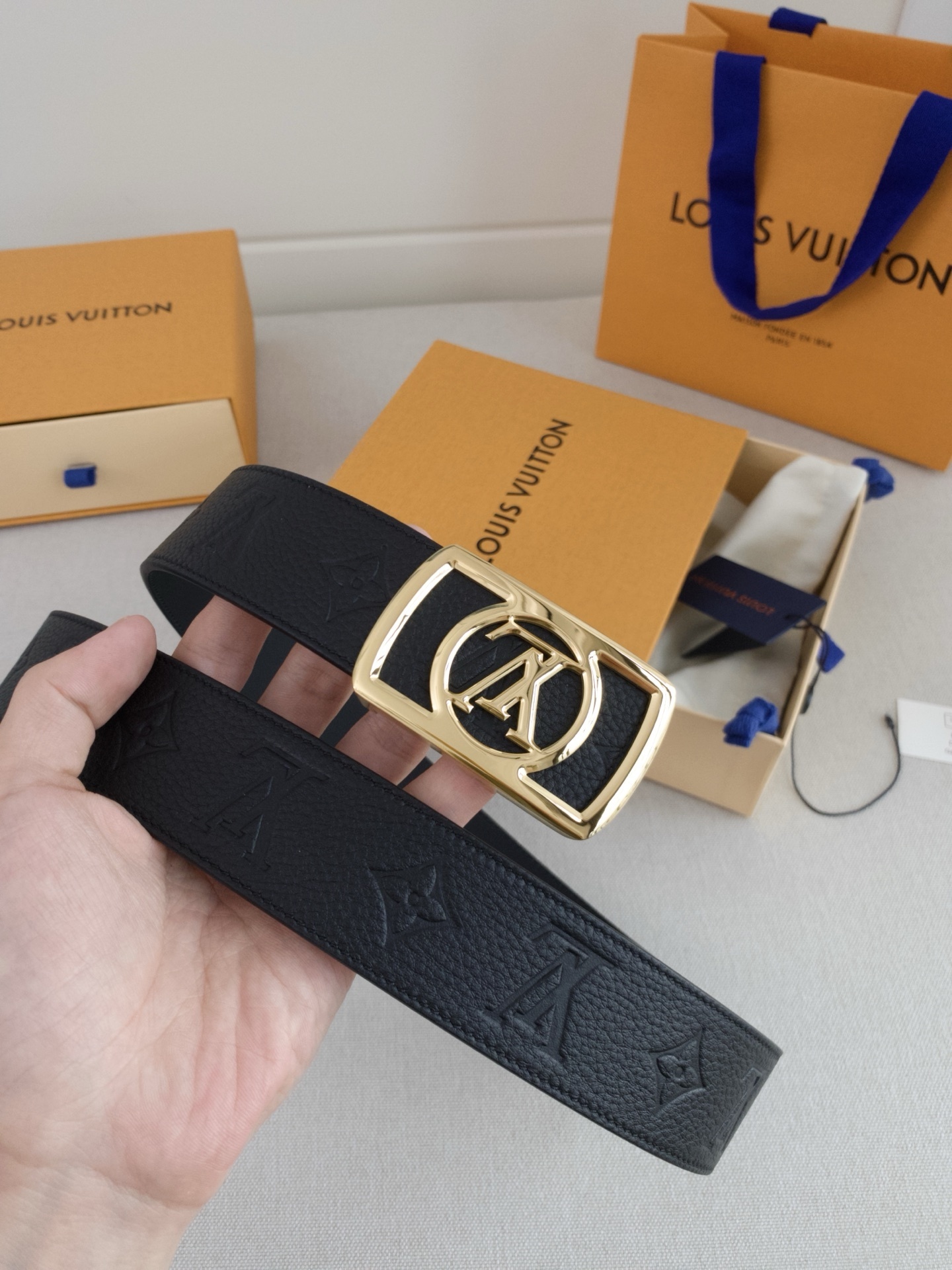 This belt arrives in its signature high-end packaging, including the iconic orange Louis Vuitton box, protective dust bag, and matching gift bag, making it a perfect gift for yourself or a loved one. Whether paired with formal trousers or casual denim, this belt ensures a polished and prestigious look every time.