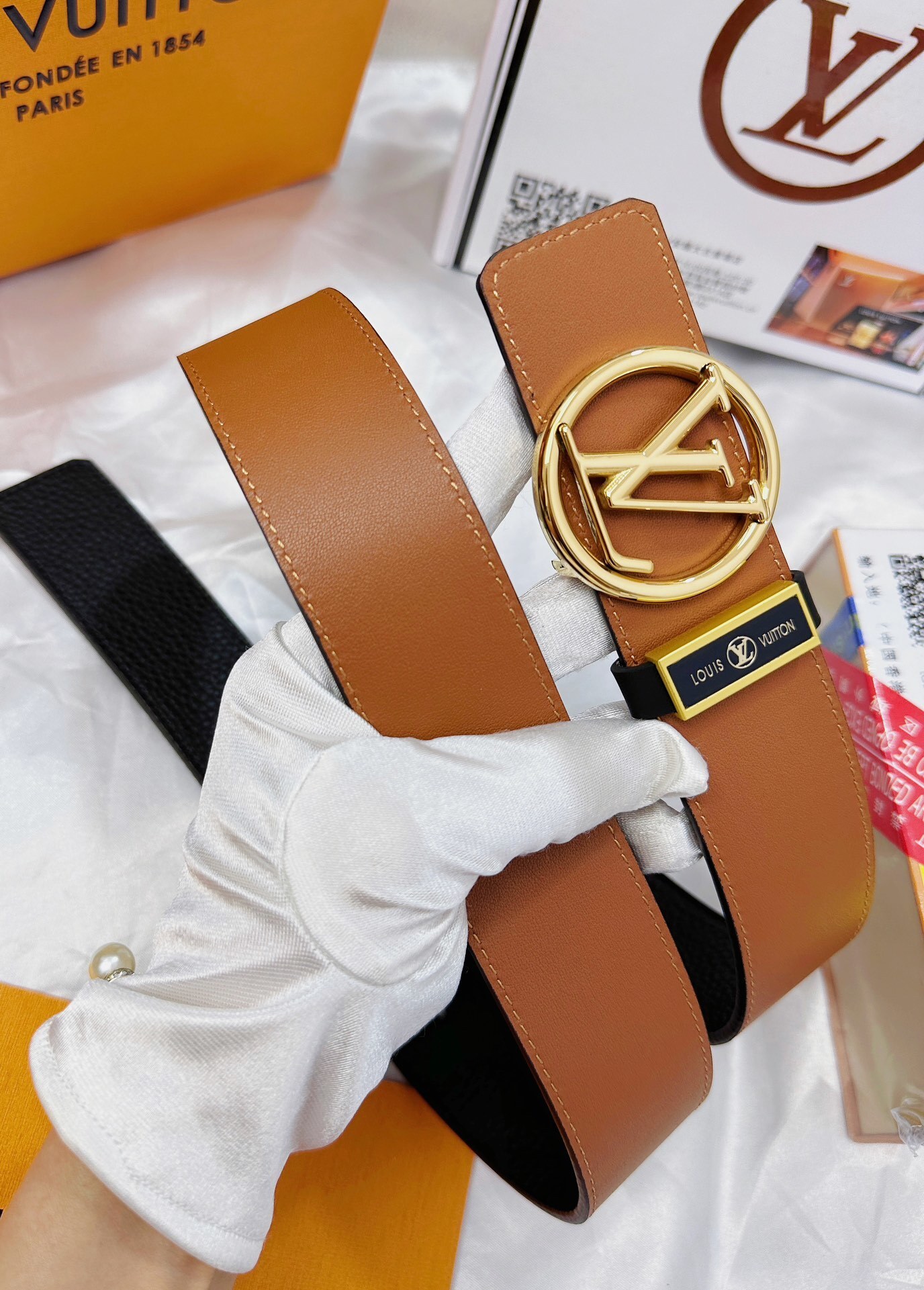 Elegant GG diamond logo buckle belt size 80