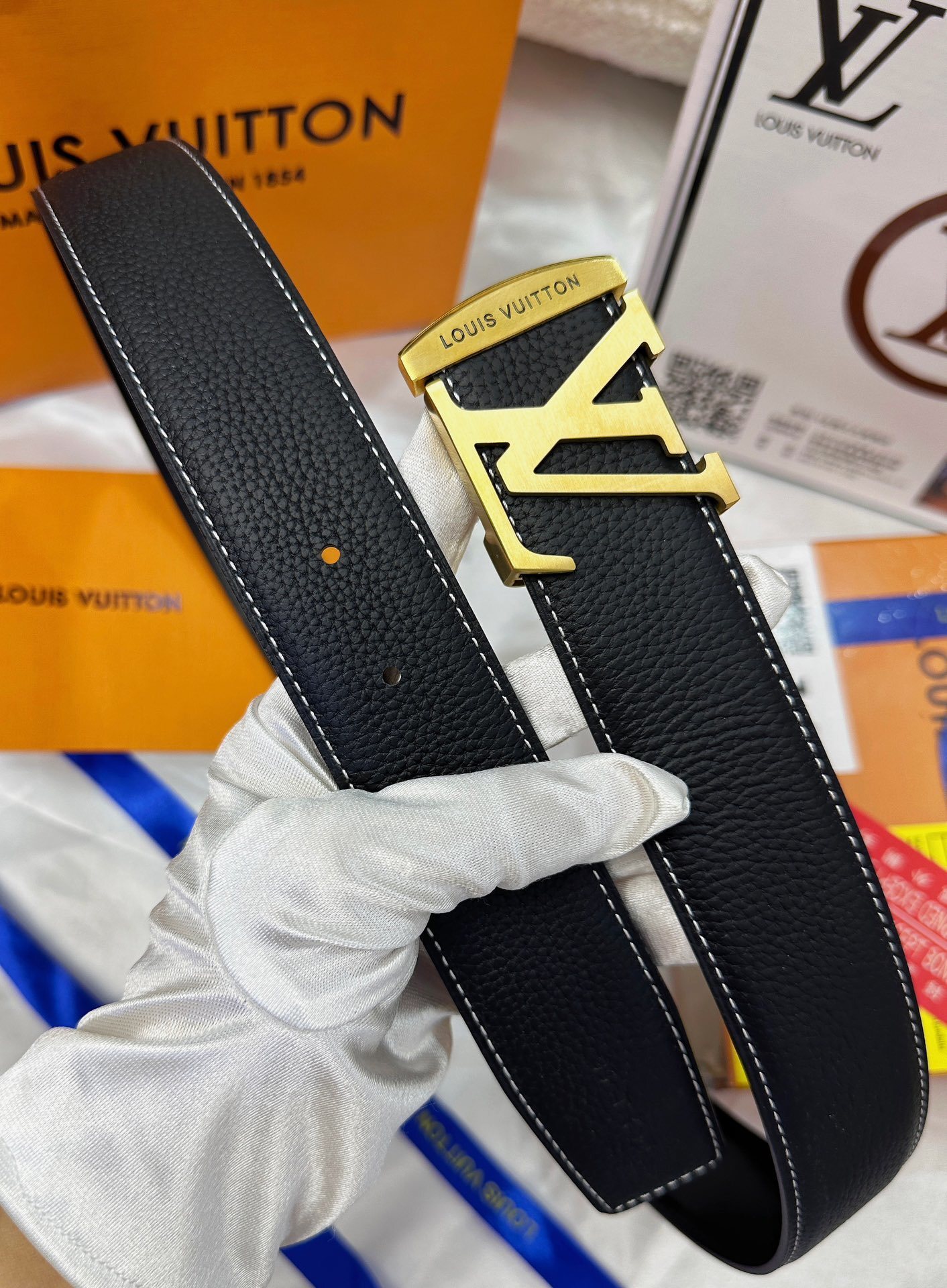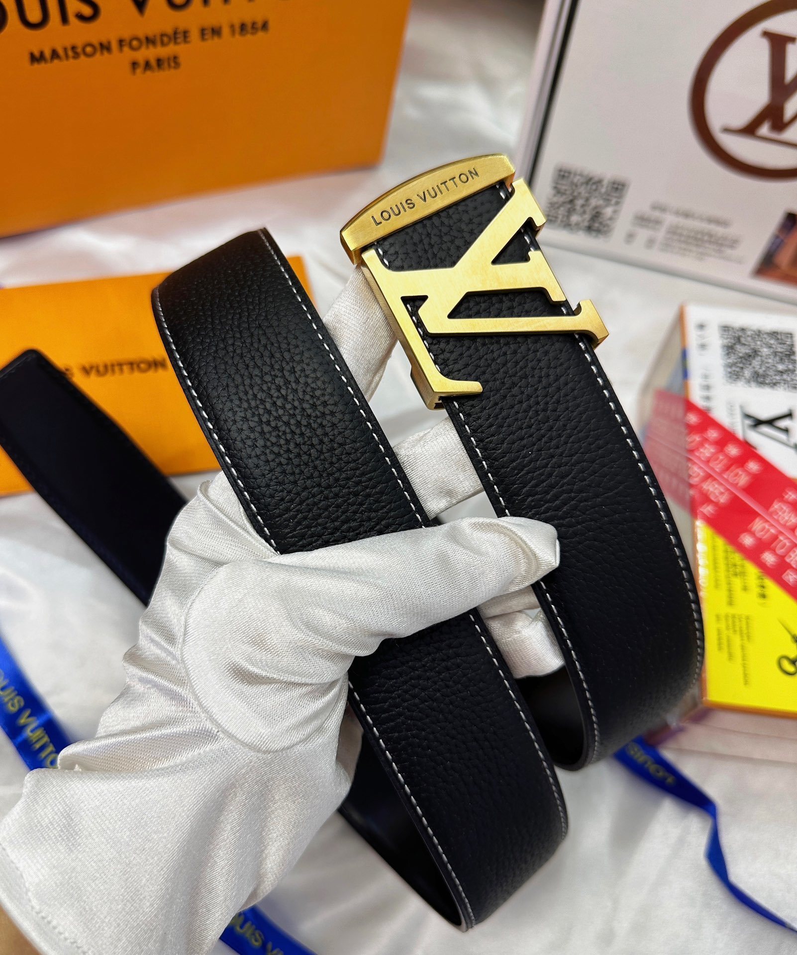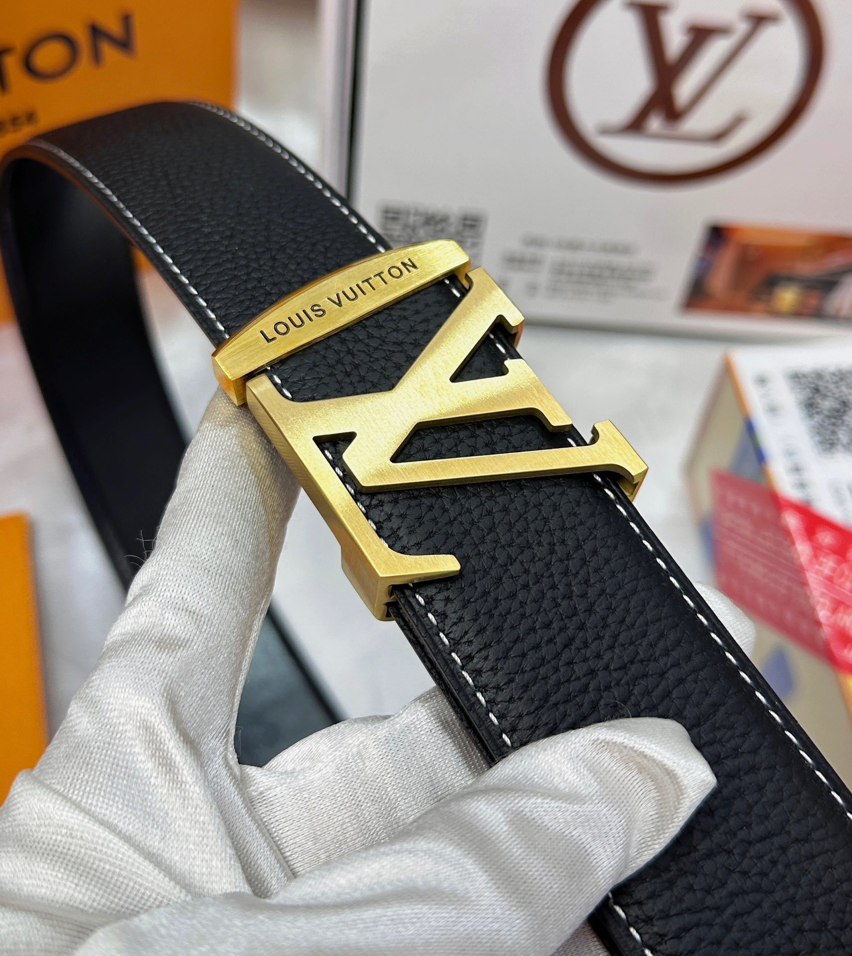 Gucci Black Guccissima Leather Gold Interlocking Buckle Belt