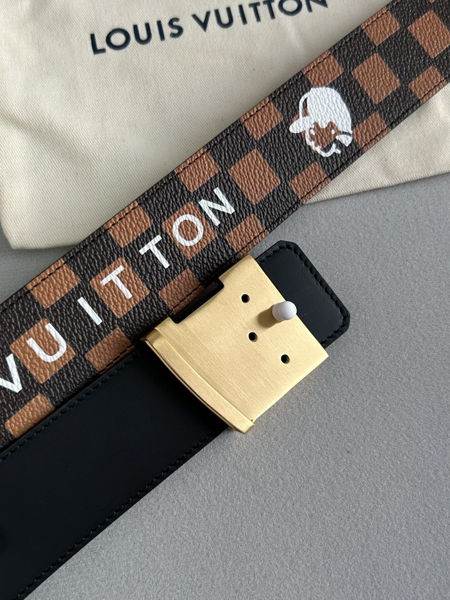 • Unique Hardware: Polished gold-tone LV buckle with decorative star and flower engravings.