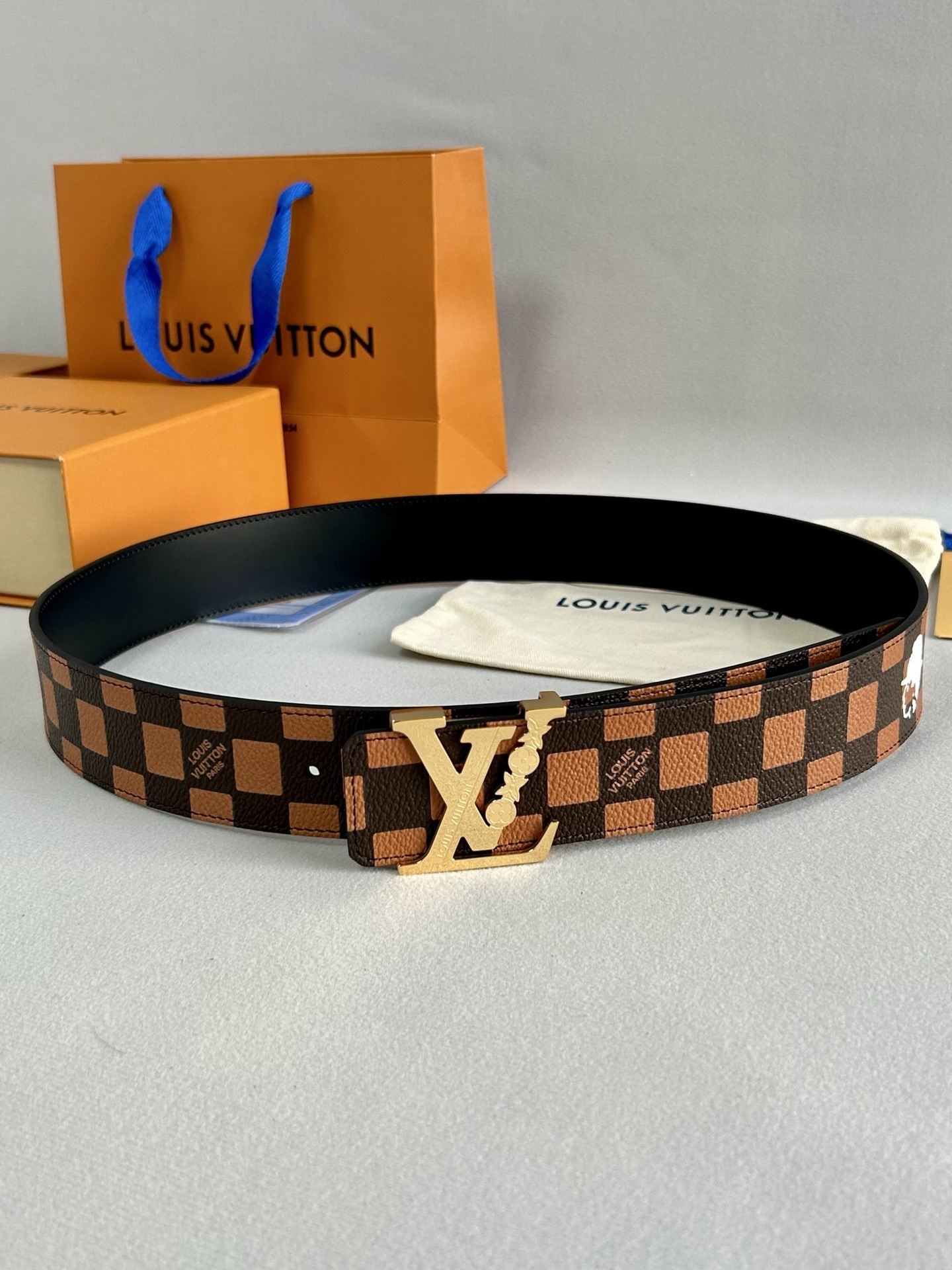 Louis Vuitton LV Initial Damier Belt with Gold Flower Buckle
