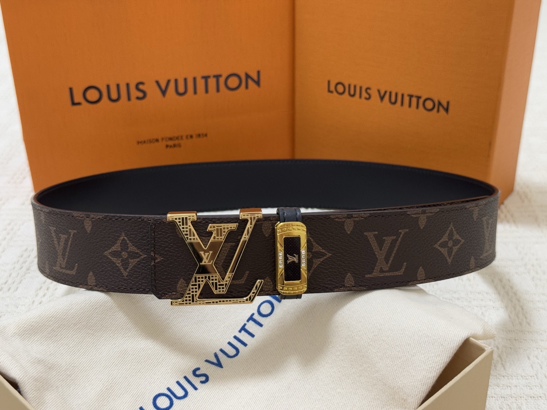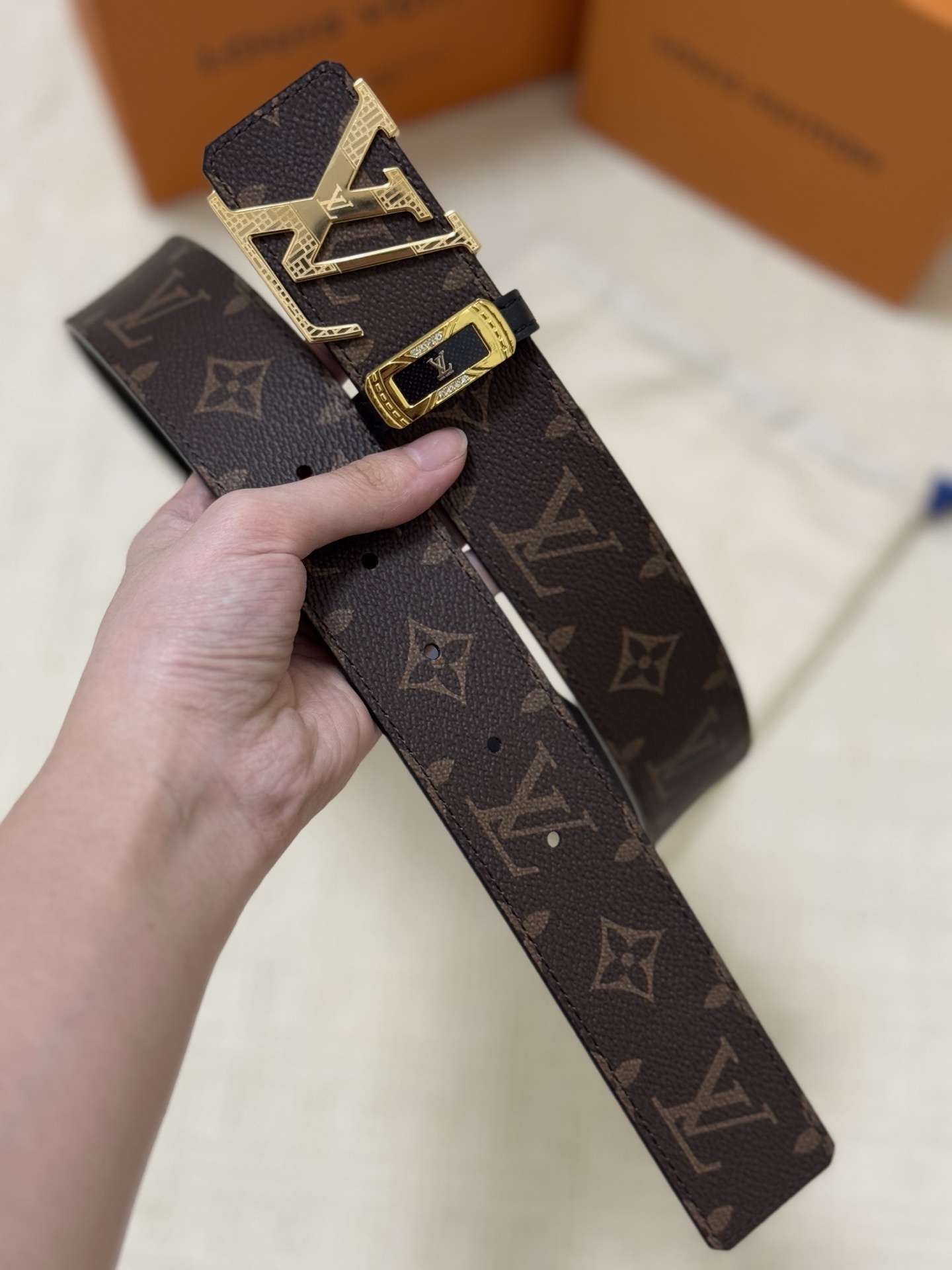 Elegant GG diamond logo buckle belt size 80