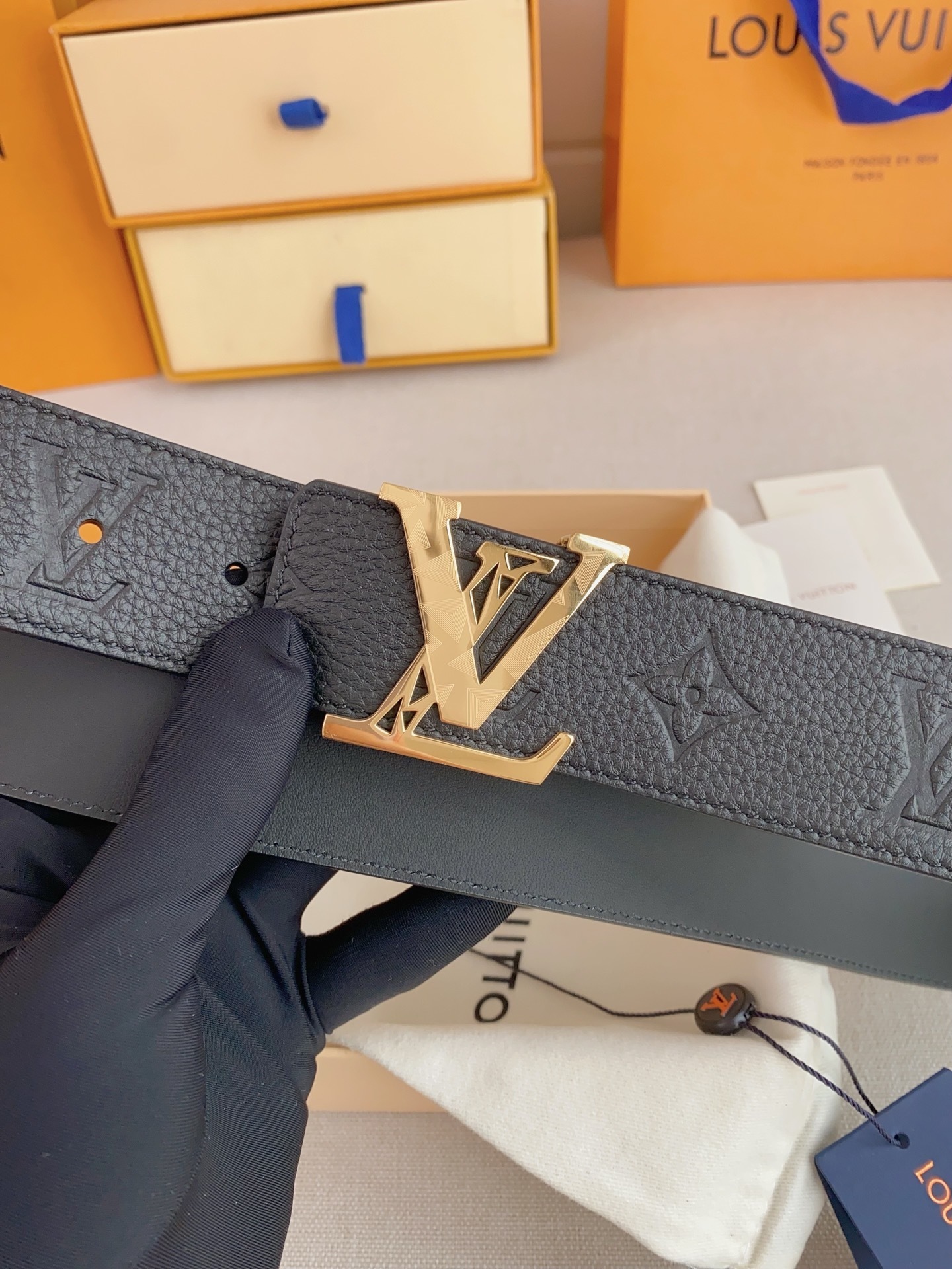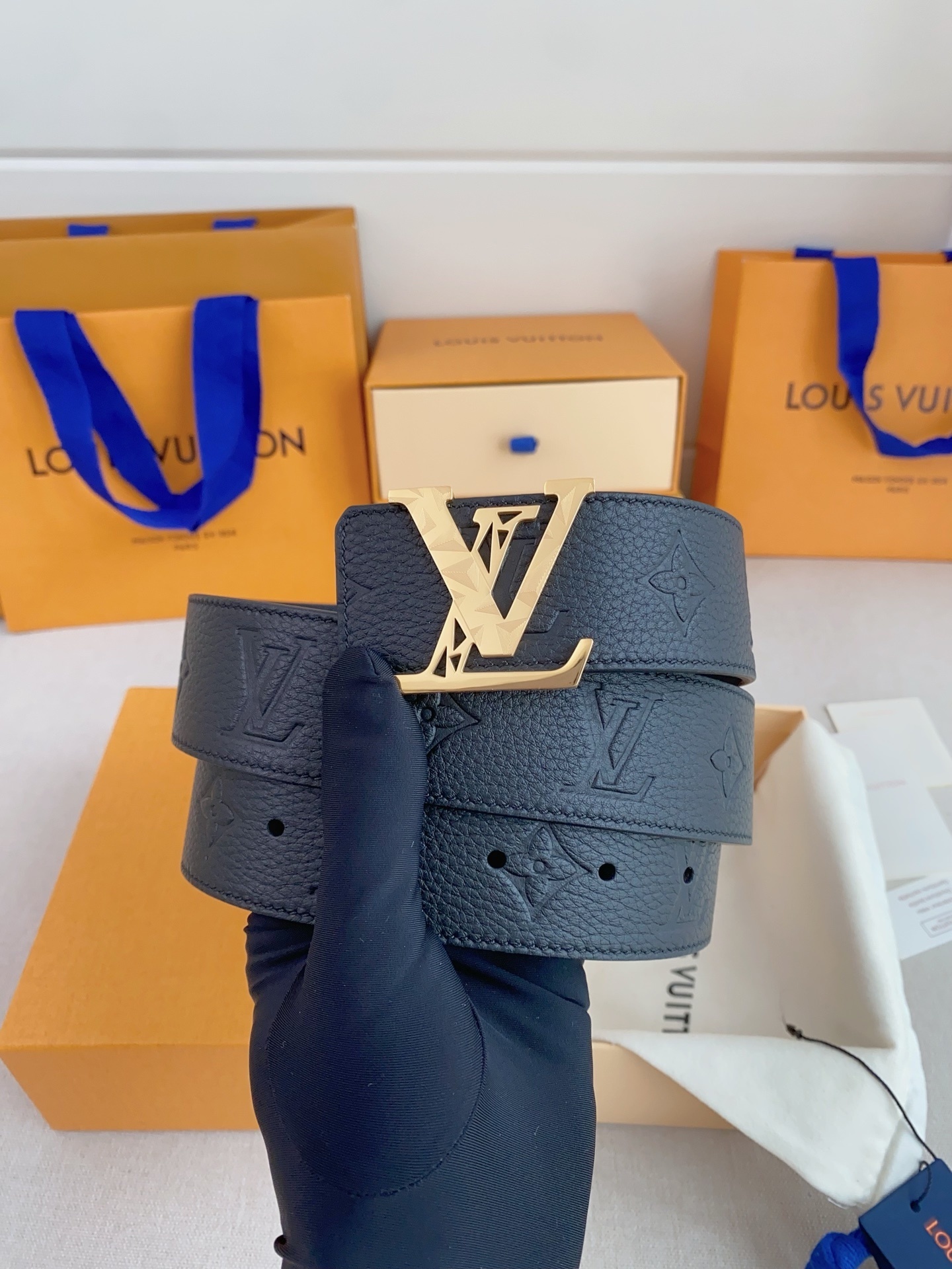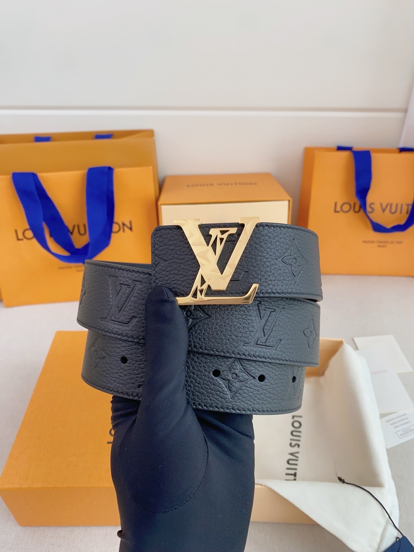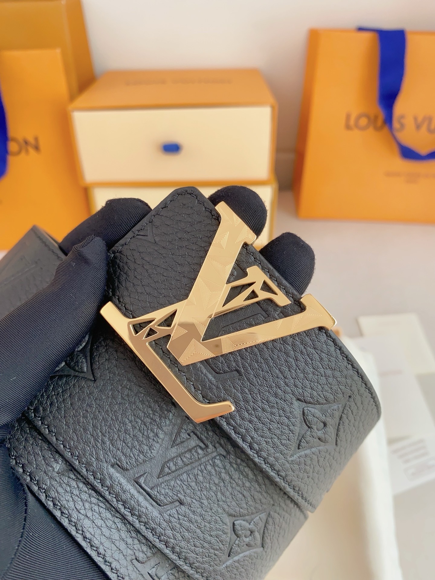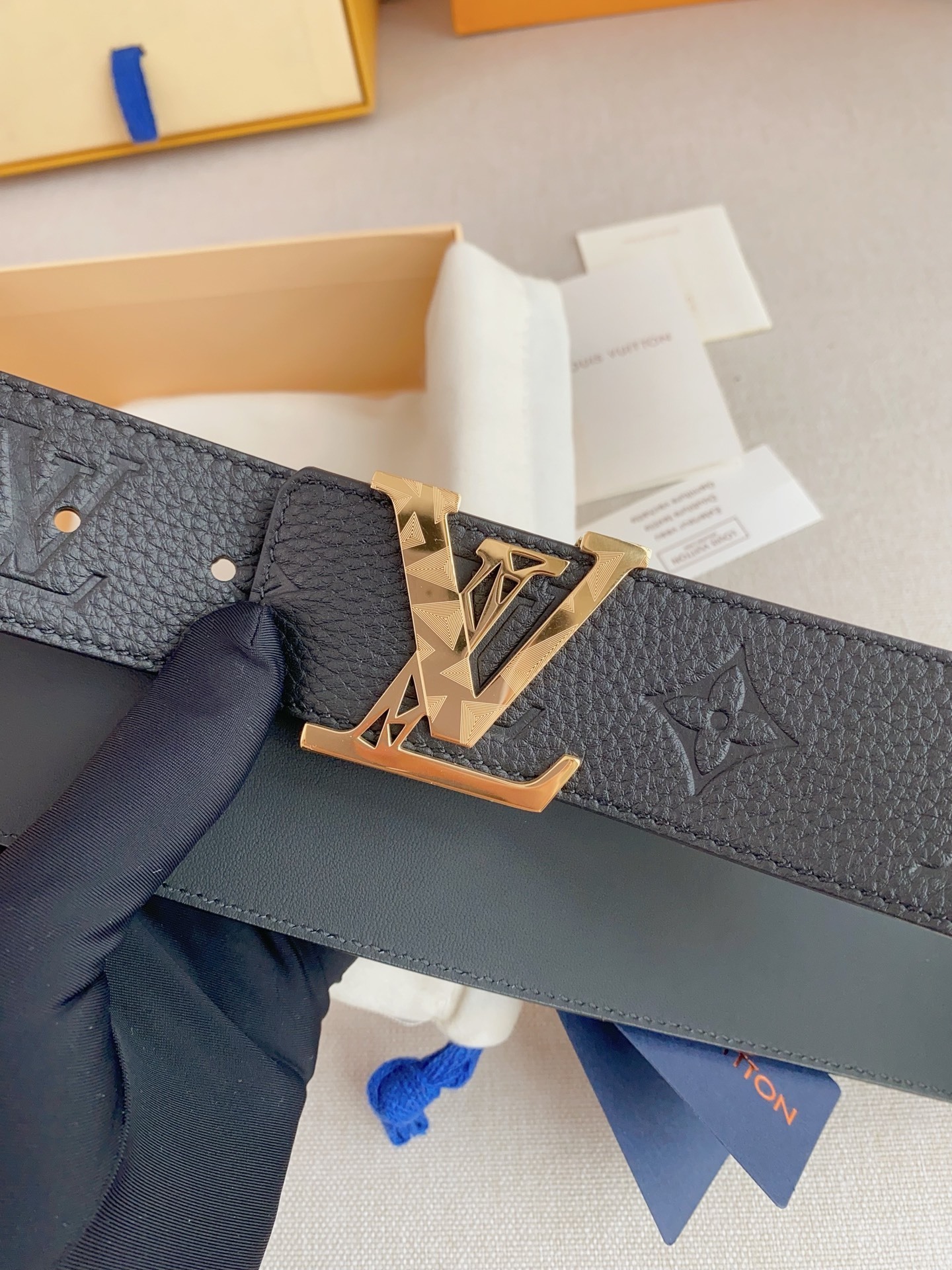 • Signature Buckle: Features the classic LV Initiales buckle in a stunning gold-tone finish with unique geometric engravings for a modern touch.