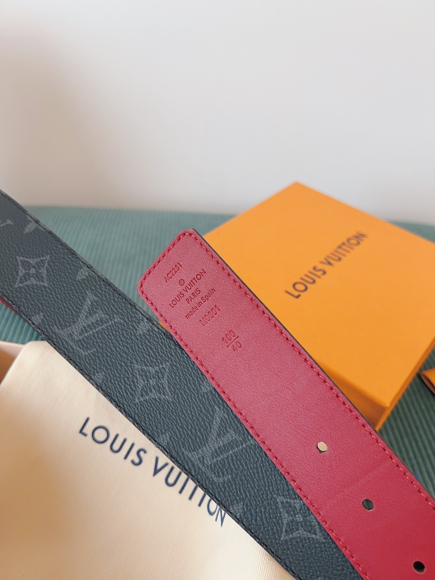 Louis Vuitton LV Initiales Reversible Belt Monogram Eclipse & Red