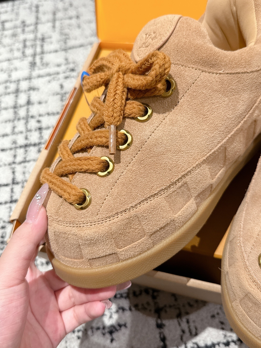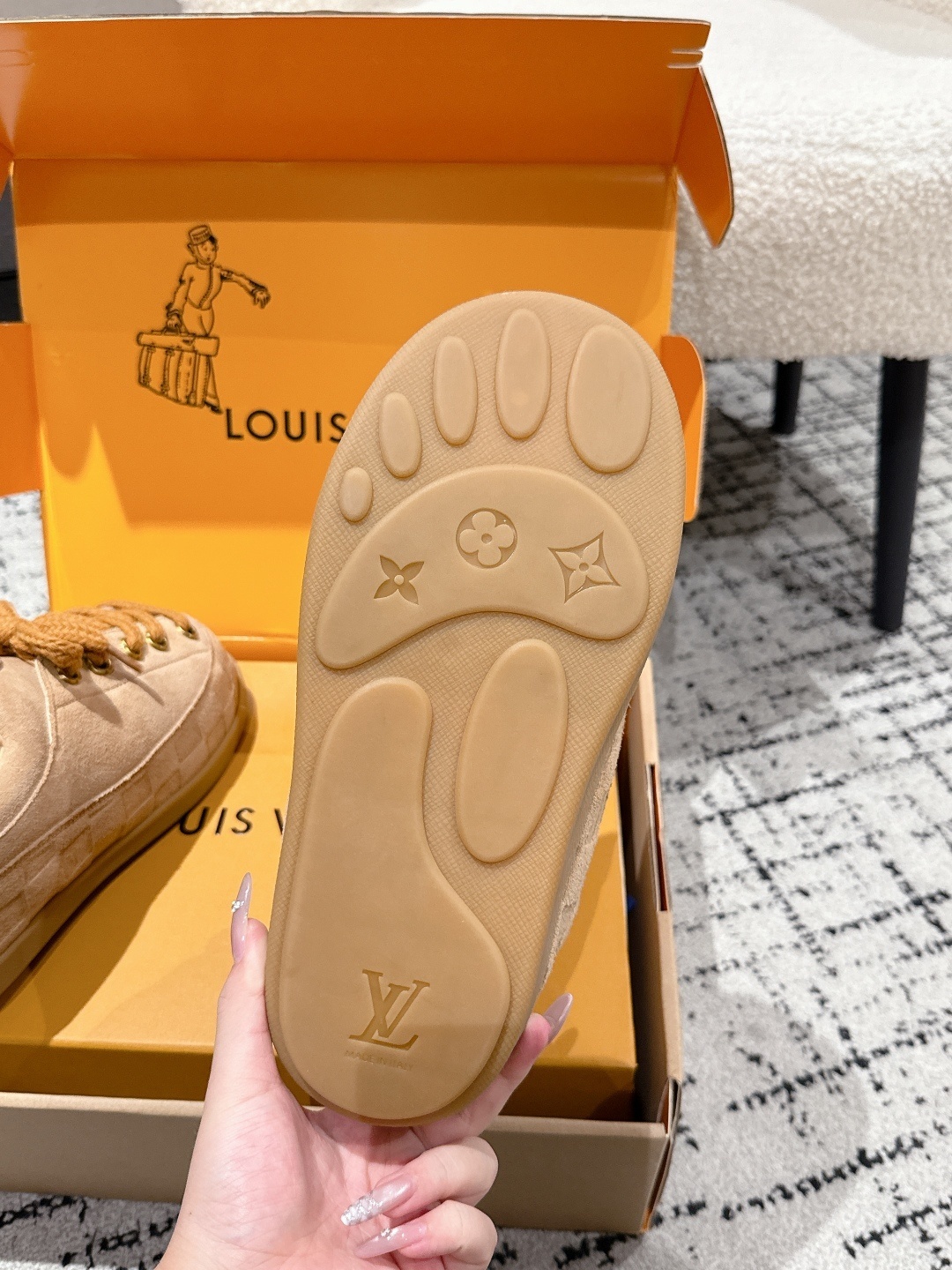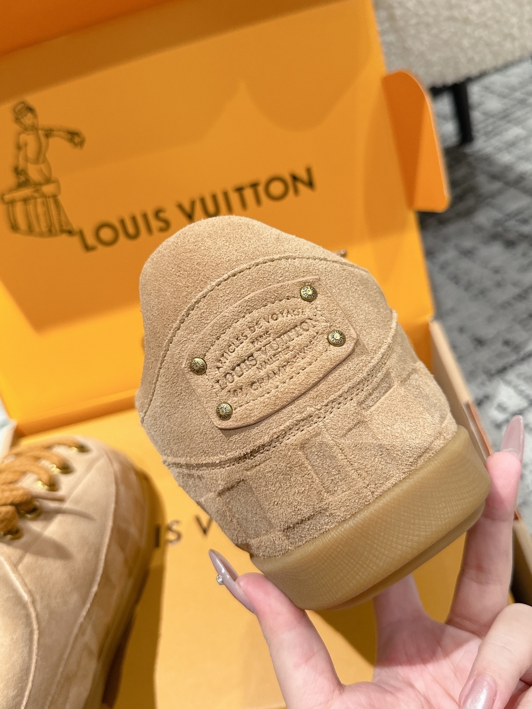 • Exquisite Packaging: Each pair comes in the iconic Louis Vuitton orange box, featuring the charming 'Groom' illustration, ensuring an authentic unboxing experience.