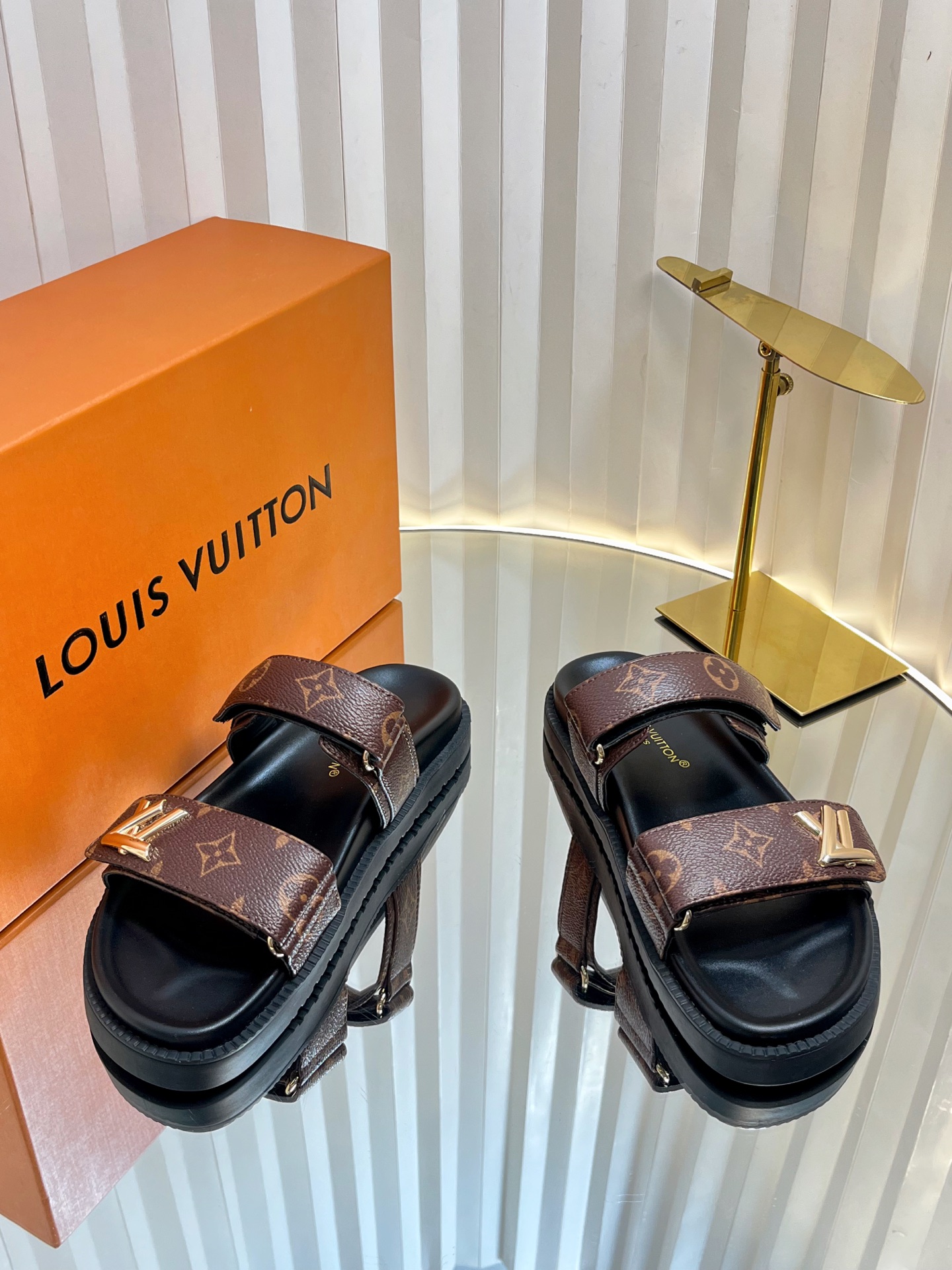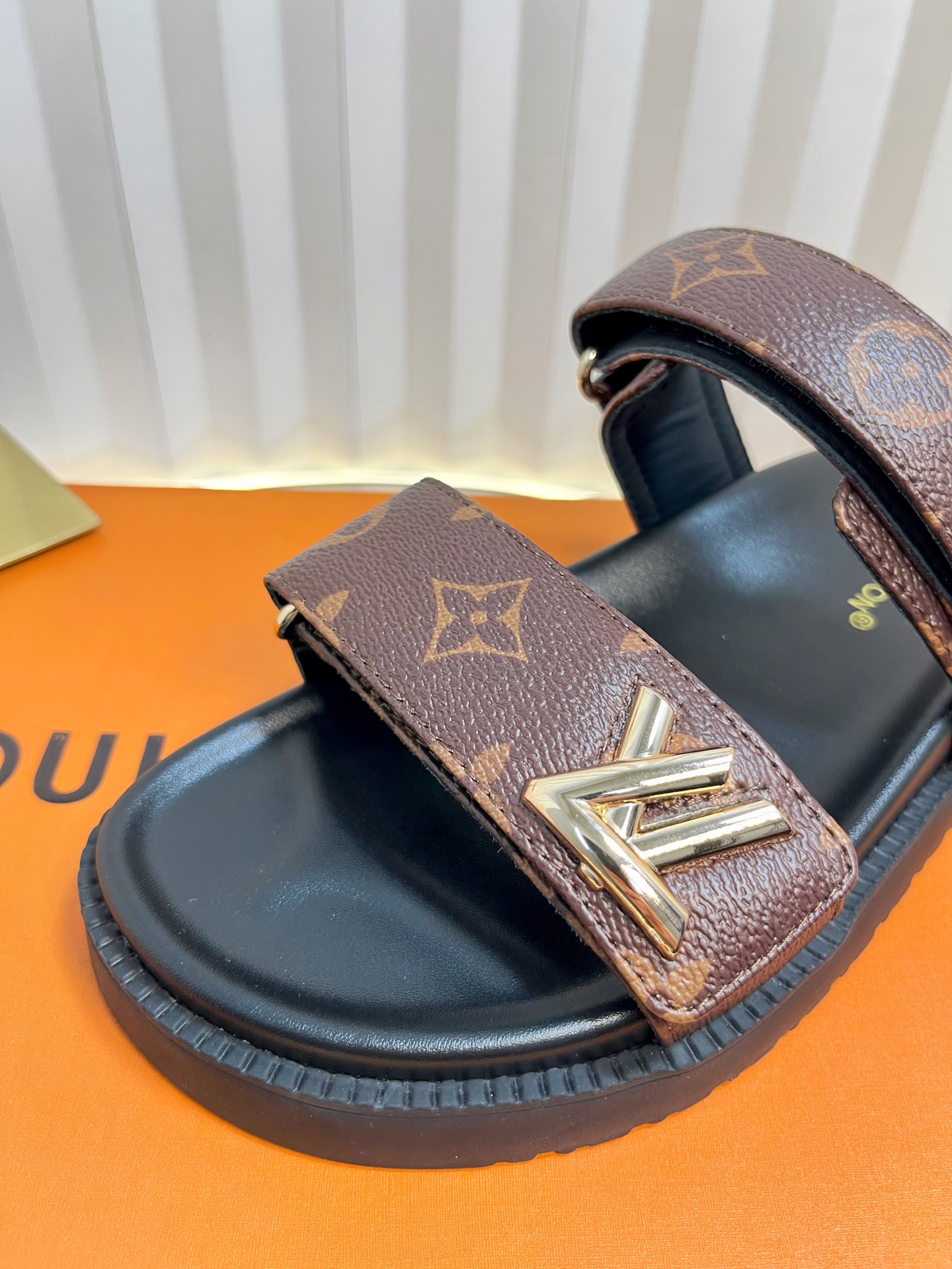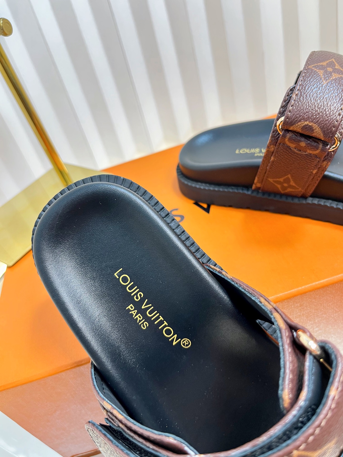 Louis Vuitton Men’s Blue Denim Sandals Cherry Monogram Pattern Adjustable Straps Rubber Sole