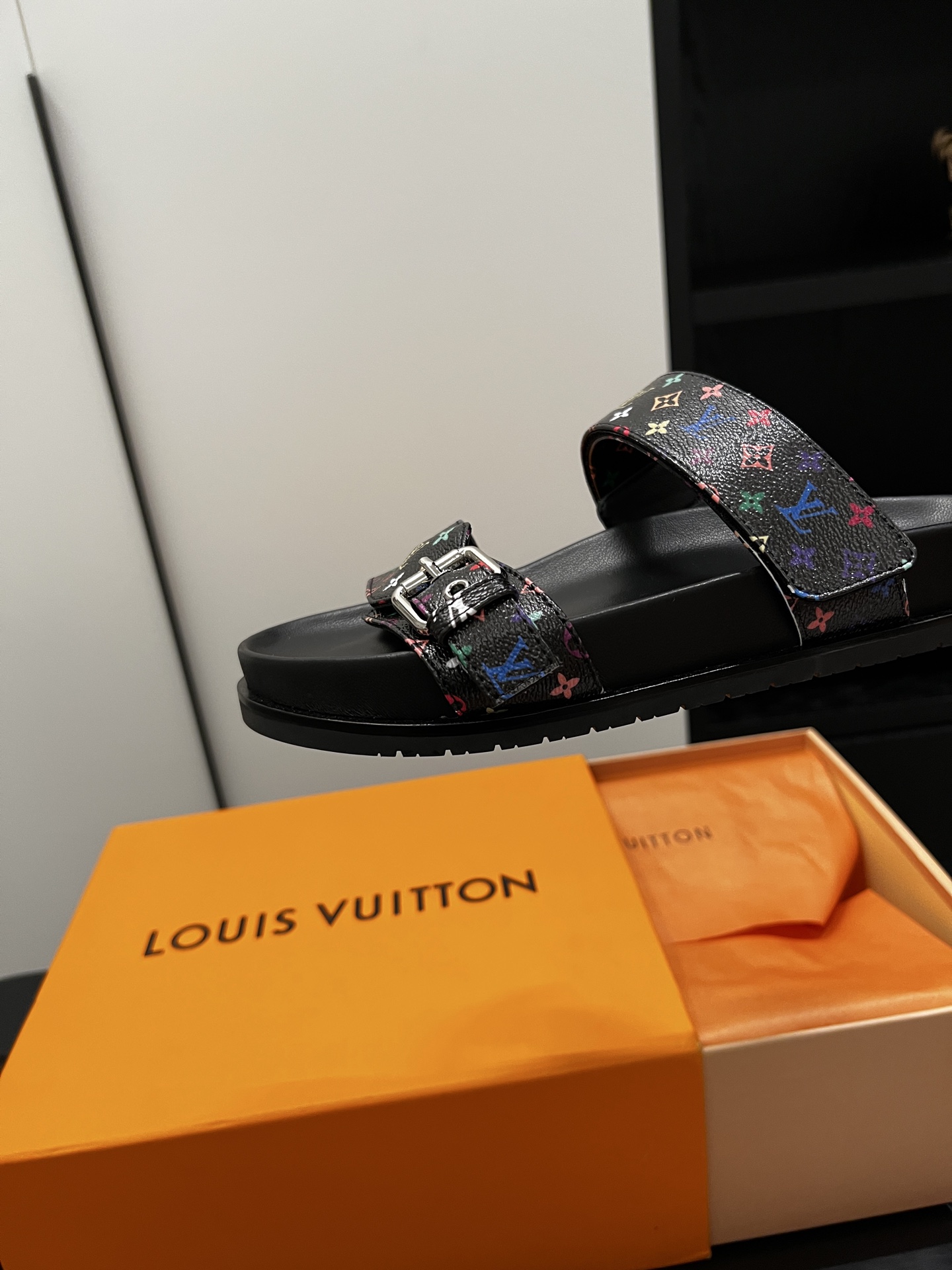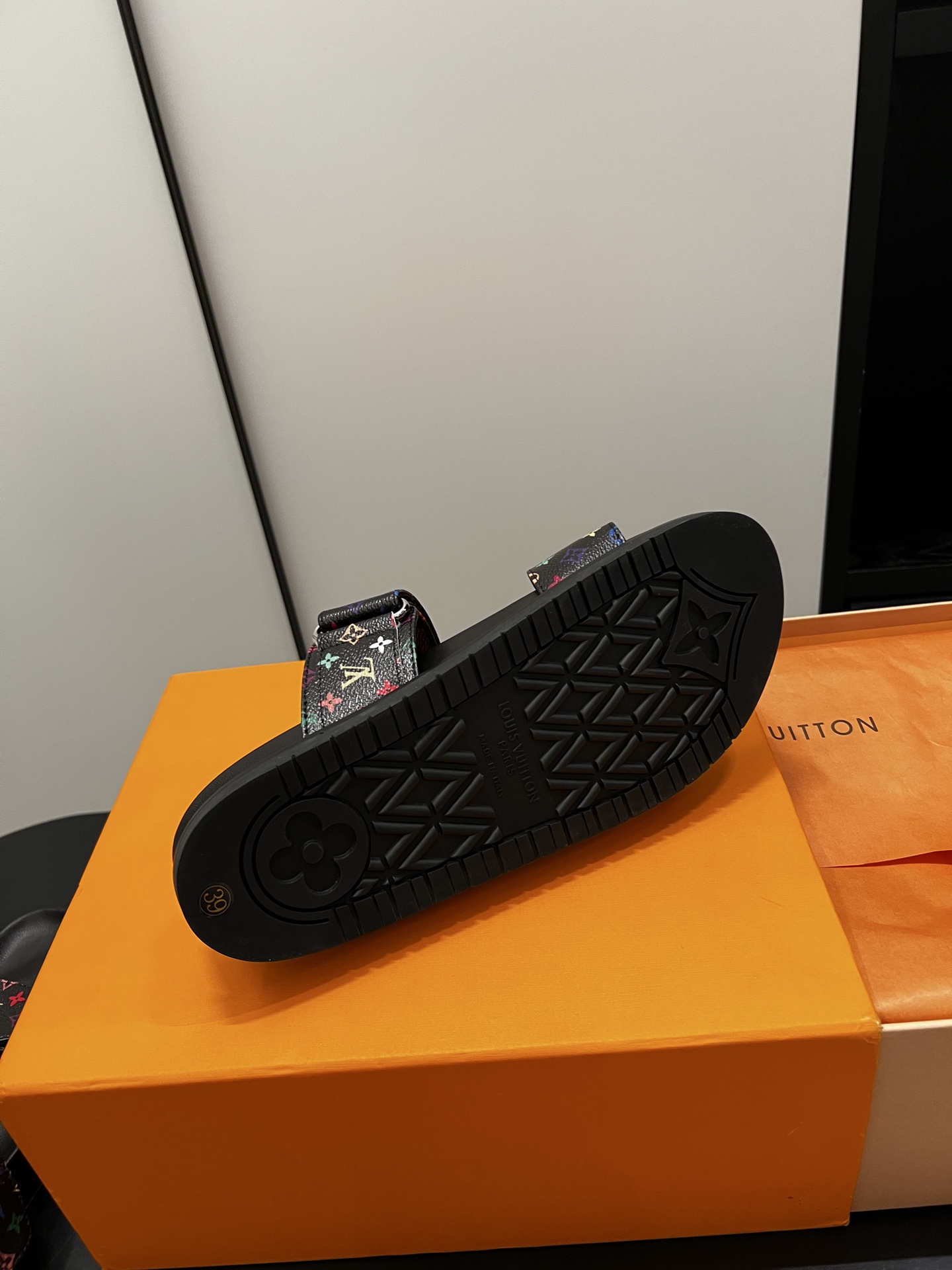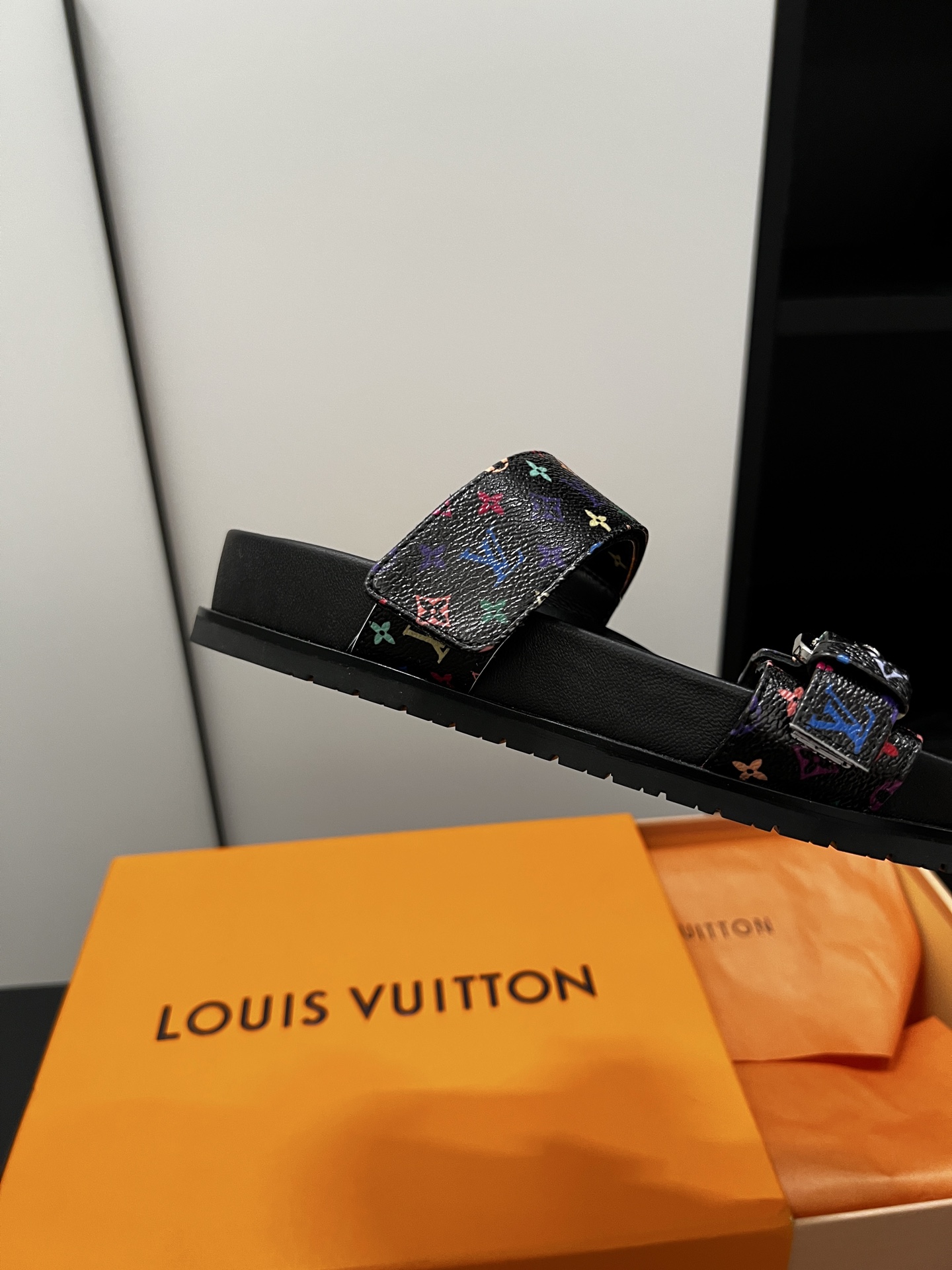 Louis Vuitton Monogram Black Canvas Slide Sandals