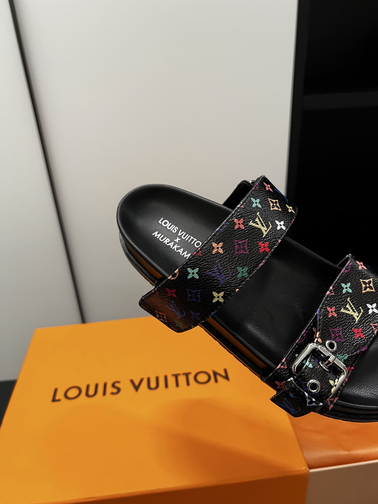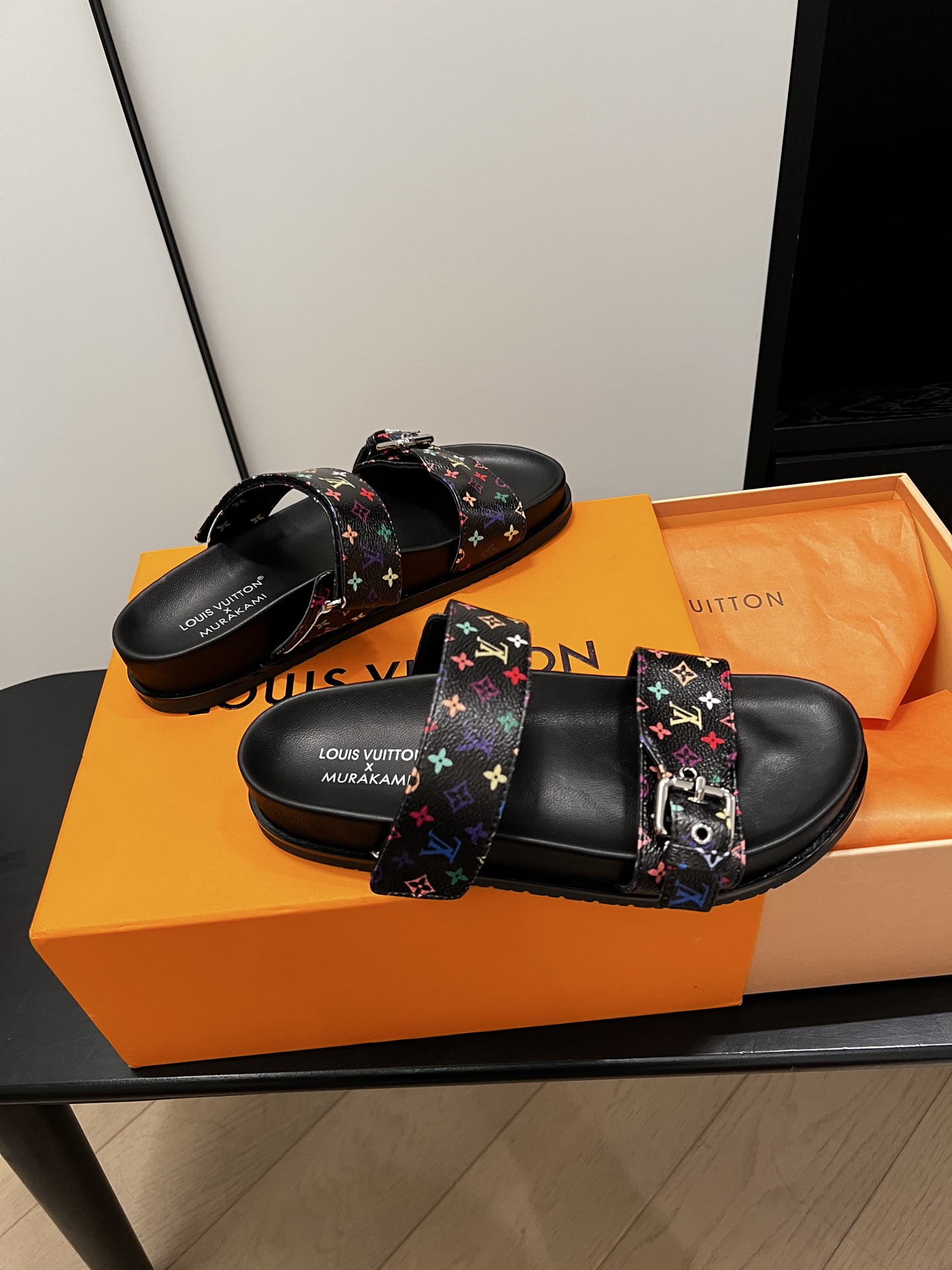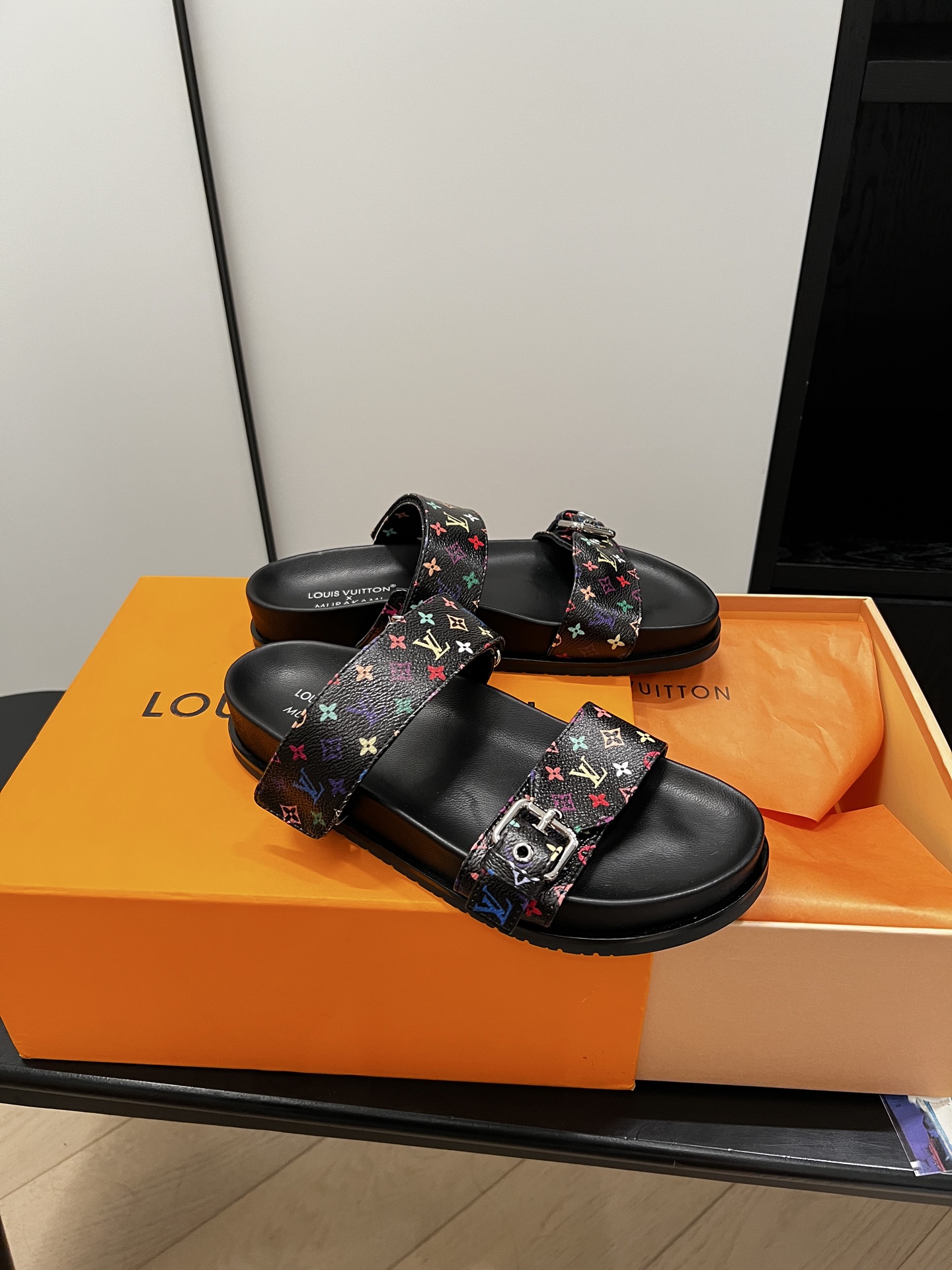Louis Vuitton Monogram Black Canvas Slide Sandals